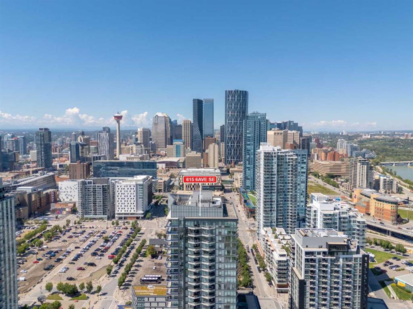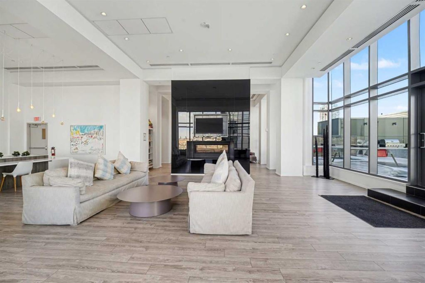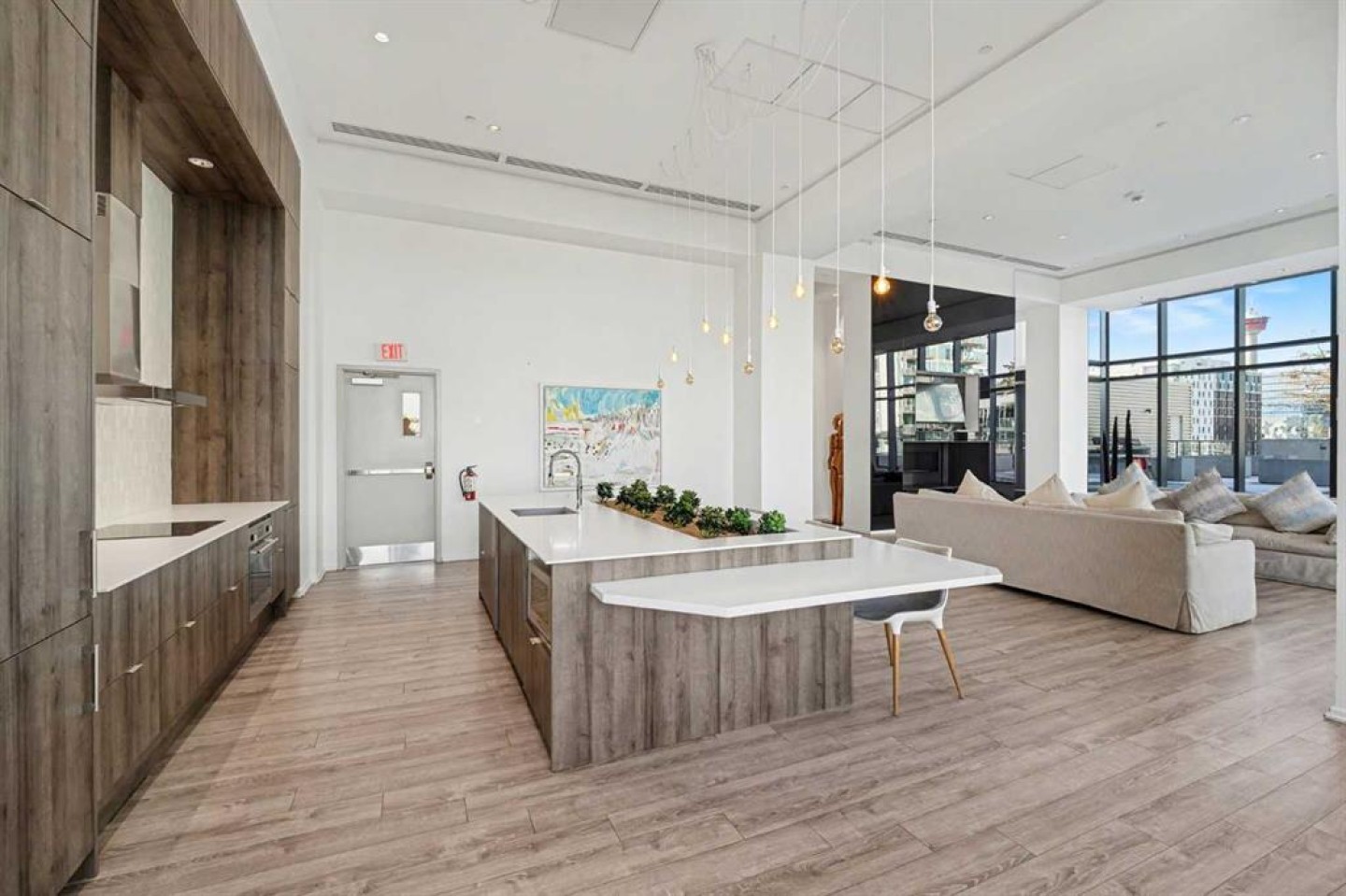 Residents enjoy access to exceptional amenities across two levels. The sixth floor features a fully equipped fitness centre, owners lounge with a full kitchen, library, ping pong tables, BBQs, and an inviting outdoor social space. The twenty fifth floor rooftop terrace is a true highlight, offering breathtaking panoramic views of the city skyline, Bow River, and surrounding mountains.