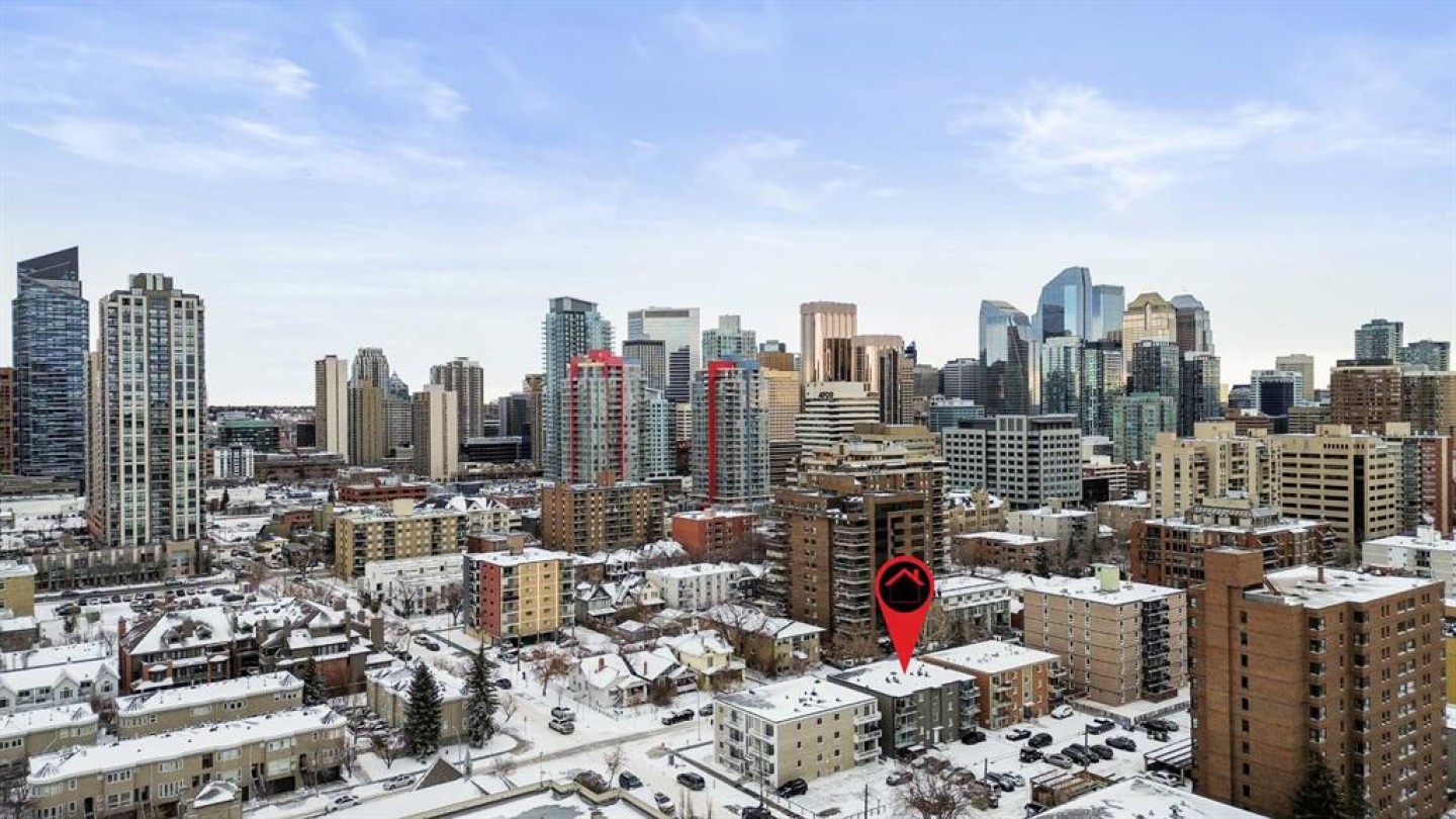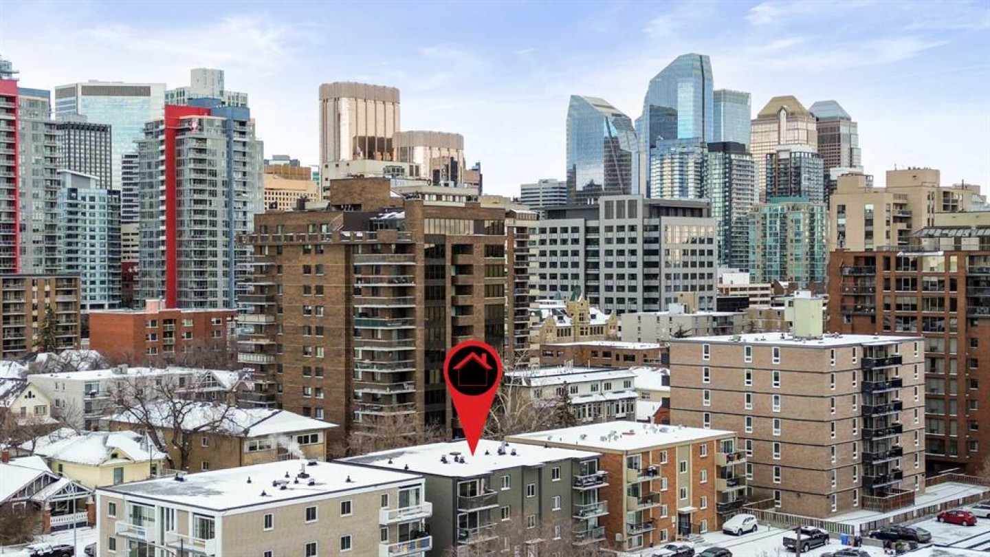 This beautifully maintained one-bedroom, one-bathroom condo is perfectly positioned on 14th Avenue in the heart of downtown Calgary. Located in a quiet and private, self-managed low-rise boutique style building. Well cared for exterior and renovated, bright common areas, this property stands out for its quality and condition. The unit itself is in excellent shape and features a cozy fireplace, in-suite laundry, bright southwest-facing balcony that captures incredible afternoon sunlight. As a top floor corner unit, it offers added privacy and natural light, making the space feel open and inviting. Steps from shopping, restaurants, work, and all the conveniences of inner-city living, this is a fantastic opportunity for first-time buyers, investors, or urban professionals. Outstanding value in a prime location you must see for yourself before claiming it for your own!