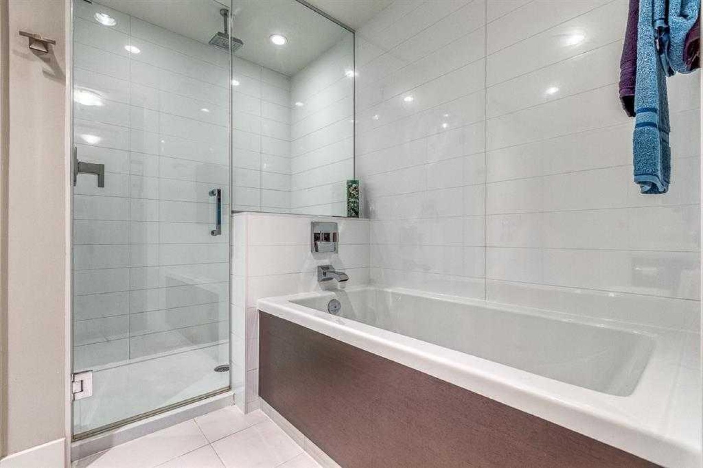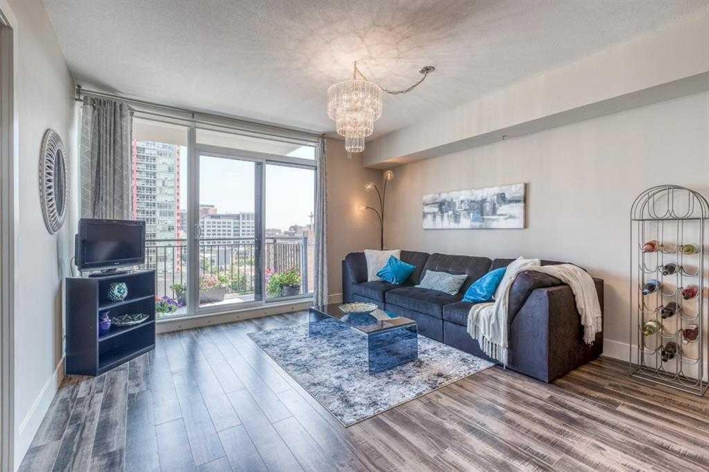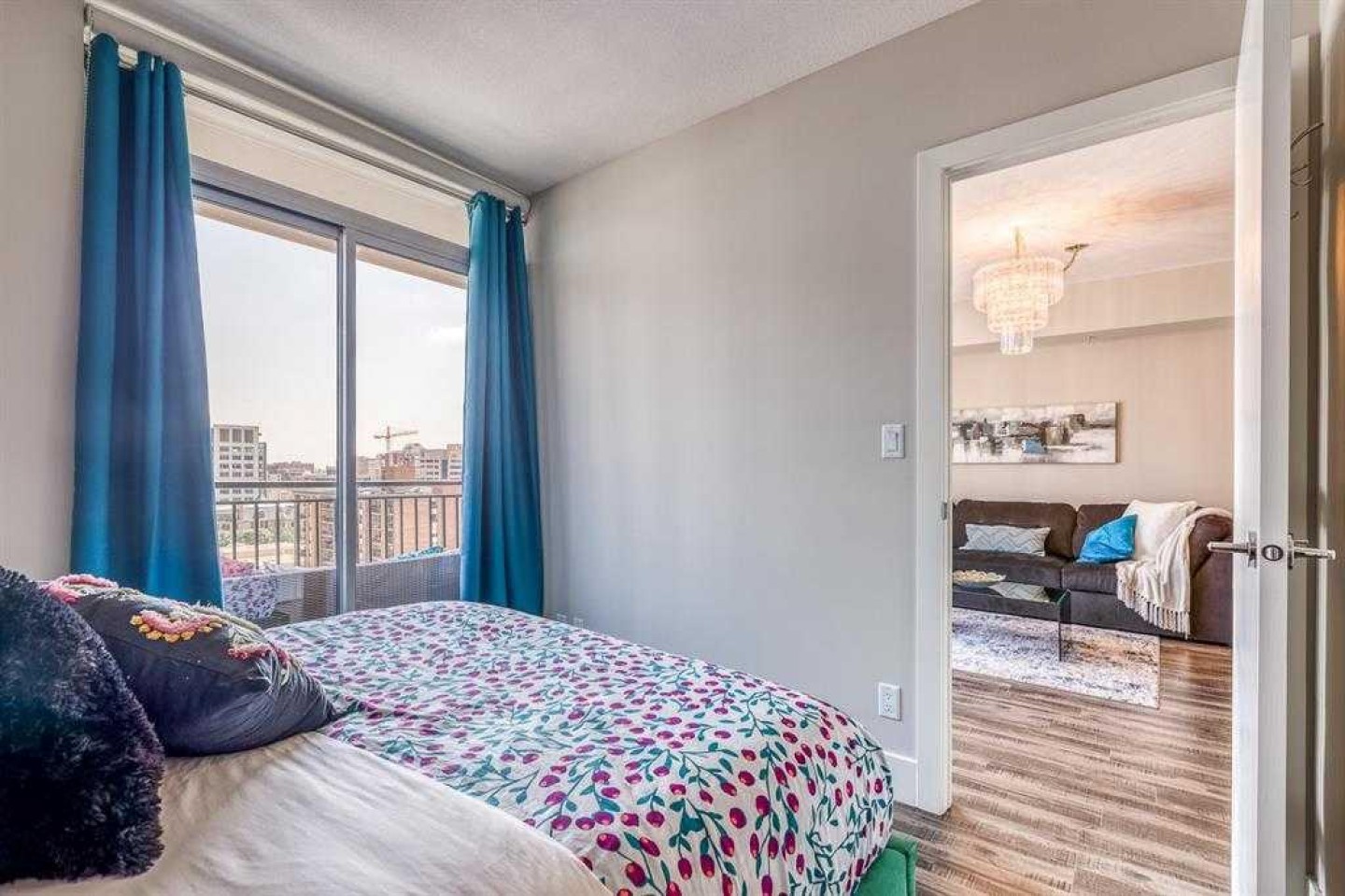WELCOME TO LUNA — 1-BED/1-BATH W/ UNOBSTRUCTED 180-DEGREE DOWNTOWN VIEWS & FULL-SERVICE AMENITIES! Set in the popular LUNA building in the heart of the Beltline, this 1-bedroom, 1-bath condo offers one of the best layouts in the building, great storage, and open views of Calgary’s downtown skyline. Walking in, you’re welcomed by a spacious foyer and walk-in shoe closet, giving you plenty of room to unload shoes, coats, and daily gear. The open-concept kitchen is sure to impress, featuring Quartz countertops, flat-panel walnut & glass cabinetry, matching glass backsplash, stainless steel appliances, a gas cooktop, and a large island with seating for 4. The living and dining area easily fits a full sectional and TV setup, with direct access to the balcony. Step outside to enjoy a relaxing morning coffee while taking in the East-facing views of the Calgary skyline. Back inside, a built-in desk area provides a convenient work-from-home setup without taking over the living space. The bedroom fits a queen bed comfortably and connects to the balcony, with a walk-through closet leading into the 4-piece bathroom. The bathroom includes a soaker tub, a separate glass shower, and clean, modern finishes. This unit also includes in-suite laundry, central A/C, a separate in-unit storage room (a rare bonus in a one-bedroom), and a titled parking stall in the heated underground parkade. LUNA is a concrete building with concierge service and strong amenities, including a full fitness centre, yoga studio, owner’s lounge with fireplace and games area, guest suites, and secure underground parking. The building is well managed and known for its modern feel and unbeatable location. Situated in the heart of the Beltline, LUNA is surrounded by Calgary’s top dining, shopping, and lifestyle amenities. Enjoy walkability to 17th Ave, Safeway, fitness studios, cafés, restaurants and more. Plus, get easy access to the rest of the downtown core and city through nearby LRT train station with free fare when traveling within downtown. Jumping in the car: Airport is a 19 min drive (17.5KM), & Banff is a 1 hr 27 min drive (126KM).
