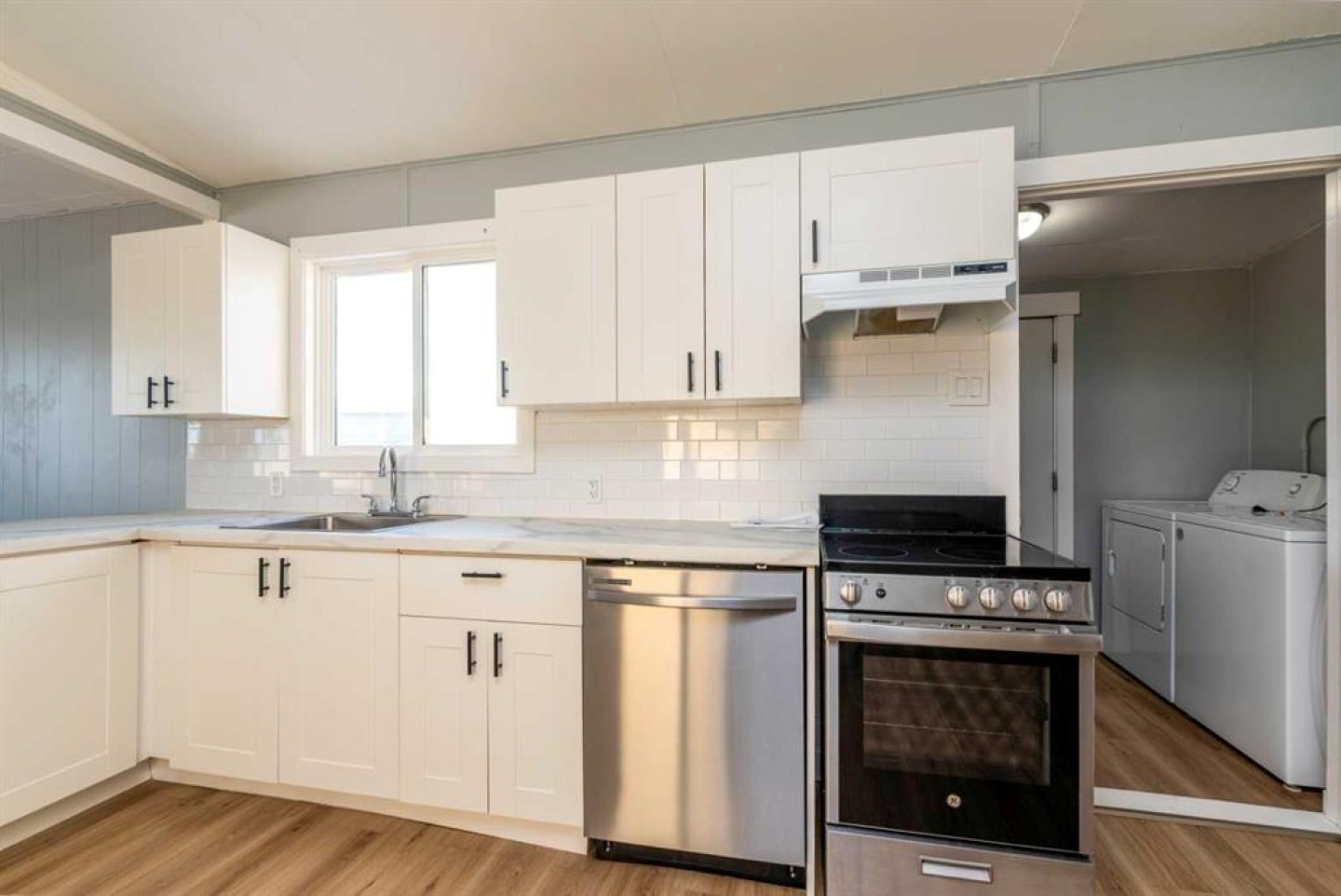 Make your move to cost effective living at Lloydminster Village. This is an updated move in ready unit! With a new, bright white kitchen with subway tiles, stainless appliances and opened up island to the south facing living room. Laminate flooring throughout, glass closet doors, freshly painted, updated lighting package with decor switches and 100 amp electrical panel. With three bedrooms and the open concept living area there is a fair amount of room for any furnishing arrangements and convenient storage options with a dedicated porch laundry room with electric heat. A convenient and quiet cul-de-sac location in the park. Cove Communities are well run and offer access to the Clubhouse; the park fees cover water, sewer, garbage collection and snow removal. All offers must be subject to occupant approval by Lloydminster Village and signing a Cove Communities specific Purchase Contract prior to closing. Welcome Home!