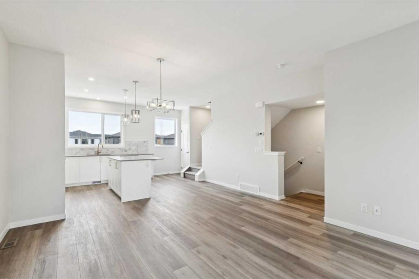 Welcome to the Oak with Meter Room, a well-designed 1,645 sq ft townhome built by Shane Multi-Family. This 3 bedroom, 2.5 bathroom home features a double attached garage and a functional ground-level flex space ideal for a home office, workout area, or added storage. The main floor offers an open-concept kitchen, dining, and great room layout, with direct access to a private balcony for BBQs. Upstairs, the primary bedroom includes a walk-in closet and ensuite, complemented by two additional bedrooms, a full bathroom, and convenient upper-floor laundry. Thoughtfully planned with the efficient use of space throughout, this home delivers modern design, practicality, and low-maintenance living suited for a variety of lifestyles.
