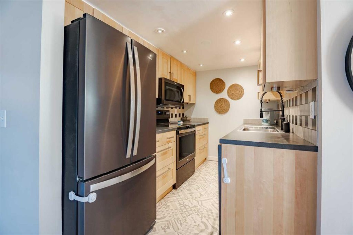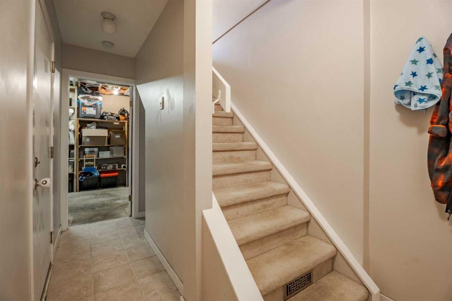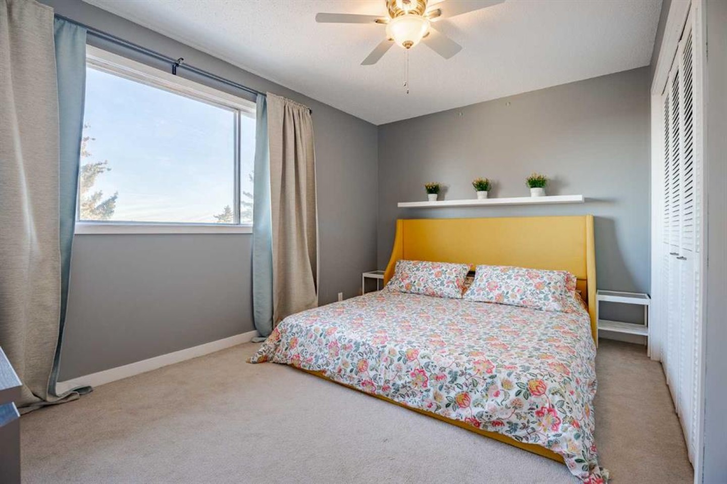 Welcome to this beautifully updated three-bedroom condo ideally located just steps from schools, shopping, and the scenic pathways of Nose Hill Park. Offering 1,051 sq. ft. of thoughtfully designed living space, this home is bright, welcoming, and completely move-in ready. The main level showcases a lovely living room with sliding glass doors leading to an east-facing balcony, where unobstructed views allow morning light to pour in. The dining area is perfectly positioned off the kitchen, overlooking a private, maintenance-free patio finished with modern interlocking stone—ideal for relaxing or entertaining. The adorable kitchen features newer appliances and updated cabinetry, blending charm with functionality. Completing the main floor is a beautifully renovated two-piece guest bath, perfect for visitors and everyday convenience. A beautifully renovated mudroom offers a wall of custom cabinetry for exceptional storage, newer laminate flooring, and fresh paint throughout. Upstairs, you’ll find three spacious bedrooms, each with large windows that flood the space with natural light. The updated main bathroom is both stylish and highly functional for everyday living.