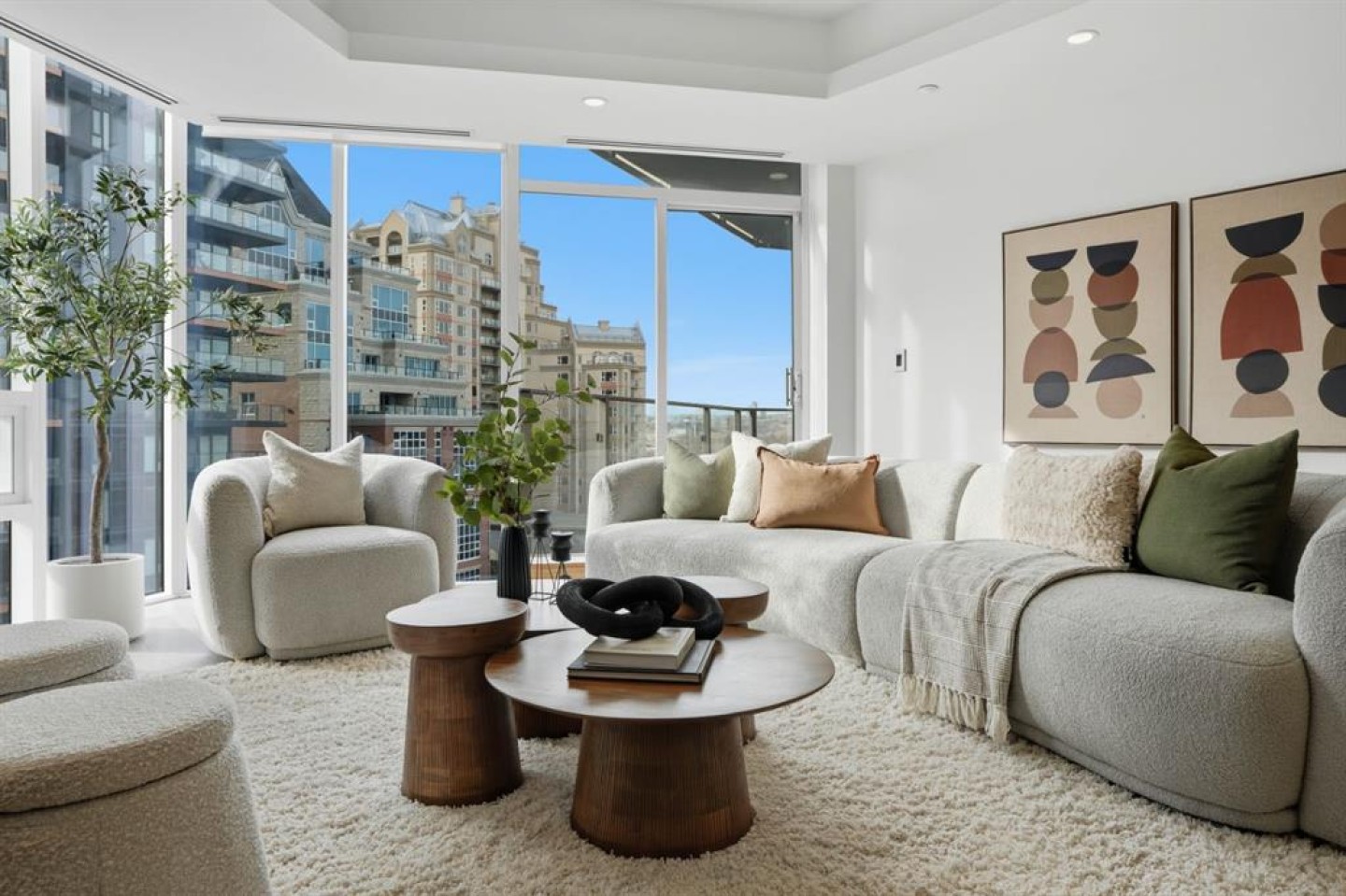 WELCOME TO THE CONCORD - Calgary's most prestigious riverfront residence! Experience unparalleled luxury living in this architectural icon. A private elevator leads you up to your exquisite home, designed with the finest finishes. Enjoy breathtaking Bow River views from floor-to-ceiling windows of Living and each of the Bedrooms. The crafted interior boasts engineered hardwood flooring, a full-height BIANCO STATUARIO marble fireplace, a German POGGENPOHL Kitchen and Miele appliances package. A bright glass door open den is ideal for a home office or a home library. Unwinded in your primary suite boasts a custom walk-in closet, and a 5-piece spa-inspired ensuite, complete with dual sinks, a deep soaker air-jet tub, a separate shower, and heated marble floor. The 2nd bedroom with balcony access has floor-to-ceiling marble 4-piece bath. Additional features include in-suite laundry, 2 titled parking stalls and a titled storage locker. World-Class amenities include: 24-hour Concierge, Fitness Centre, Private Lounge, outdoor water garden, outdoor Kitchen with BBQ, and an automated touch-less car wash! Future amenities include a Resort-style swimming pool and a high-tech golf simulator. CALL TODAY TO SCHEDULE YOUR PRIVATE VIEWING to make this your home!