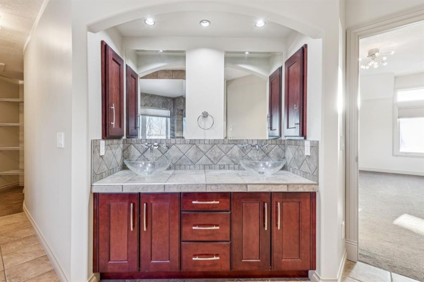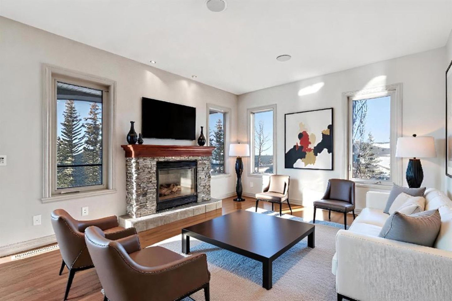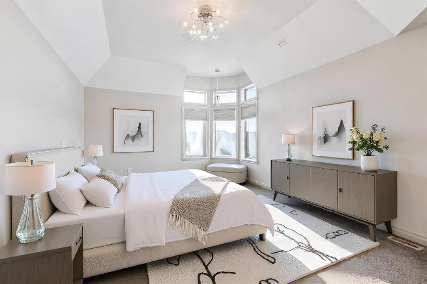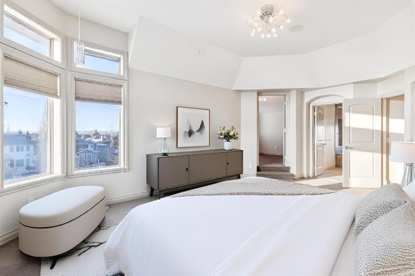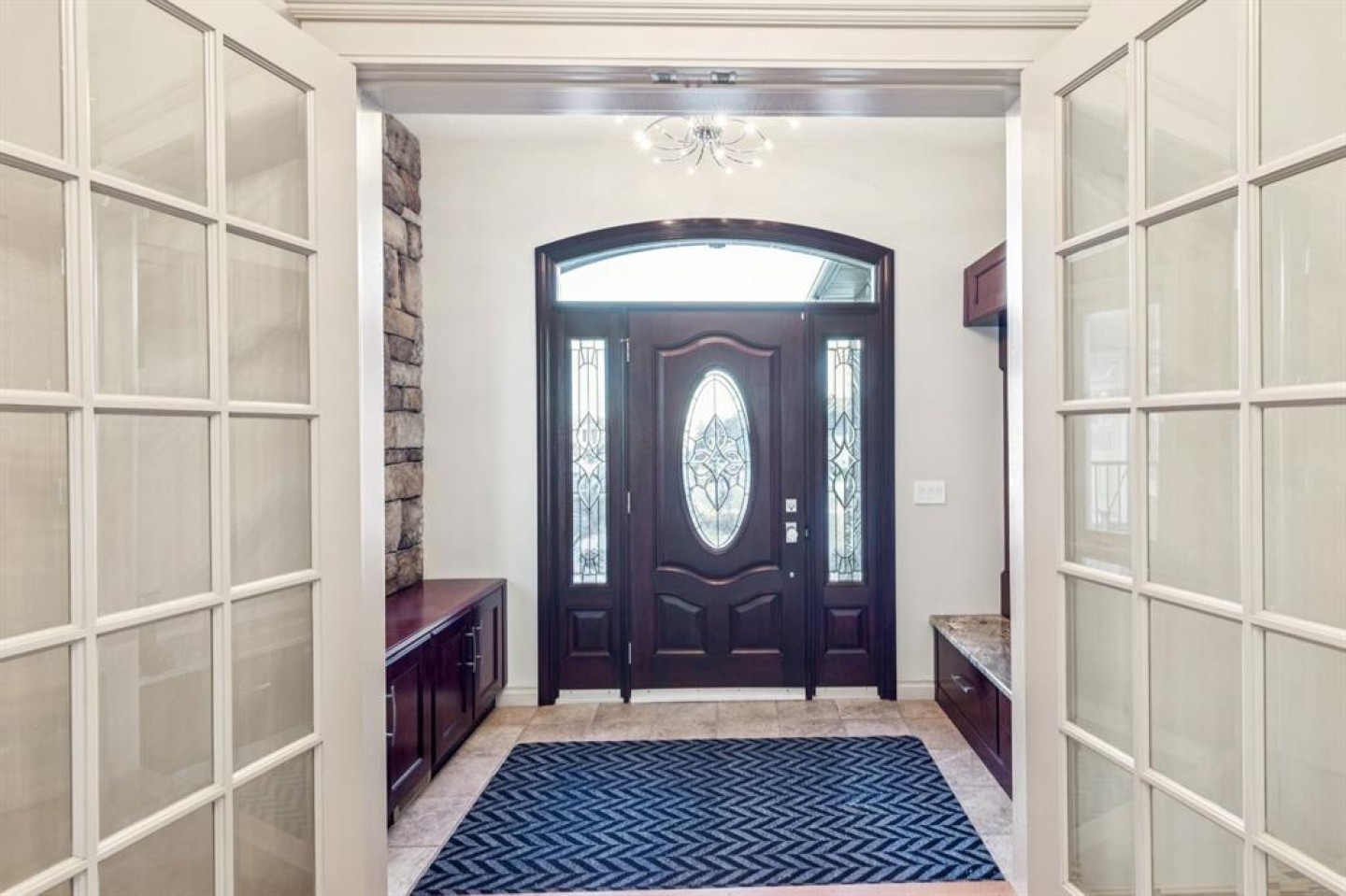 Welcome to an extraordinary custom-built, top-of-the-line geothermal estate tucked away on a quiet cul-de-sac in Airdrie’s most prestigious community—Coopers Crossing. Backing west onto green space, parks, and walking paths, this fully finished walkout home offers breathtaking sunsets, ultimate privacy, and a lifestyle few properties can match. Designed with no expense spared, this 5-bedroom, 3.5-bathroom residence blends striking architecture with leading-edge green technology, including geothermal heating & cooling, ICF foundation, tankless hot water on demand, in-floor radiant heating, and a heated oversized garage with hot & cold taps. Freshly painted in 2025, the home showcases timeless elegance with modern efficiency. Inside, you are greeted by soaring 9’ ceilings, crown molding, coffered details, extensive wall paneling, and a custom curved staircase that gracefully winds through all three levels. Rich cherry wood cabinetry, engineered hardwood, built-ins throughout, and upgraded lighting reflect exceptional craftsmanship and attention to detail. The chef’s kitchen is truly impressive, featuring high-end stainless appliances, a built-in Electrolux fridge/freezer, gas cooktop, prep sink, and an incredible Butler’s pantry with coffee station offering endless storage. Entertain effortlessly in the formal dining room or relax in the sun-filled living areas framed by expansive windows. Upstairs, the vaulted bonus room is a showstopper—complete with a full home theatre setup (projector, screen, amplifier, and subwoofer included). The primary retreat is a private sanctuary with a spa-like en suite, walk-in closet, and a separate reading/relaxation den. The fully developed walkout basement adds a home gym/craft room, additional bedrooms, bathroom, and exceptional storage. Step outside to enjoy multiple lower aggregate patios, two-tier decks, pergolas, a wood-burning exterior fireplace, and stunning professional landscaping complete with waterfall feature, stonework, underground sprinklers, and five cultured-stone retaining walls with custom caps. Additional highlights include screened-in upper balcony with gas line, exposed aggregate driveway with stamped border, central vacuum, in-ceiling speaker system, water softener, acrylic stucco exterior, and unbelievable curb appeal that feels straight out of a castle. Located in a family-friendly executive enclave, within walking distance to schools, parks, and amenities, and offering easy access out of town—this is more than a home; it’s a dream property and a rare opportunity to own one of Coopers Crossing’s finest residences. Book your private tour today and get ready to be blown away with this home’s impressive features!