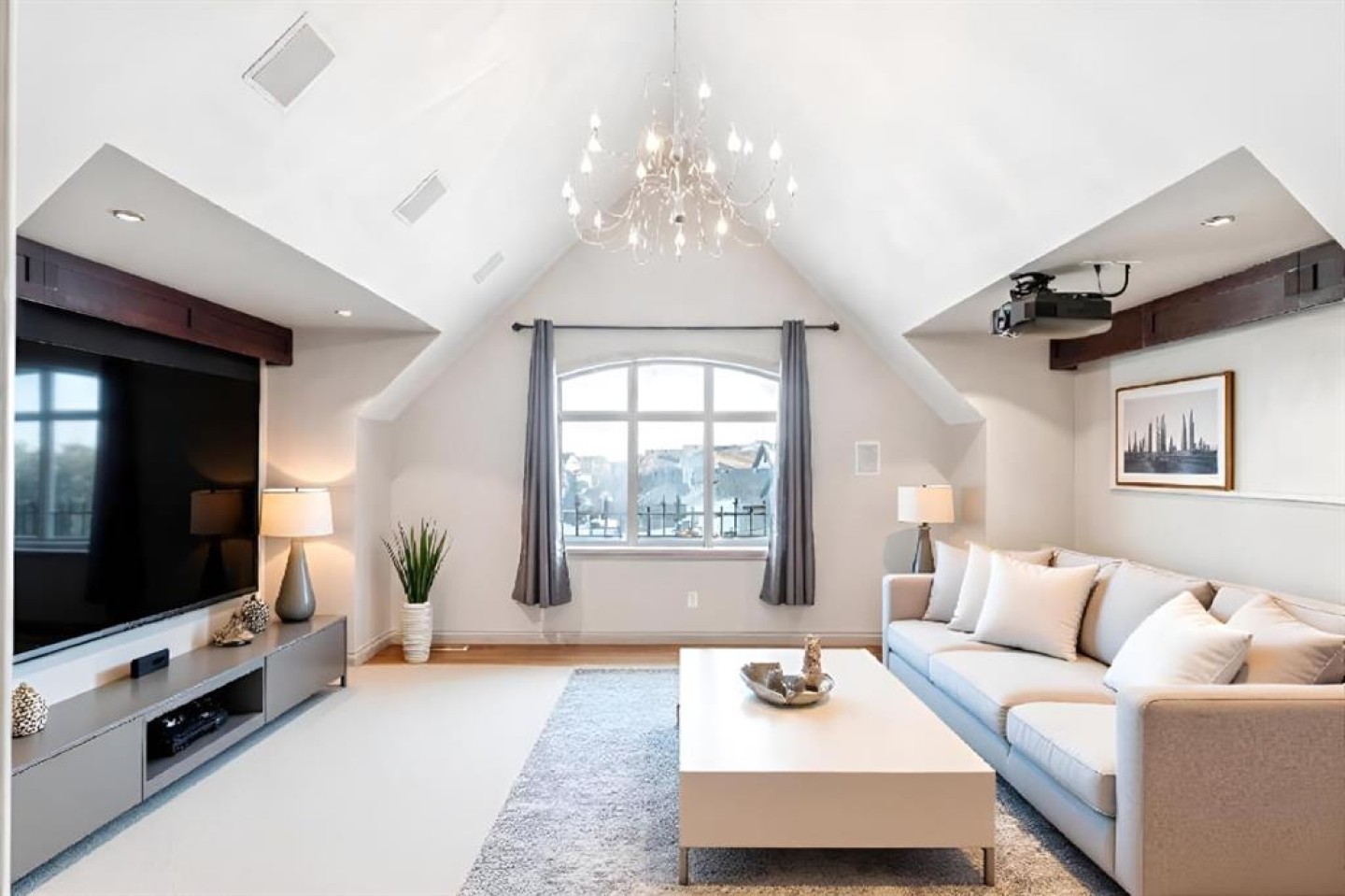 Beamed Ceilings, Bookcases, Built-in Features, Central Vacuum, Chandelier, Closet Organizers, Crown Molding, French Door, Granite Counters, High Ceilings, Kitchen Island, Natural Woodwork, Open Floorplan, Pantry, Recessed Lighting, See Remarks, Storage, Vaulted Ceiling(s), Vinyl Windows, Walk-In Closet(s), Wired for Sound