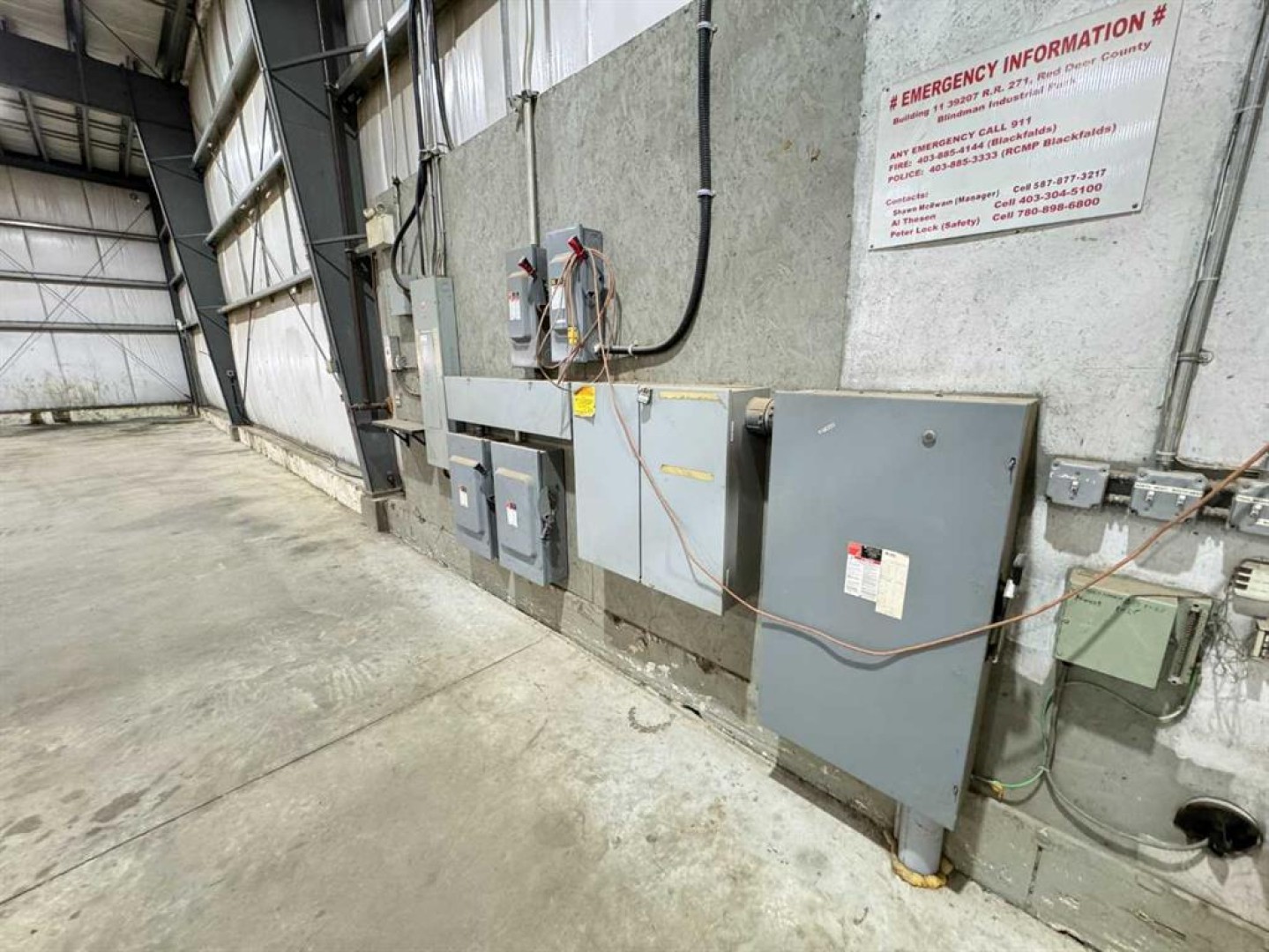FOR SALE! This 12,500 SQ FT STAND ALONE SHOP w/ 2 offices, common area, 3 baths, NEWLY RENOVATED (approximately 1,000 sq ft) and developed in the north-west corner of the shop. Boasts a 305,000 litre fire-fighting 4-season water vault ONSITE on 2.61 ACRES of FENCED, COMPACTED GRAVEL YARD! Gravelled front drive for customer/ employee parking, NEW LED SHOP LIGHTS, New office flooring, fresh paint , SEALED FLOOR with separate shop & sewer sumps, Located in the NEW BLINDMAN INDUSTRIAL AREA- Featuring 125'x100' long building with 4-14’x16’h DRIVE-THRU BAYS at the front, 6-14'X16'H bay doors at the back, TEN bay doors in total. Decent drive-around access provided by drive-thru gate on east side of the property. Visit REALTORS® website for more details on this great stand-alone shop in Red Deer County. BSI ZONED, lots of flexibility to operate your business from this space.