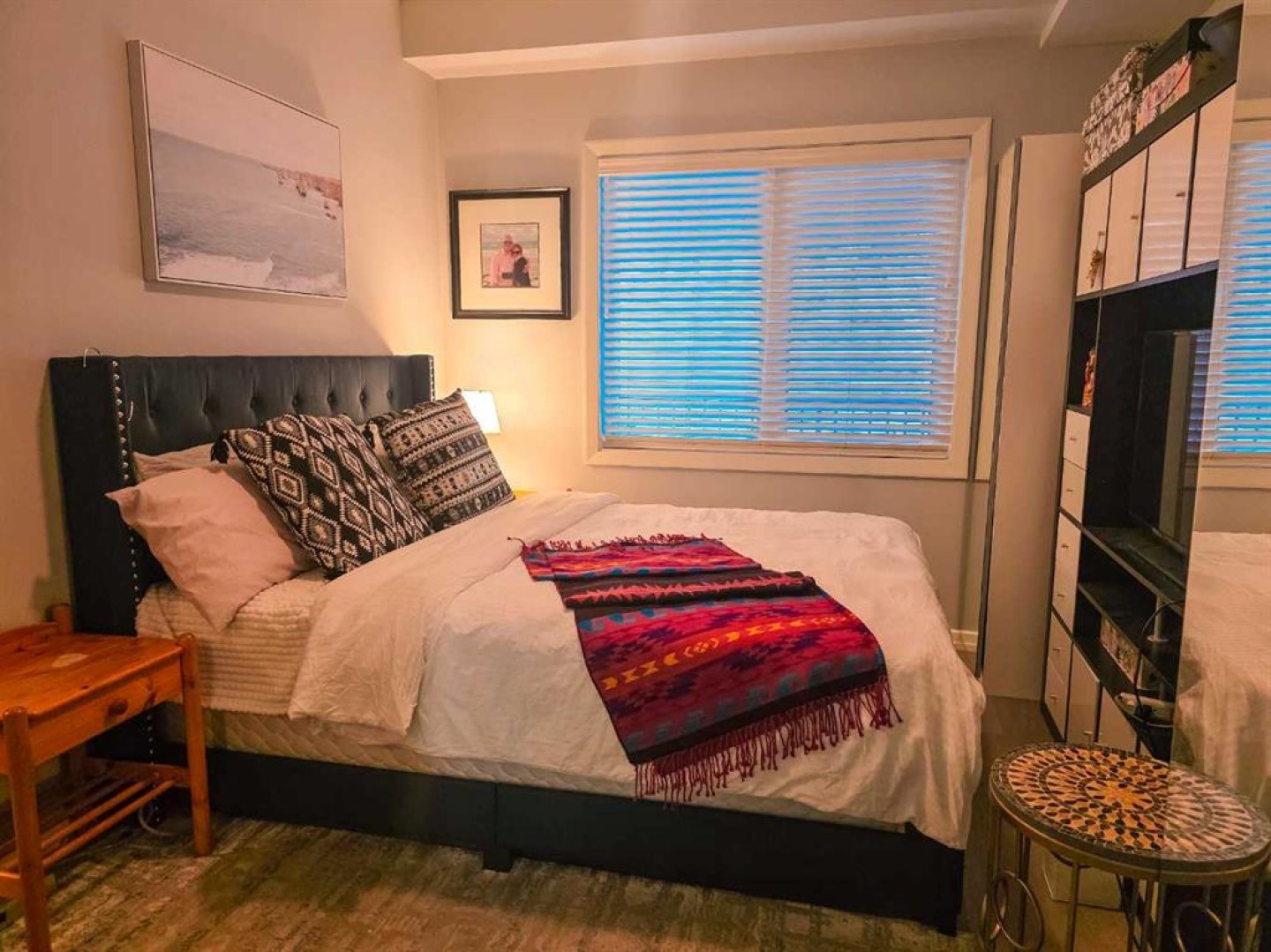 Gas Fireplace in the living room, Blinds