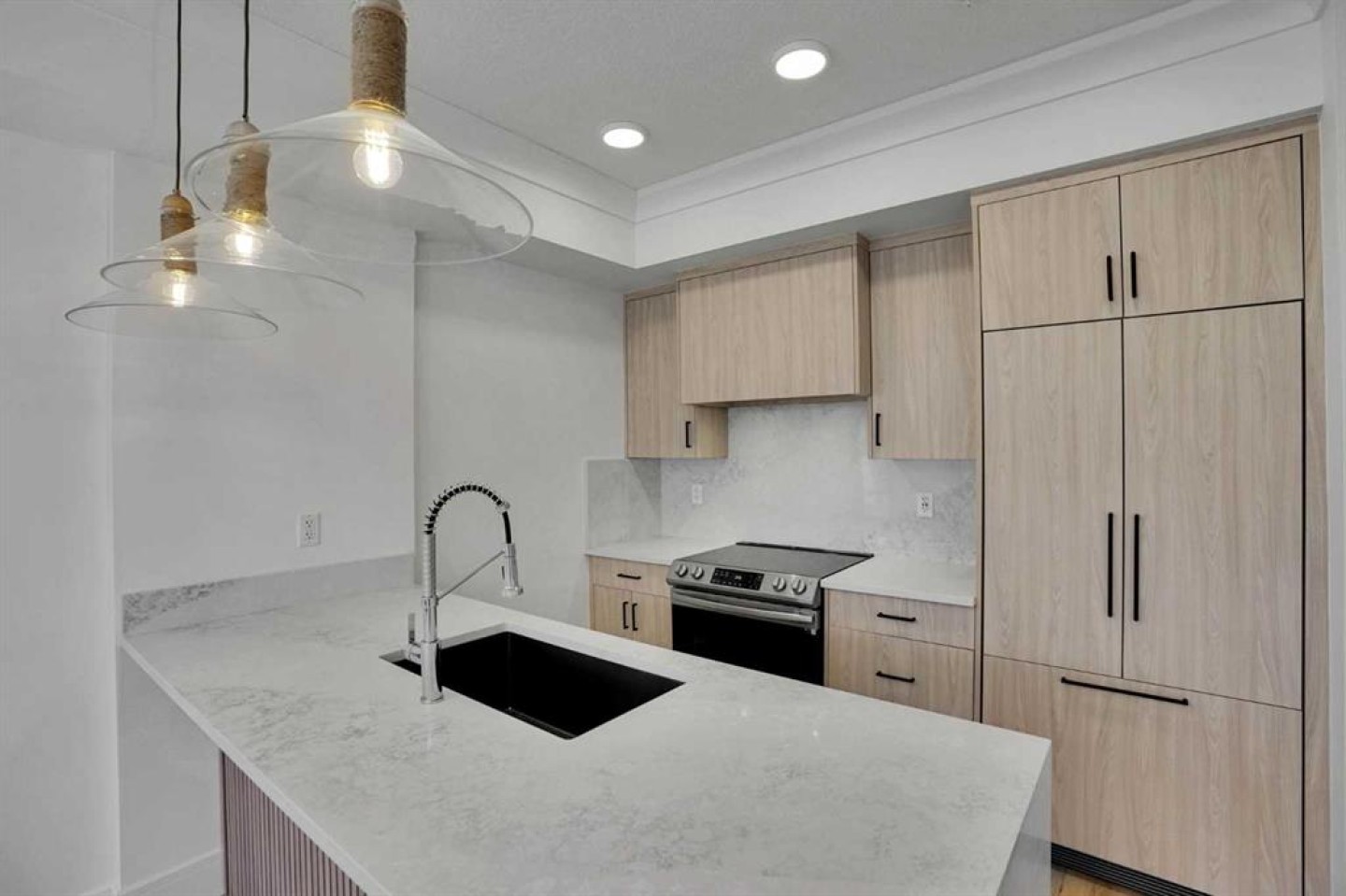 Welcome to this brand-new, never-lived-in 1 bedroom plus den condo in the prestigious Currie Barracks community—where timeless architecture meets modern inner-city living. Thoughtfully designed and finished with upscale details, this home is ideal for professionals, first-time buyers, downsizers, or investors seeking a low-maintenance lifestyle in one of Calgary’s most desirable SW locations. Step inside to discover high ceilings, luxury vinyl plank flooring, elegant crown mouldings, and oversized windows that flood the space with natural light. The open-concept layout seamlessly connects the kitchen, dining, and living areas—perfect for entertaining or everyday comfort. The designer kitchen features quartz countertops and backsplash, ceiling-height cabinetry, premium built-in stainless steel appliances, and sleek modern hardware—offering both beauty and functionality. The spacious living area flows effortlessly from the kitchen, creating a bright and inviting atmosphere. The primary bedroom is well-proportioned with large windows and ample closet space, while the versatile den is perfect for a home office, study, or guest area. The contemporary bathroom is finished with floor-to-ceiling tile, quartz vanity, and stylish fixtures, delivering a spa-inspired feel. Additional conveniences include in-suite laundry, air-conditioning rough-in, and extra storage. This unit comes with titled heated underground parking, access to EV charging stations, and a Pet-Friendly, Short-Term Rental–Friendly building, making it an excellent opportunity for both homeowners and investors. Located just minutes from Mount Royal University, Marda Loop, public transit, schools, downtown Calgary, parks, shopping, and major roadways. Currie Barracks offers an unmatched blend of walkability, green space, and urban convenience—all within a historic, master-planned community. Immediate possession available. Don’t miss your chance to own a brand-new home in one of Calgary’s most exciting inner-city developments—check out the 3D Virtual Tour link or book your private showing today!