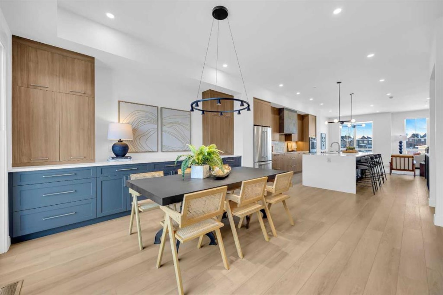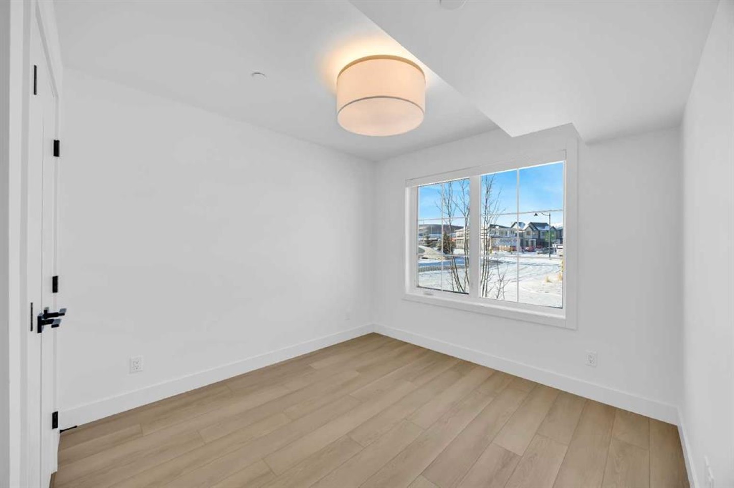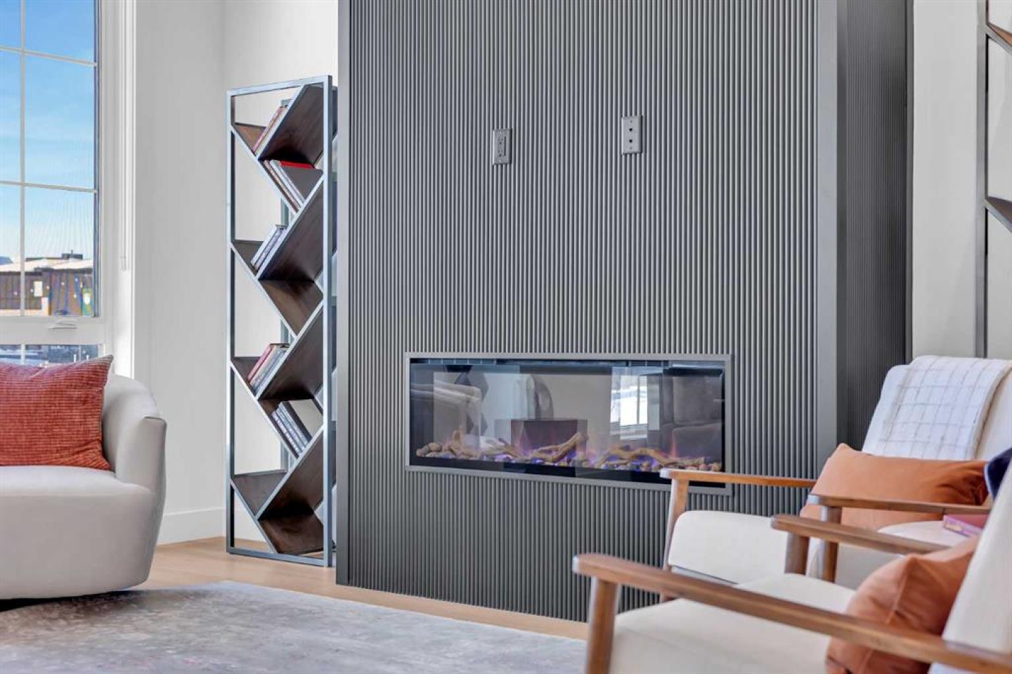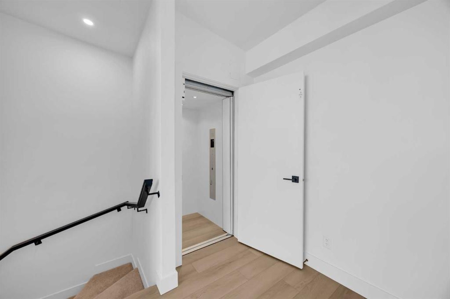 Welcome to 12 Greenwich Heath NW, the Carrara model by Partners, a distinctive four-storey Modern Brownstone directly fronting the canal in the northwest community of Upper Greenwich. Offering a rare combination of architectural presence, refined interiors, and an exceptional waterfront setting, this no-condo-fee residence stands apart within Calgary’s luxury townhome market. The exterior reflects classic brownstone architecture, while the interior has been professionally curated with elevated finish selections throughout. The home features a private four-storey elevator, rooftop patio, and an oversized heated rear-attached double garage, providing comfort, convenience, and long-term versatility for a range of discerning buyers. The entry level begins with an expansive foyer and includes a flexible office or bedroom, a full bathroom, and a mudroom with custom built-ins. Direct access to the heated garage adds everyday practicality. The main living level offers 10’ ceilings and oversized windows that frame canal views and fill the home with natural light. The kitchen is thoughtfully designed with a custom plaster hood fan and an oversized waterfall-edge quartz island. Built-in dining cabinetry adds both function and visual cohesion, while the living room is anchored by a statement fireplace. A rear deck with enclosed storage extends the living space outdoors. A powder room with floating vanity and under-cabinet lighting completes this level. The third floor is dedicated to the private sleeping quarters. The primary suite features a well-appointed ensuite with fully tiled glass shower, freestanding soaker tub, and dual vanities. Two additional bedrooms share a full bathroom finished to the same standard. A laundry room with built-in cabinetry, sink, and quartz countertops adds everyday convenience. The top floor is designed as an elevated entertaining space, complete with a wet bar and beverage fridge. From here, step onto the private rooftop patio with hot tub rough-in and open views toward the canal and surrounding community. Additional features include air conditioning, a full blinds package, and modern mechanical systems designed for comfort and efficiency. Upper Greenwich has been thoughtfully planned to offer a strong sense of character, walkability, and connection to green space. Residents enjoy immediate access to the canal and pathways, proximity to the Bow River pathway system, Calgary Farmers’ Market West, nearby shops and restaurants, sports courts, playgrounds, and WinSport. With convenient access to downtown Calgary and the Rocky Mountains, the location offers a rare balance of urban convenience and natural surroundings. This is a rare opportunity to own a canal-front brownstone offering architectural distinction, refined interiors, and an exceptional setting in one of Calgary’s most distinctive communities.