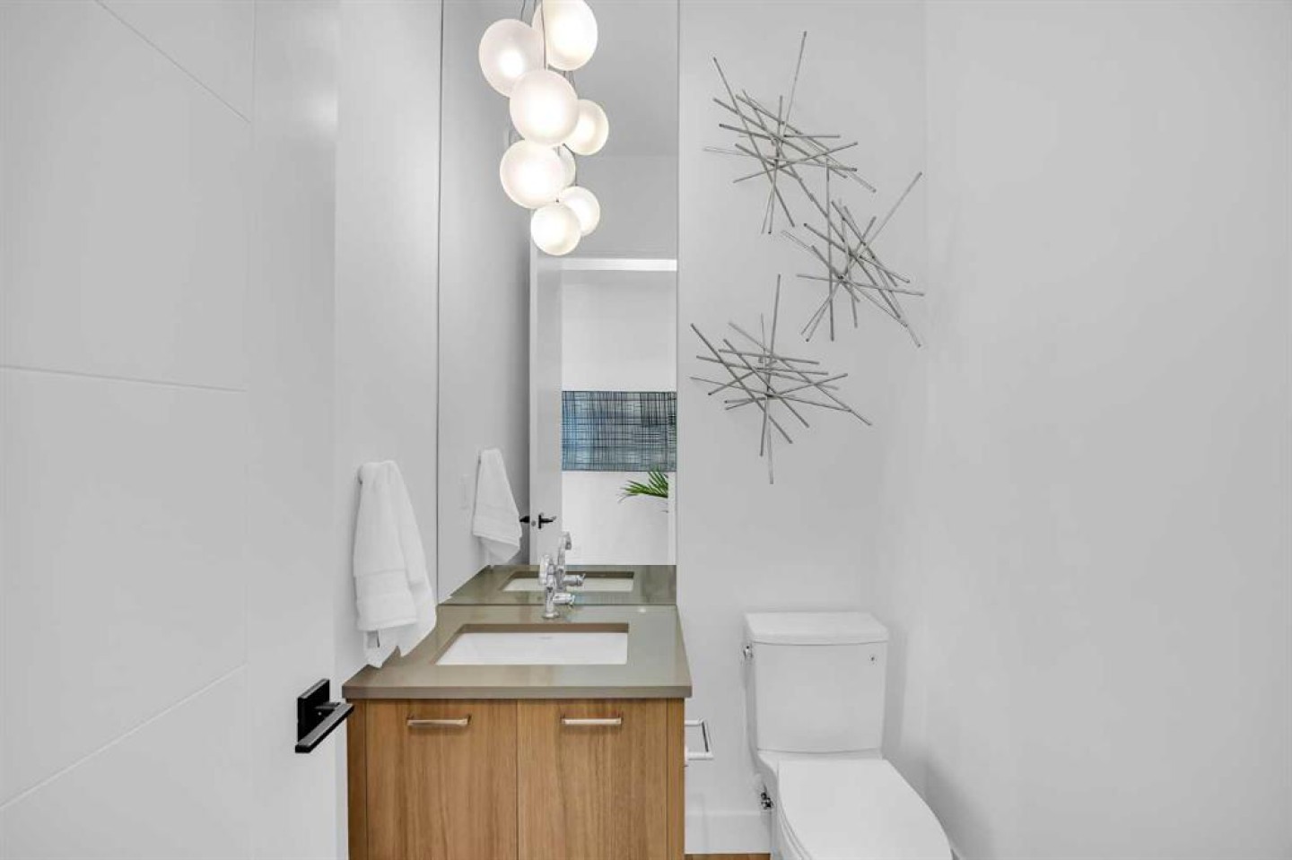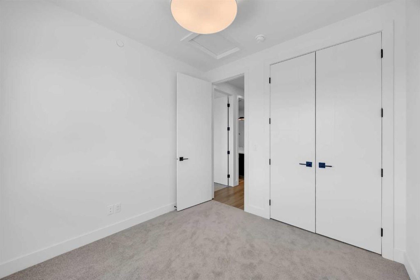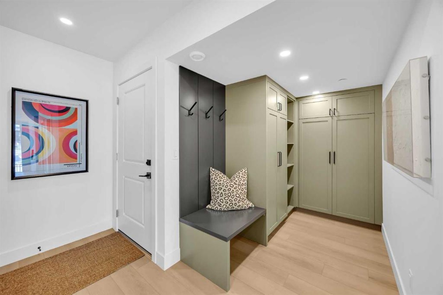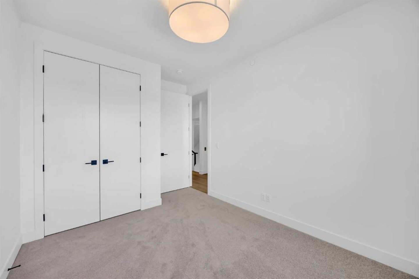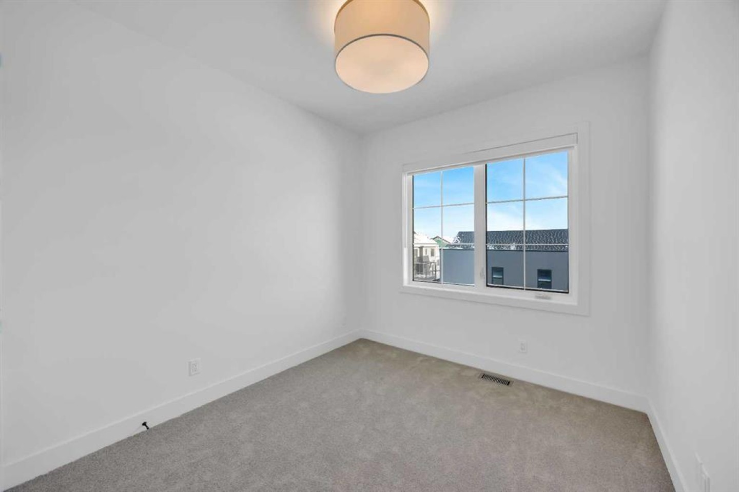 Welcome to 12 Greenwich Heath NW, the Carrara model by Partners, a distinctive four-storey Modern Brownstone directly fronting the canal in the northwest community of Upper Greenwich. Offering a rare combination of architectural presence, refined interiors, and an exceptional waterfront setting, this no-condo-fee residence stands apart within Calgary’s luxury townhome market. The exterior reflects classic brownstone architecture, while the interior has been professionally curated with elevated finish selections throughout. The home features a private four-storey elevator, rooftop patio, and an oversized heated rear-attached double garage, providing comfort, convenience, and long-term versatility for a range of discerning buyers. The entry level begins with an expansive foyer and includes a flexible office or bedroom, a full bathroom, and a mudroom with custom built-ins. Direct access to the heated garage adds everyday practicality. The main living level offers 10’ ceilings and oversized windows that frame canal views and fill the home with natural light. The kitchen is thoughtfully designed with a custom plaster hood fan and an oversized waterfall-edge quartz island. Built-in dining cabinetry adds both function and visual cohesion, while the living room is anchored by a statement fireplace. A rear deck with enclosed storage extends the living space outdoors. A powder room with floating vanity and under-cabinet lighting completes this level. The third floor is dedicated to the private sleeping quarters. The primary suite features a well-appointed ensuite with fully tiled glass shower, freestanding soaker tub, and dual vanities. Two additional bedrooms share a full bathroom finished to the same standard. A laundry room with built-in cabinetry, sink, and quartz countertops adds everyday convenience. The top floor is designed as an elevated entertaining space, complete with a wet bar and beverage fridge. From here, step onto the private rooftop patio with hot tub rough-in and open views toward the canal and surrounding community. Additional features include air conditioning, a full blinds package, and modern mechanical systems designed for comfort and efficiency. Upper Greenwich has been thoughtfully planned to offer a strong sense of character, walkability, and connection to green space. Residents enjoy immediate access to the canal and pathways, proximity to the Bow River pathway system, Calgary Farmers’ Market West, nearby shops and restaurants, sports courts, playgrounds, and WinSport. With convenient access to downtown Calgary and the Rocky Mountains, the location offers a rare balance of urban convenience and natural surroundings. This is a rare opportunity to own a canal-front brownstone offering architectural distinction, refined interiors, and an exceptional setting in one of Calgary’s most distinctive communities.