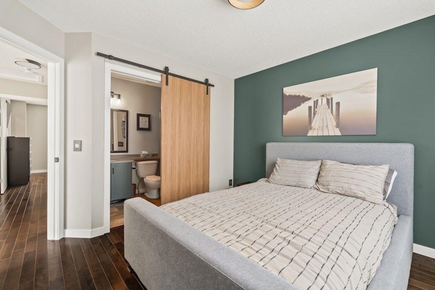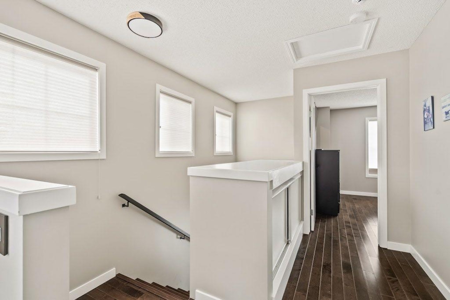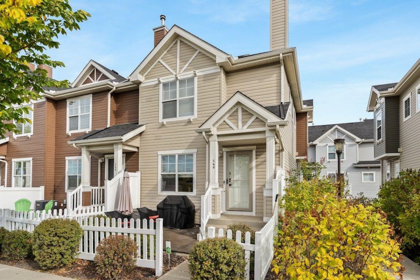 Welcome to 149 Elgin Gardens SE — an exceptional cared- for end-unit townhouse nestled in the heart of McKenzie Towne, one of Calgary’s most vibrant & sought-after communities known for its charming character, family-friendly atmosphere, & unbeatable convenience. This beautifully renovated 2-storey home has been thoughtfully updated throughout, blending modern finishes with functional design. Stay cool during Calgary’s warm summers with central air conditioning (Lennox unit), & enjoy the comfort & peace of mind offered by numerous recent upgrades. Highlights include; new hot water tank installed in 2024, new baseboards & trim, custom closet doors with sleek black hardware, Legrand Adorne switches & outlets, modern light fixtures & fresh paint throughout, low-maintenance hardwood flooring on the main & upper level, solid wood staircase railings with black hardware, neutral top-down/bottom-up cellular window coverings, striking vertical slat feature walls in the living room, dining room & 2-piece guest bathroom & the convenience of the Telus security system (no contract to assume). The open-concept main floor features a bright & spacious layout ideal for both everyday living & entertaining. The kitchen is equipped with granite countertops, an undermount Blanco sink with upgraded faucet, stainless steel appliances, & a bar-height island — perfect for casual dining or hosting friends. For hosting formal dinner parties, the oversized dining area will comfortably accommodate your guests. After dinner, the cozy living room is a perfect place to relax. A convenient 2-piece guest bathroom completes the main level. Upstairs, you’ll find two generously sized bedrooms, each with its own full en-suite bathroom. Both bathrooms have been upgraded with quartz countertops, undermount sinks, updated faucets, modern mirrors, travertine tile, sliding barn doors & coordinating black hardware. The primary bedroom includes a walk-in closet with built-in shelving & southwest-facing windows offering views of the Rocky Mountains. A bright flex space or home office area completes the upper level. The basement level offers additional storage, a laundry area with front-load machines, & direct access to the double attached garage, which is insulated, drywalled, & features a durable epoxy-coated floor. The garage backs onto a paved alley & within steps from the garage are guest parking stalls. Enjoy outdoor living in the fenced front yard with southwest exposure — perfect for barbecues, relaxing, or entertaining. Living in McKenzie Towne means access to beautifully planned streetscapes, walkable amenities, & a true small-town community vibe. You’re just minutes from the shops, restaurants, & services on High Street, with quick access to Stoney Trail & Deerfoot Trail, & close proximity to the South Health Campus, Seton amenities, schools, parks, and playgrounds. Don’t miss this rare opportunity to own a fully updated, move-in-ready townhouse in one of Calgary’s most beloved communities.