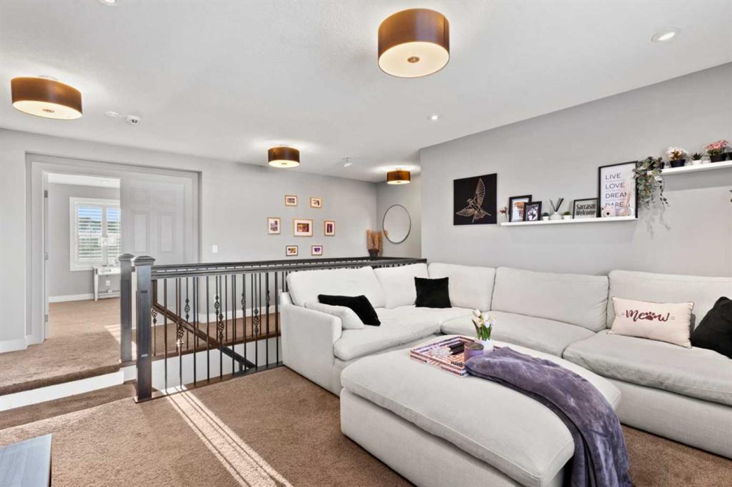 Upstairs, you’ll find a generous bonus room, three spacious bedrooms, and two full bathrooms. The expansive primary retreat includes a walk-in closet and a luxurious ensuite with double vanities, a fully tiled soaker tub, and a glass-enclosed shower.