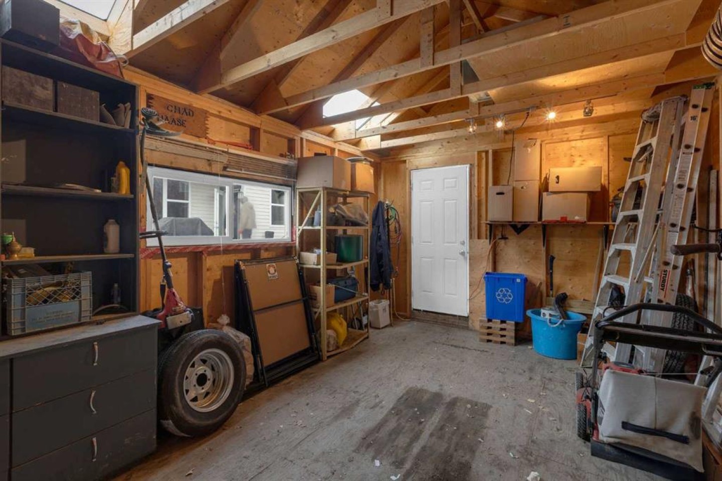 Situated on a corner lot, the property also boasts an oversized heated garage and a 12’ x 18’ shed with skylights, providing ample storage and workspace.