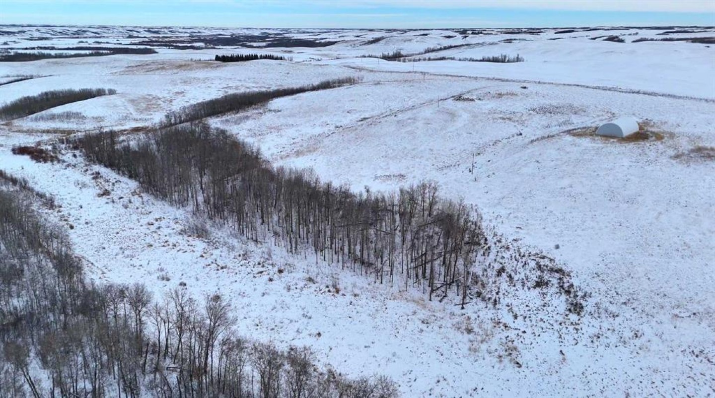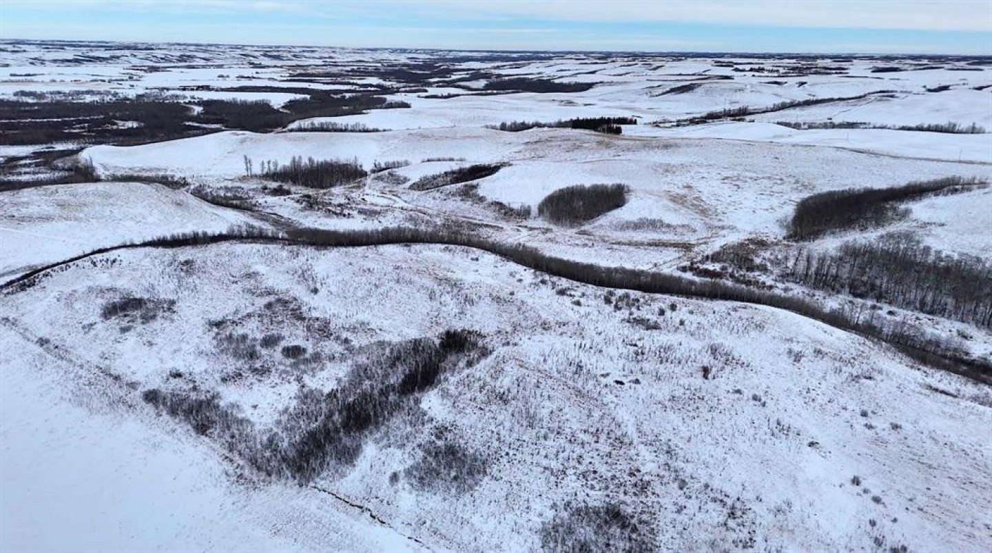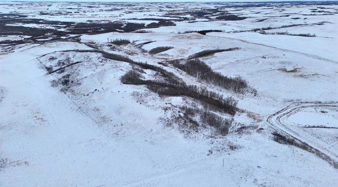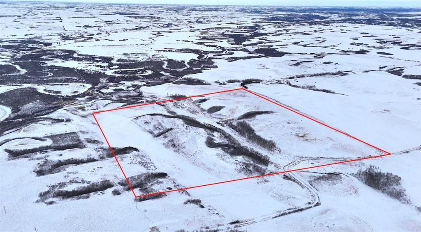 Set within Flagstaff County near Hardisty, this 175-acre parcel offers a well-balanced mix of productive land, natural shelter, and distinctive prairie topography. Gently rolling terrain gives way to a sheltered aspen-lined valley, where a small creek meanders through the property, creating natural water, cover, and visual appeal. Multiple dugouts further support livestock and wildlife use.