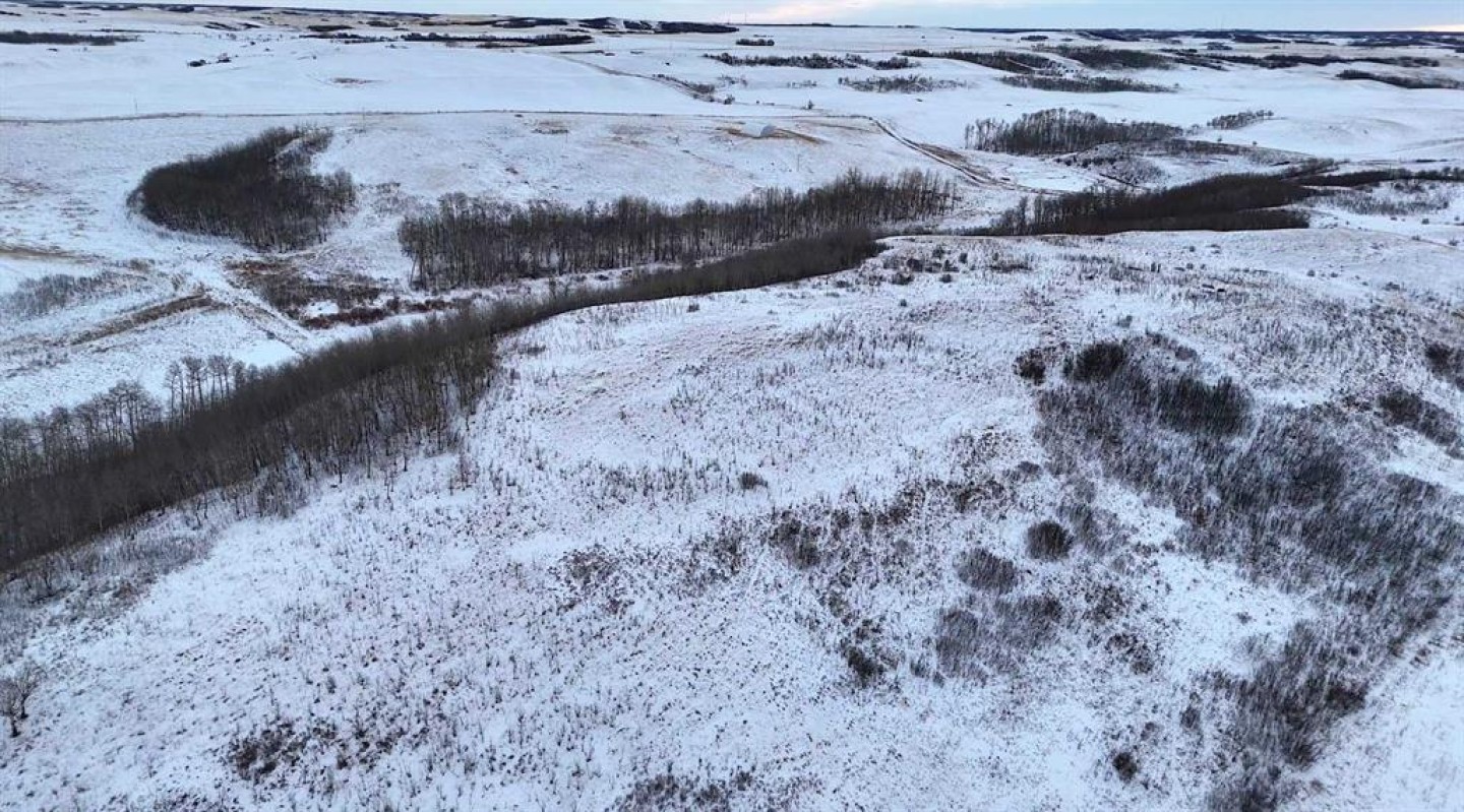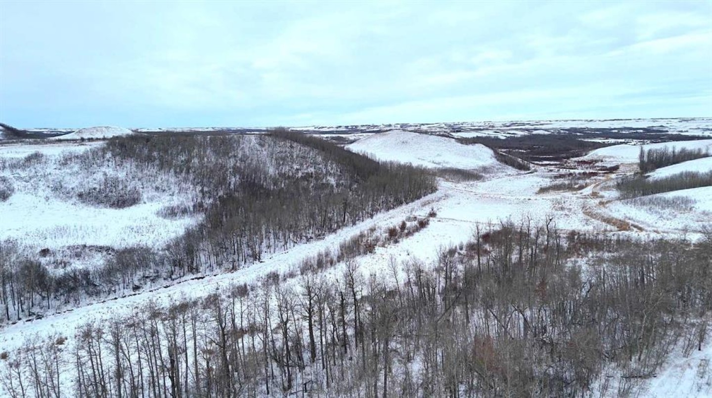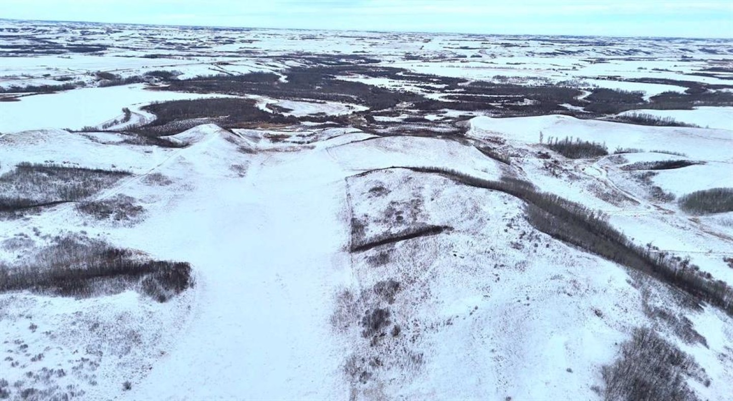 Set within Flagstaff County near Hardisty, this 175-acre parcel offers a well-balanced mix of productive land, natural shelter, and distinctive prairie topography. Gently rolling terrain gives way to a sheltered aspen-lined valley, where a small creek meanders through the property, creating natural water, cover, and visual appeal. Multiple dugouts further support livestock and wildlife use.