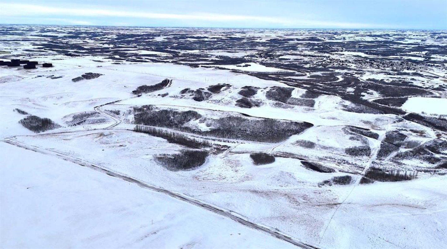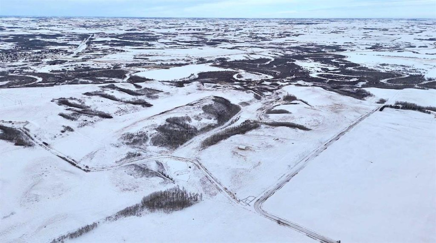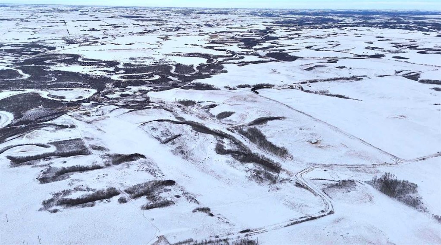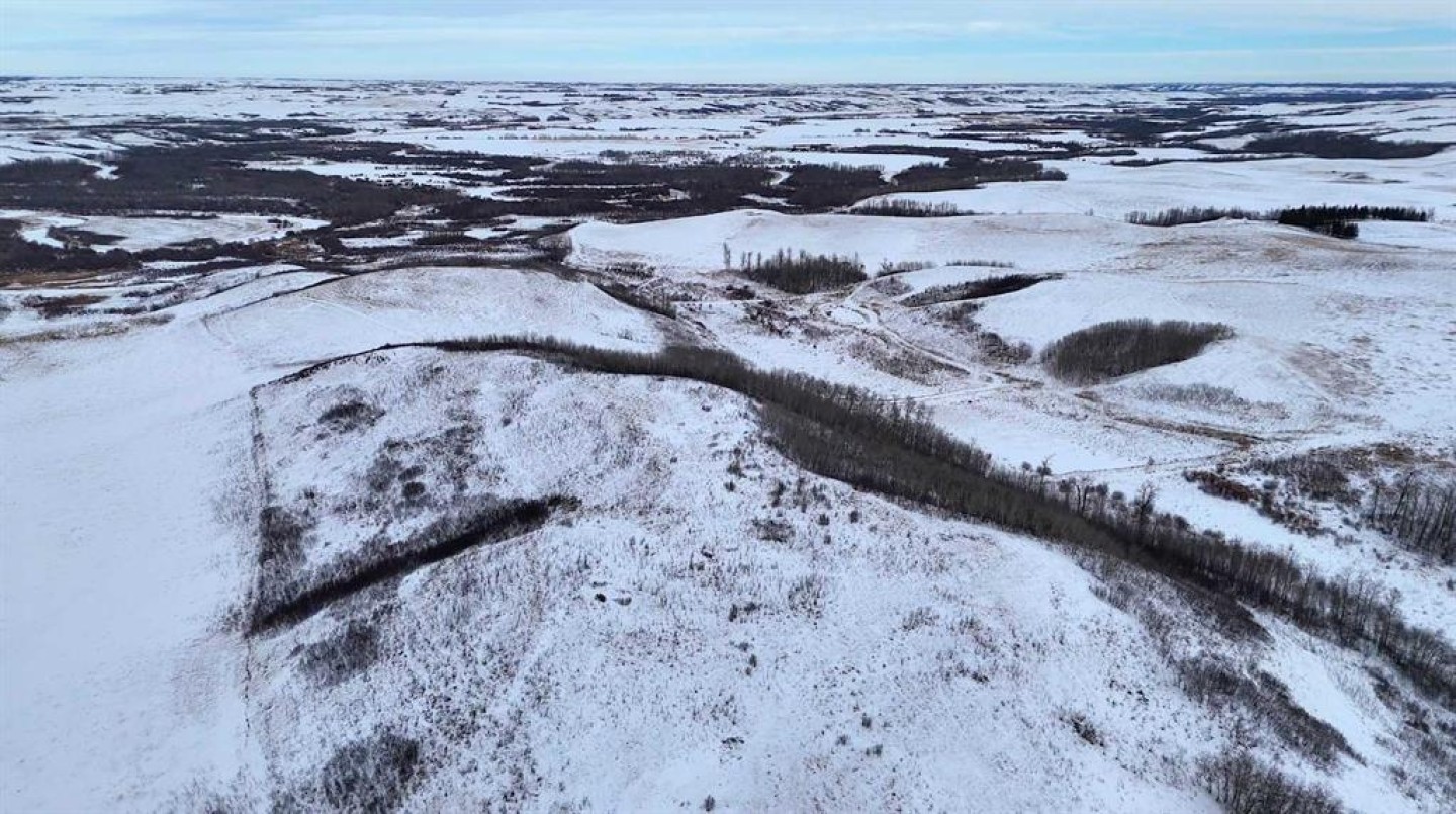 Set within Flagstaff County near Hardisty, this 175-acre parcel offers a well-balanced mix of productive land, natural shelter, and distinctive prairie topography. Gently rolling terrain gives way to a sheltered aspen-lined valley, where a small creek meanders through the property, creating natural water, cover, and visual appeal. Multiple dugouts further support livestock and wildlife use.