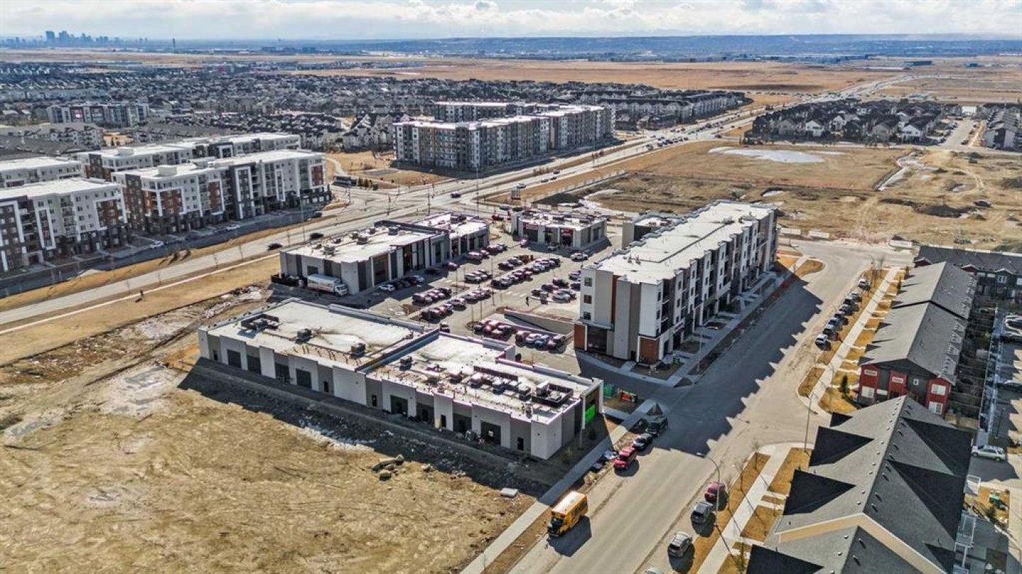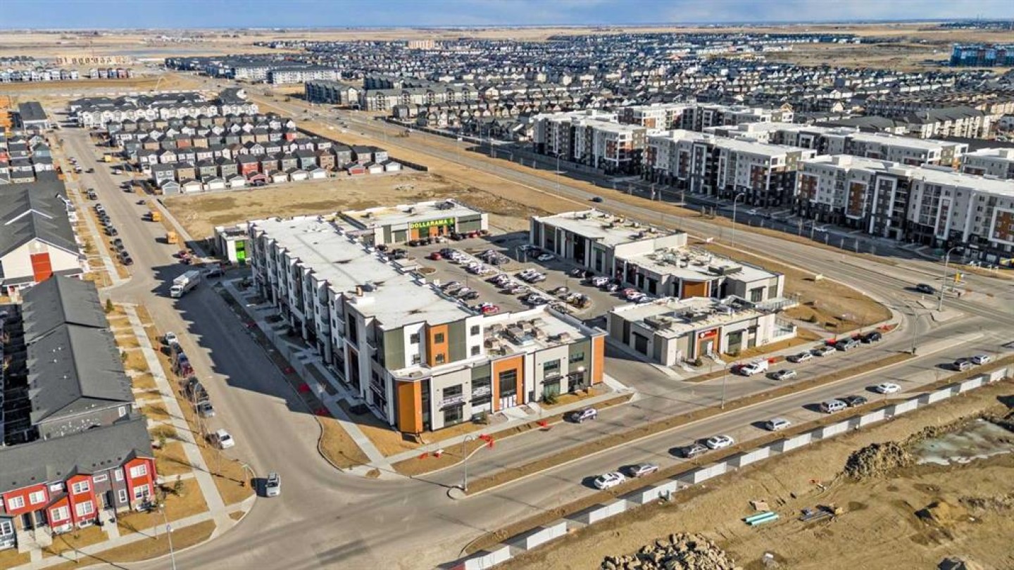 Fully established retail shopping centre anchored by Dollarama and a major grocery store, medical, pharmacy, dental, restaurants, coffee shop generating strong daily foot traffic. Available units for sale or lease 1,736 sq. ft., 1,969 sq. ft., and 1,730 sq. ft. Future LRT station approx. 100 meters away. Free underground parking. Surrounded by 4-storey apartments and multifamily developments. Excellent access with minutes to Deerfoot Trail and Stoney Trail. High-visibility location in a rapidly growing community.