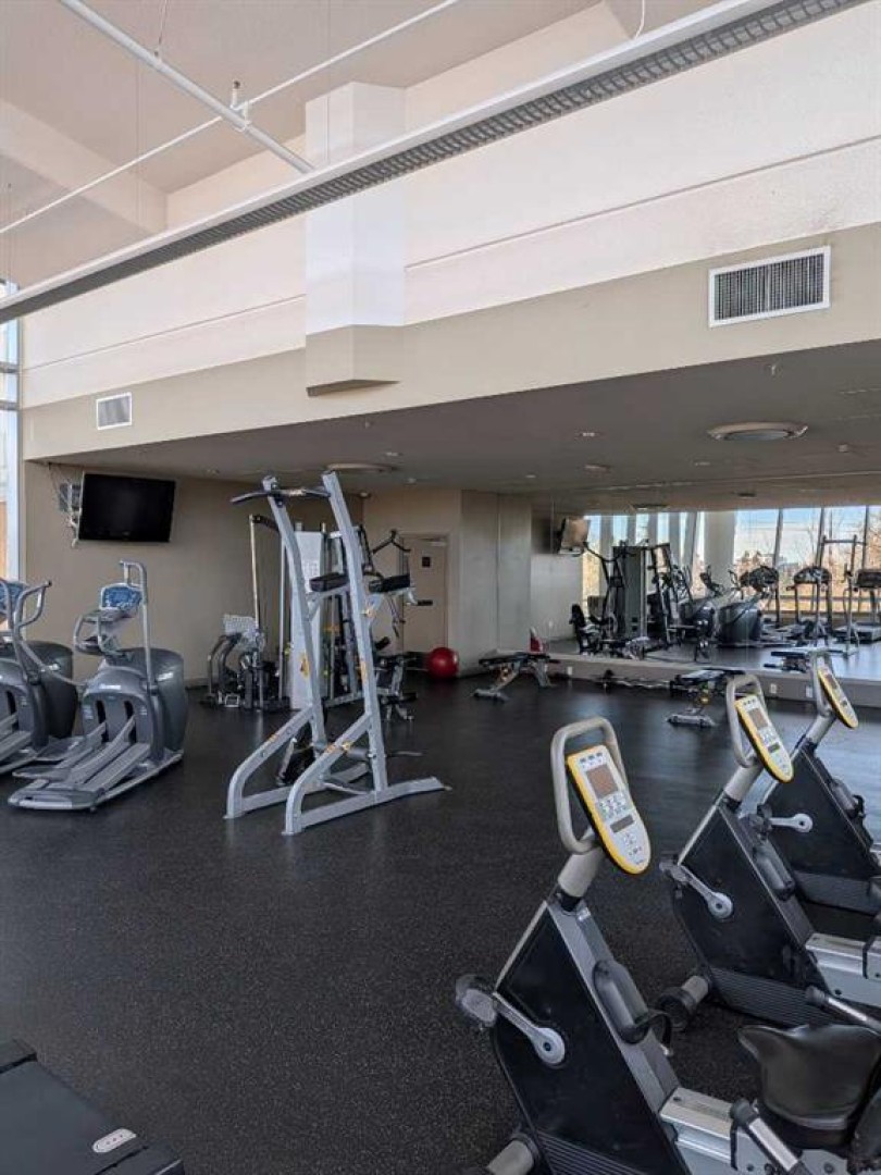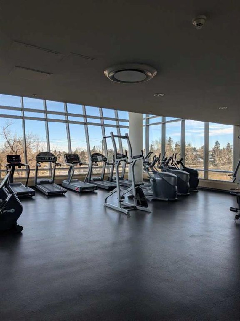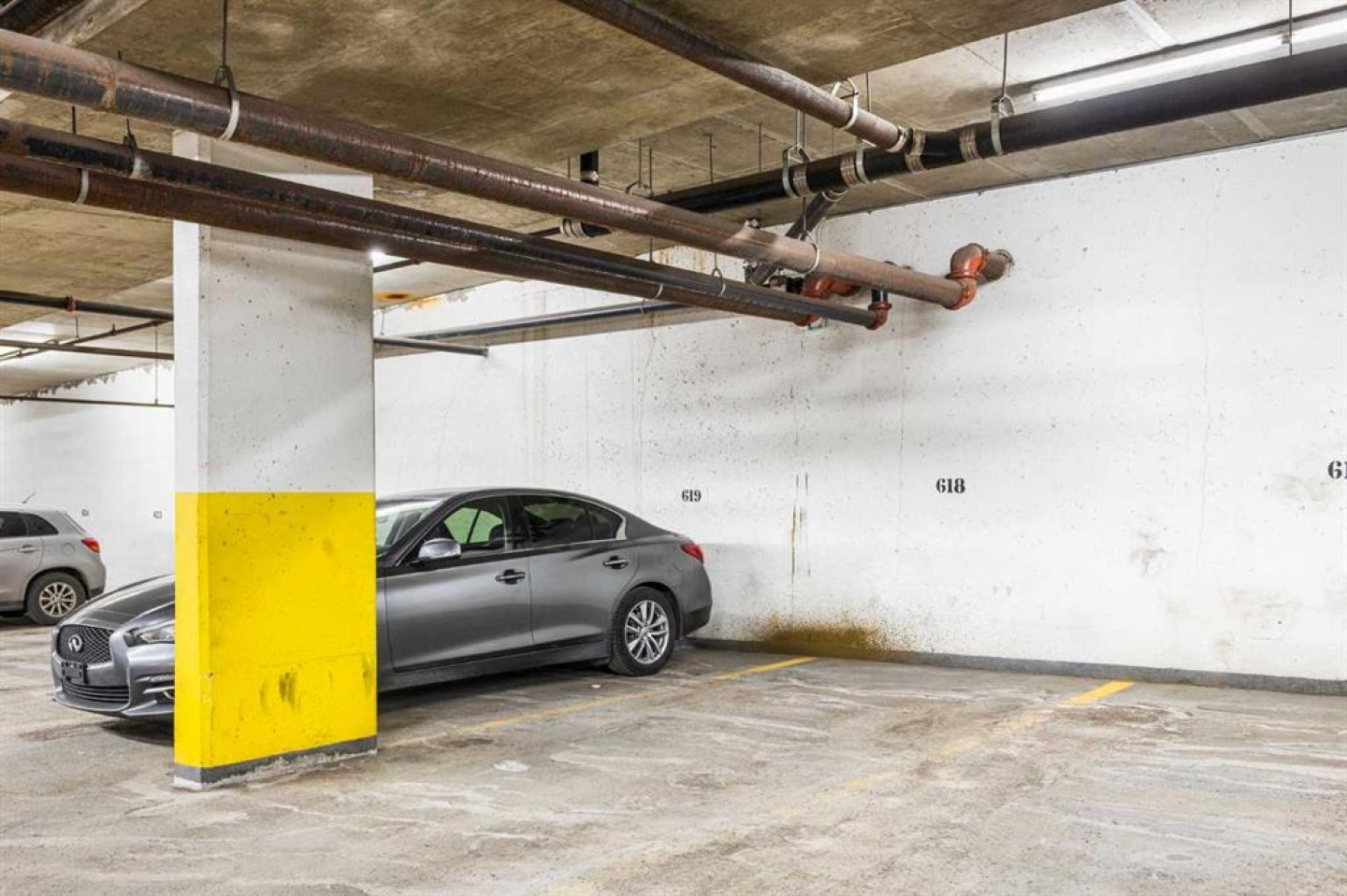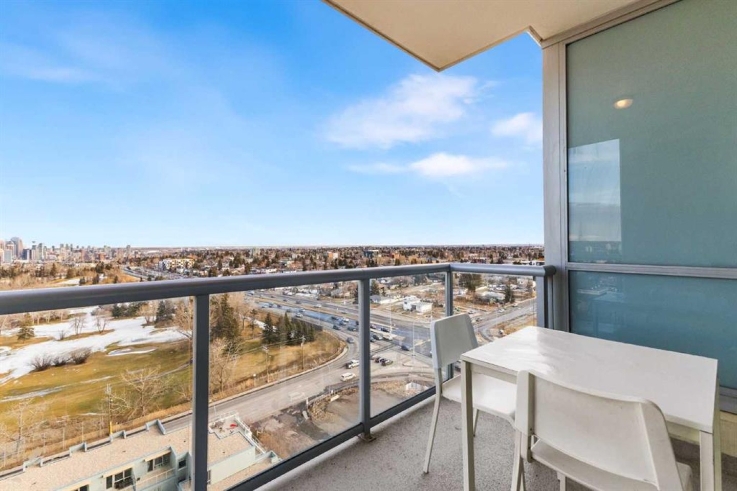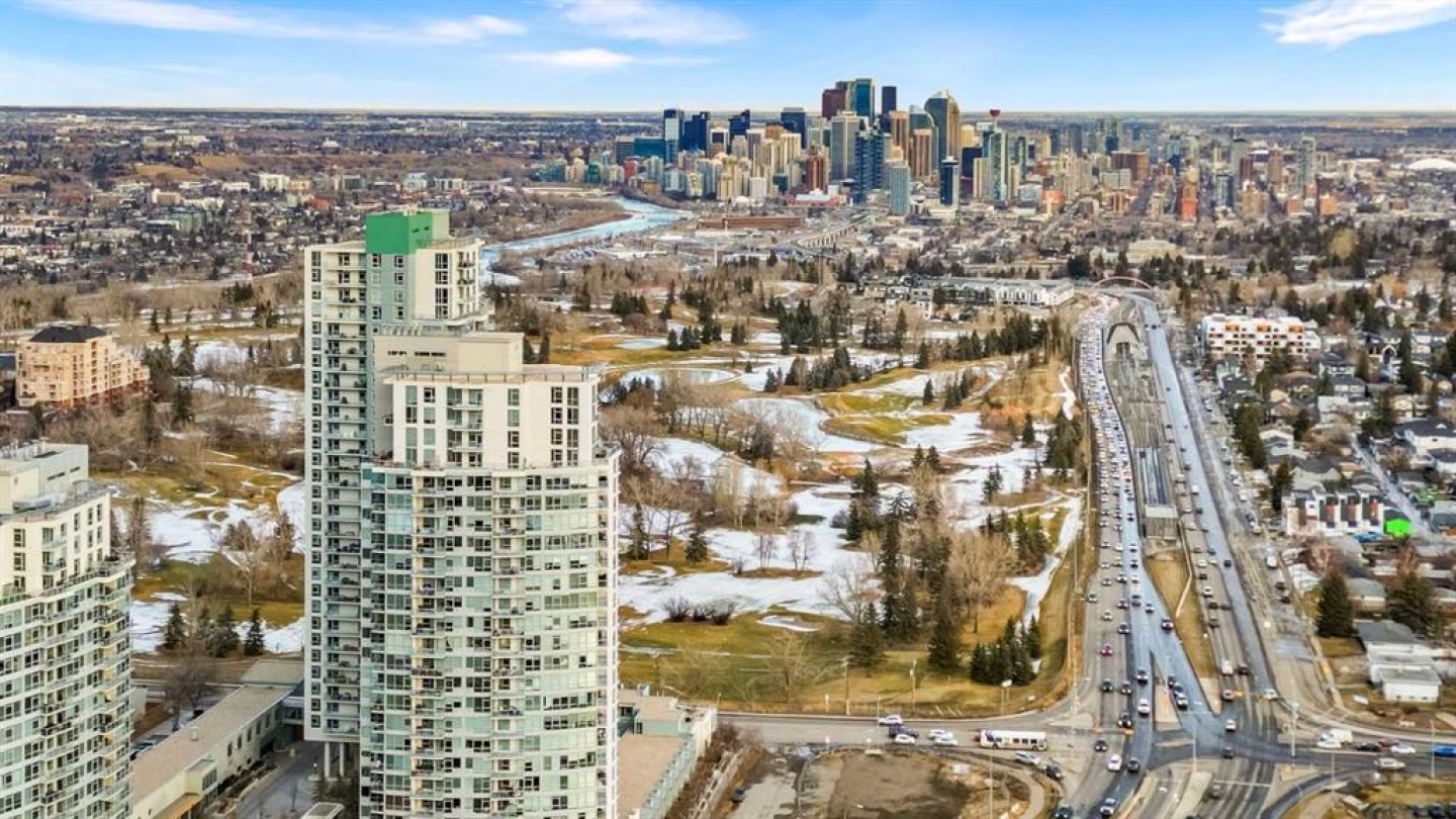 One of the largest and best-priced corner units with unobstructed downtown and golf course views in Spruce Cliff. Over 1,020 sq ft, 15th floor elevation, two balconies, concrete construction, and full resort-style amenities, this is the value benchmark in the building. Floor-to-ceiling windows wrap the home in natural light, while the open-concept layout delivers both scale and flexibility. The living area is anchored by a corner gas fireplace, creating a warm focal point ideal for both everyday living and entertaining. The modern kitchen features rich cabinetry, granite countertops, stainless steel appliances, and a functional island that connects seamlessly to the living and dining spaces. The primary suite is a true retreat with a walk-through closet and private ensuite, while the second bedroom and full bathroom offer excellent versatility for guests, a home office, or growing families. A dedicated den/flex space, central air conditioning, in-suite laundry, and thoughtful storage throughout elevate everyday comfort. Two private balconies extend the living space outdoors and provide front-row seats to sunrise skies, city lights, and seasonal golf course views, an experience few units can match at this price point. Located in the sought-after Encore concrete high-rise, residents enjoy resort-style amenities including an indoor pool, hot tub, fully equipped fitness centre, games room, social lounge, and 24-hour on-site security. A titled underground heated parking stall (#618) and assigned storage locker (L2-10) complete the offering. The location is unmatched for convenience. Westbrook Mall is connected via skywalk, offering direct access to Walmart, Safeway, and everyday services. The LRT station, major bus routes, and public library are steps away, while the Bow River pathway system, Edworthy Park, and Douglas Fir Trail are minutes from your door. Quick access to Bow Trail and Sarcee Trail puts the Trans-Canada Highway and the mountains within easy reach. Quiet, concrete construction, exceptional walkability, established surrounding communities, and unbeatable views combine to create a lifestyle that is increasingly hard to find. For buyers seeking space, elevation, views, and value, this is the benchmark unit in the building.