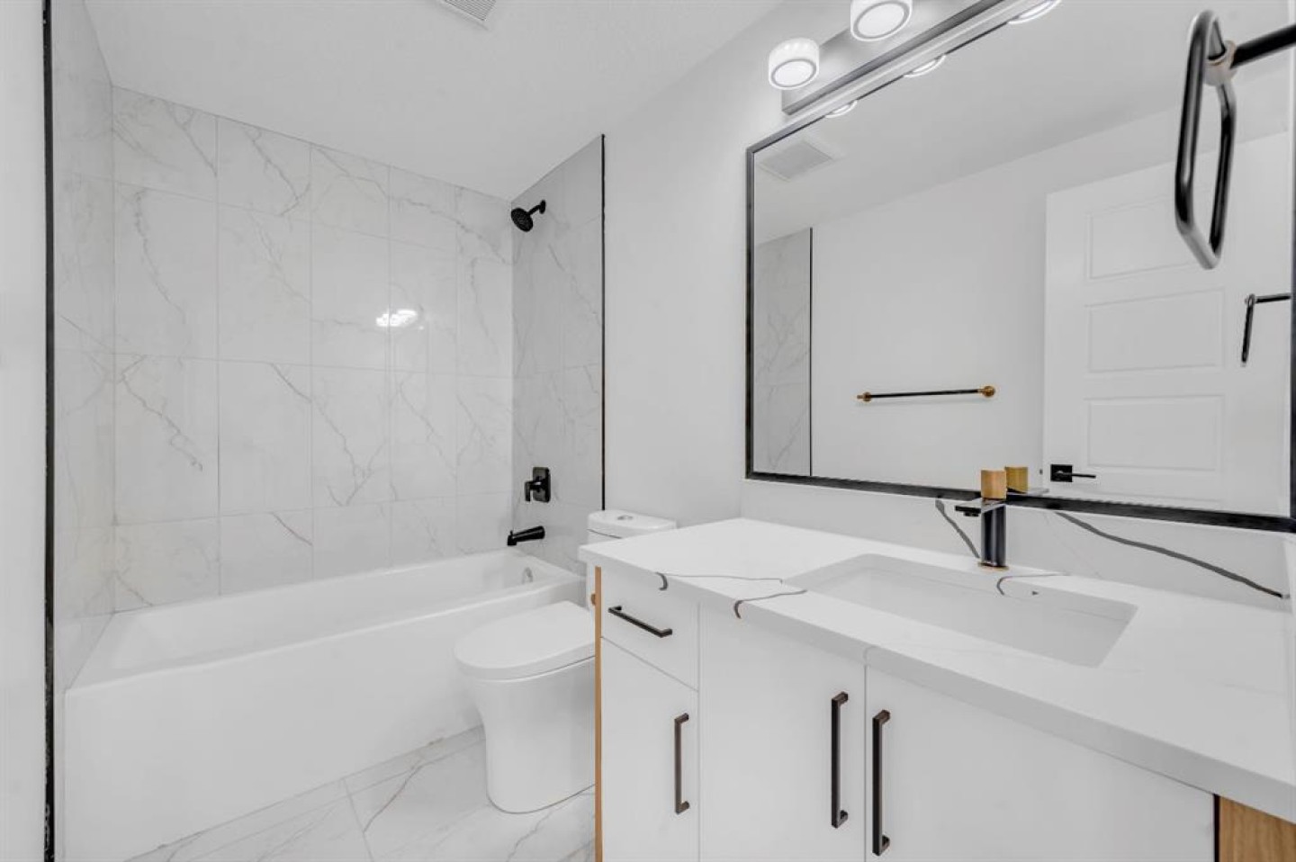 Welcome to this beautiful renovated half duplex in the heart of Dover,SE Calgary-completely transformed with exceptional attention to detail, premium finishes, and modern upgrades throughout.The main floor boasts brand new luxury vinyl plank flooring, sleek upgraded fixtures, stylish new cabinetry , and all brand new windows that flood the main floor with natural light .The fully redesigned kitchen shines with all brand new appliances-including a refrigerator, electric range, dishwasher, and laundry-while the spacious living room and convenient half bath create an inviting space for both relaxation and entertaining.Upstairs three generously sized bedrooms and a contemporary four-piece bathroom provide comfort and style for the whole family .Adding tremendous value ,a private side entrance leads to a one -bedroom basement suite (Illegal suite) with its own full set of brand-new appliances, making it ideal for extended family or rental income .Located close to schools ,parks , public transportation, and grocery amenities, this home delivers modern elegance and move -in ready charm -don't miss the opportunity to make it yours!