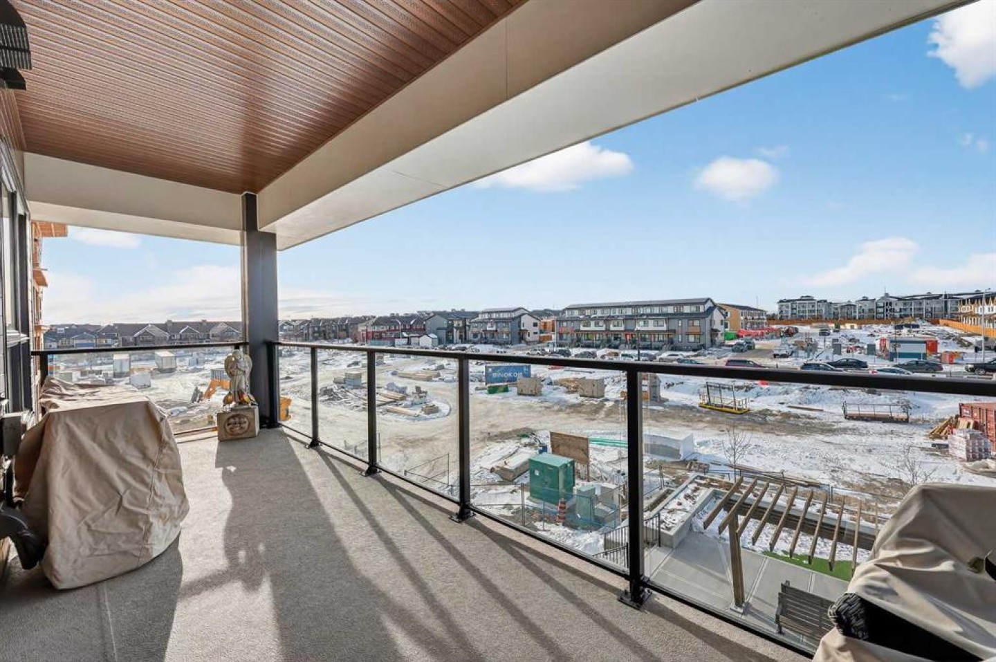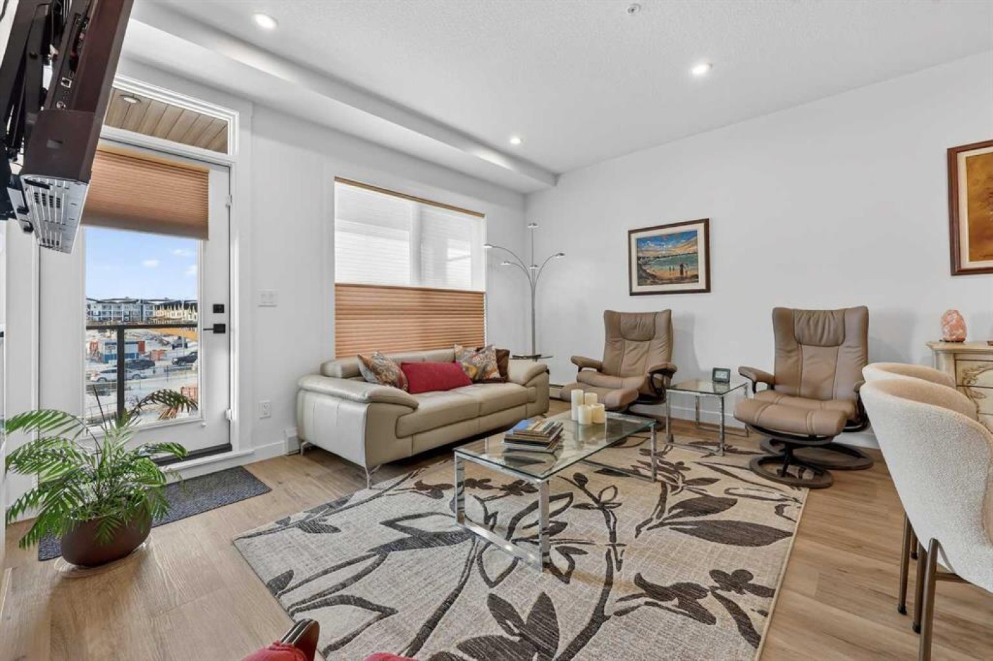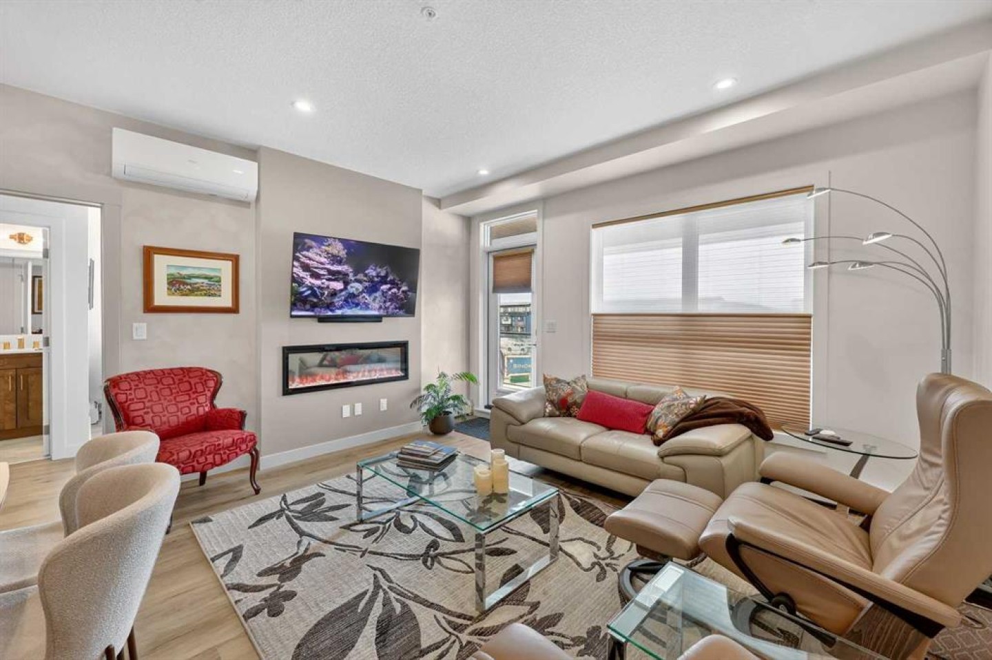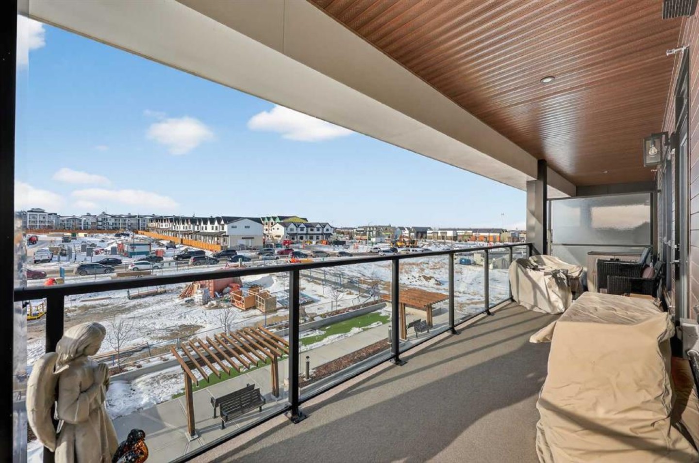 ** NEW LISTING ** Waterside Mahogany - Third Floor Corner Model "Atwood 3" with Courtyard Views - Quick Possession!! Unbelievable VALUE & DESIGN! This superb air-conditioned condo offers two bedrooms, two bathrooms, a titled indoor tandem parking stall (2 cars), extra tall windows, south exposure, a 160 SF covered balcony, and high 9' ceilings. Many Designer Value Added features ... Check and Compare; 974 RMS sq. ft. of luxurious living space. Loaded with extras... Luxury wide plank engineered flooring, upgraded lighting and plumbing fixtures, dual pane Low-E windows, wide patio door, modern white painted casings, doors & baseboards, white decora light switches, convenient laundry with storage & stacked washer/dryer. High-end stainless steel appliance package: fridge with freezer below, built-in microwave, smooth top electric cooktop, and quiet Energy Star-rated tall tub dishwasher. Upgraded Kitchen cabinets with tall upper doors + soft-close drawers + extra floor cabinets + mouldings with under-cabinet lighting, white quartz island countertops, undermount dual-basin stainless steel sink, full-height quartz backsplash, pull-out kitchen faucet, dramatic centre island with waterfall ends, flush eating bar, and room to sit 4. BONUS features: California closet built-in canisters, electric fireplace, and assigned storage locker! BUILDING INFO: latest in acoustic attenuation technology, including Sonopan panelling, combined with real-world testing to achieve best-in-class results. Acoustic Shield 2.0 helps create a calm, peaceful environment where life’s best moments thrive, because every home deserves comfort and connection without the noise. ERV - Advanced Ventilation System - This energy-efficient technology is designed to draw fresh air from outside, filter it, warm it (as needed), and circulate clean air into your home, exhausting the old. In every individual condo. Plus, a supersized front foyer and private entry! Mahogany is Calgary’s premier four-season lake community, centred around a stunning 63-acre freshwater lake and 22 acres of private beachfront. Residents enjoy exclusive access to swimming, kayaking, paddleboarding, fishing, skating, and year-round community events, all just steps from home. The award-winning Mahogany Beach Club offers recreation facilities, picnic areas, fire pits, playgrounds, and gathering spaces designed to bring neighbours together. Winding pathways, parks, and wetlands create a welcoming outdoor lifestyle, while nearby schools, transit, and major roadways provide everyday convenience. At the heart of the community, Mahogany Village Market features grocery, dining, cafés, fitness, and professional services—making it easy to live, work, and play close to home. Thoughtfully designed streetscapes, diverse housing options, and a strong sense of community make Mahogany one of Calgary’s most desirable places to live.