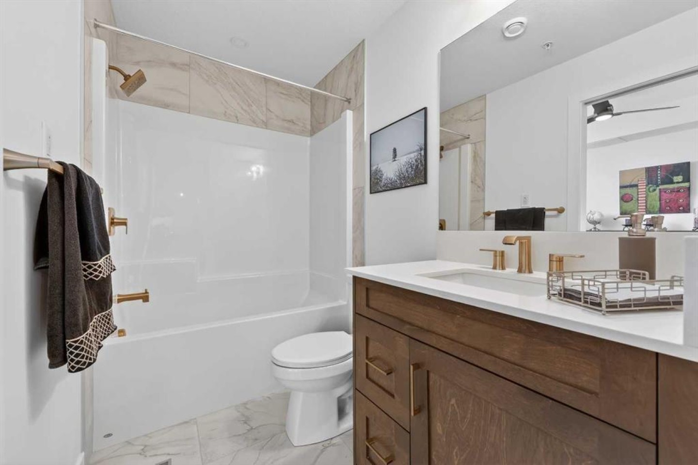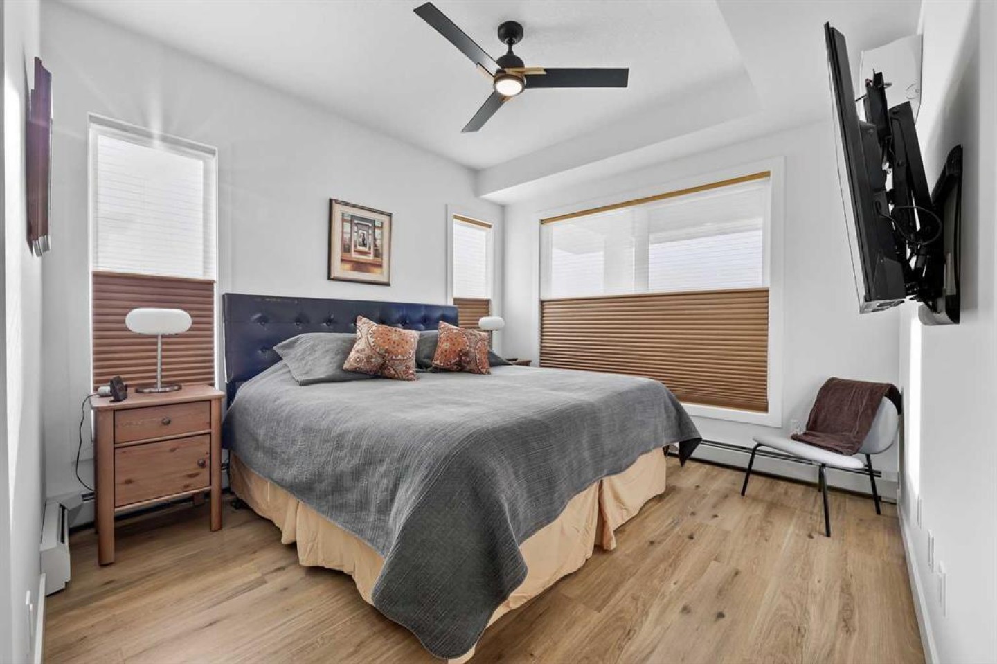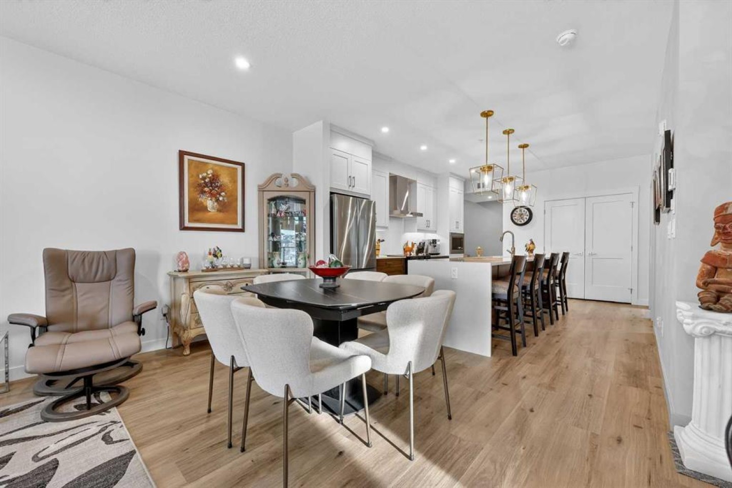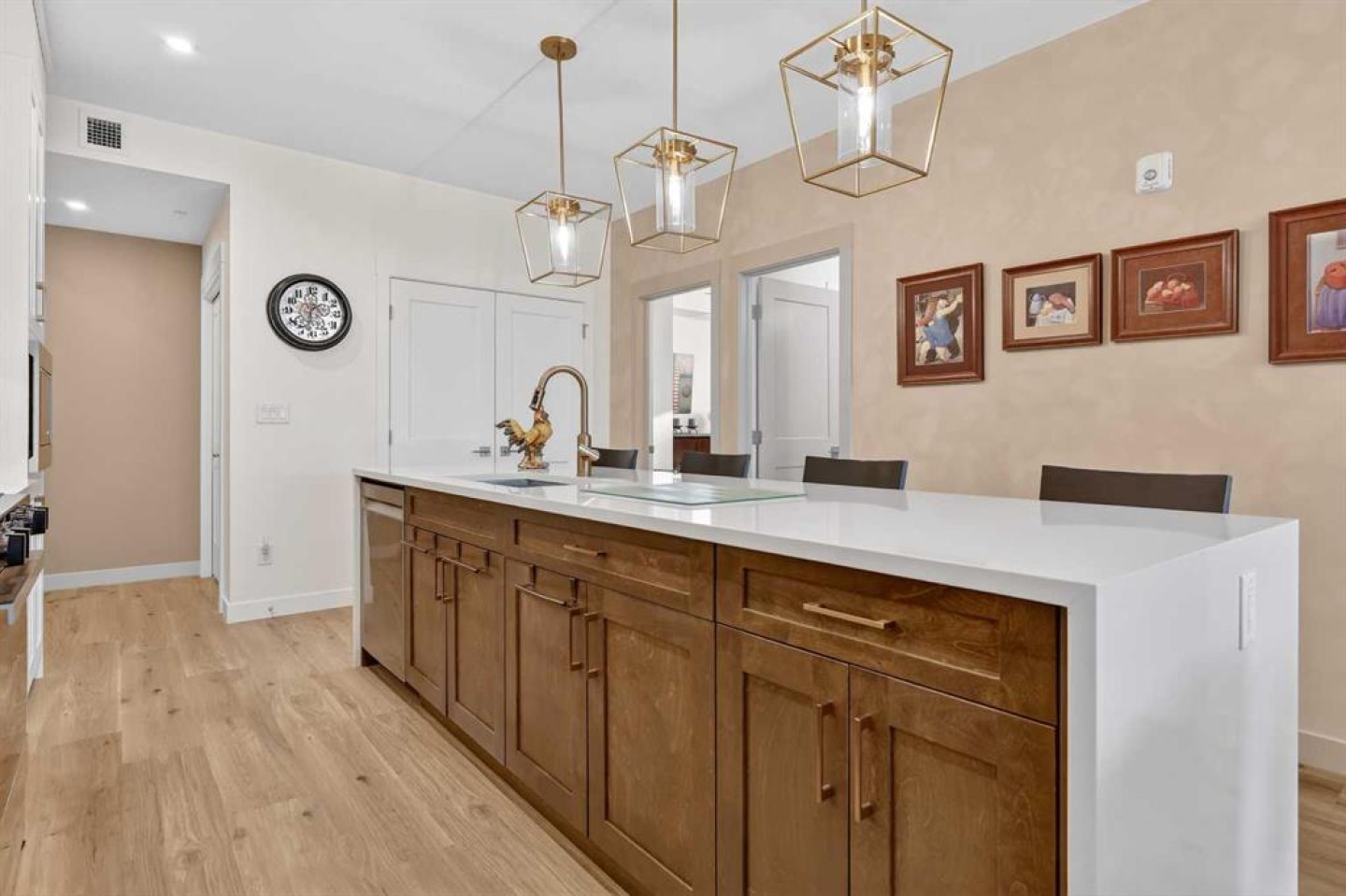 ** NEW LISTING ** Waterside Mahogany - Third Floor Corner Model "Atwood 3" with Courtyard Views - Quick Possession!! Unbelievable VALUE & DESIGN! This superb air-conditioned condo offers two bedrooms, two bathrooms, a titled indoor tandem parking stall (2 cars), extra tall windows, south exposure, a 160 SF covered balcony, and high 9' ceilings. Many Designer Value Added features ... Check and Compare; 974 RMS sq. ft. of luxurious living space. Loaded with extras... Luxury wide plank engineered flooring, upgraded lighting and plumbing fixtures, dual pane Low-E windows, wide patio door, modern white painted casings, doors & baseboards, white decora light switches, convenient laundry with storage & stacked washer/dryer. High-end stainless steel appliance package: fridge with freezer below, built-in microwave, smooth top electric cooktop, and quiet Energy Star-rated tall tub dishwasher. Upgraded Kitchen cabinets with tall upper doors + soft-close drawers + extra floor cabinets + mouldings with under-cabinet lighting, white quartz island countertops, undermount dual-basin stainless steel sink, full-height quartz backsplash, pull-out kitchen faucet, dramatic centre island with waterfall ends, flush eating bar, and room to sit 4. BONUS features: California closet built-in canisters, electric fireplace, and assigned storage locker! BUILDING INFO: latest in acoustic attenuation technology, including Sonopan panelling, combined with real-world testing to achieve best-in-class results. Acoustic Shield 2.0 helps create a calm, peaceful environment where life’s best moments thrive, because every home deserves comfort and connection without the noise. ERV - Advanced Ventilation System - This energy-efficient technology is designed to draw fresh air from outside, filter it, warm it (as needed), and circulate clean air into your home, exhausting the old. In every individual condo. Plus, a supersized front foyer and private entry! Mahogany is Calgary’s premier four-season lake community, centred around a stunning 63-acre freshwater lake and 22 acres of private beachfront. Residents enjoy exclusive access to swimming, kayaking, paddleboarding, fishing, skating, and year-round community events, all just steps from home. The award-winning Mahogany Beach Club offers recreation facilities, picnic areas, fire pits, playgrounds, and gathering spaces designed to bring neighbours together. Winding pathways, parks, and wetlands create a welcoming outdoor lifestyle, while nearby schools, transit, and major roadways provide everyday convenience. At the heart of the community, Mahogany Village Market features grocery, dining, cafés, fitness, and professional services—making it easy to live, work, and play close to home. Thoughtfully designed streetscapes, diverse housing options, and a strong sense of community make Mahogany one of Calgary’s most desirable places to live.