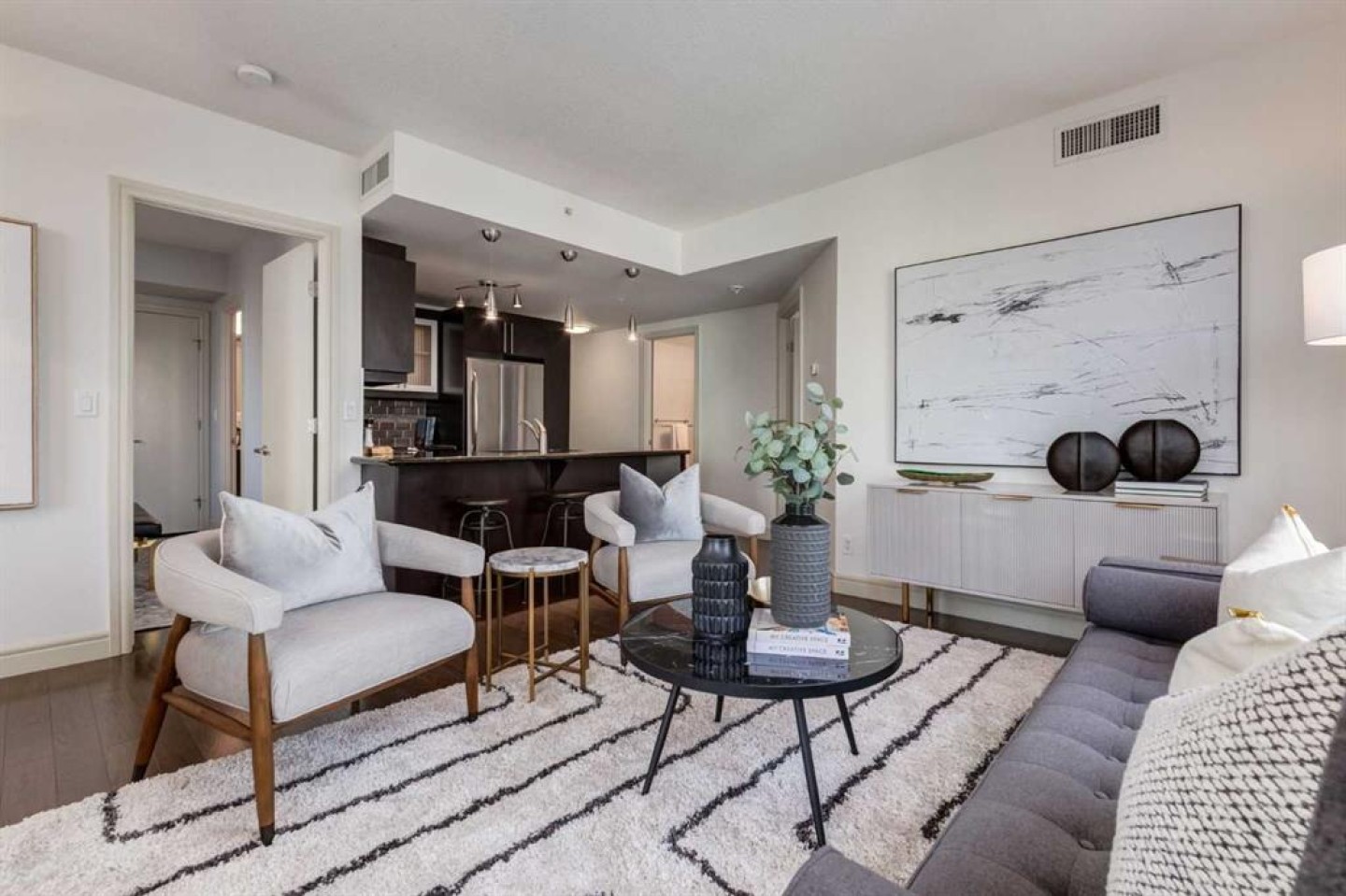 Bright, quiet, and impeccably positioned on the 5th floor, this nearly 900 sq ft corner suite offers a refined urban lifestyle in one of Calgary’s most sought-after inner-city locations. Featuring two bedrooms and two full bathrooms, the home strikes a rare balance between downtown energy and everyday tranquility, sitting just steps from the excitement of 17th Avenue while staying thoughtfully set back from the bustle of city life. Living here means embracing a truly walkable lifestyle. Start your mornings with coffee from a nearby café, pick up groceries or fresh produce just around the corner, or head to your favourite yoga studio or boutique gym, all without ever needing your car. Commuting is effortless, whether you work downtown, attend meetings across the core, or rely on nearby transit routes for easy access throughout the city. In the evenings, stroll to award-winning restaurants, lively patios, cocktail lounges, and local boutiques, then return home to a peaceful retreat elevated above the street. Inside, the open-concept layout is flooded with natural light thanks to floor-to-ceiling windows and a desirable corner orientation. Hardwood floors, central air conditioning and heating, in-suite laundry, and a thoughtful split-bedroom design create a space that feels both stylish and highly functional. The primary bedroom offers excellent privacy with a generous closet and a well-appointed ensuite, while the second bedroom and full bathroom are ideally positioned for guests, roommates, or a dedicated home office. Step onto the private balcony off the living room and enjoy your own outdoor space, complete with a gas BBQ hookup…perfect for relaxed evenings, summer grilling, or entertaining friends before heading out on 17th Ave. The home also includes titled underground parking and a separate storage locker, adding everyday convenience and peace of mind. The Montana is a standout building in Calgary’s urban landscape, known for its timeless architectural design and quality concrete construction that provides superior soundproofing and long-term value. Residents enjoy a low-maintenance, luxury lifestyle with a 7-day concierge, a newly updated fitness centre, and condominium fees that include heat, water, insurance, and more. Beautifully maintained and move-in ready, this residence is ideal for professionals, downsizing, or urban enthusiasts seeking sophisticated downtown living without compromise. This is a home that truly complements the vibrant, connected lifestyle that downtown Calgary is known for.