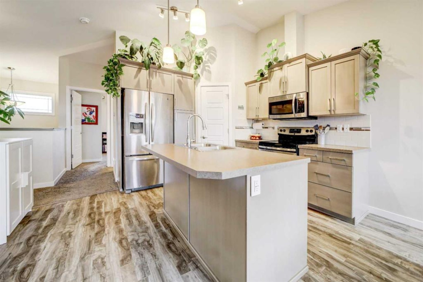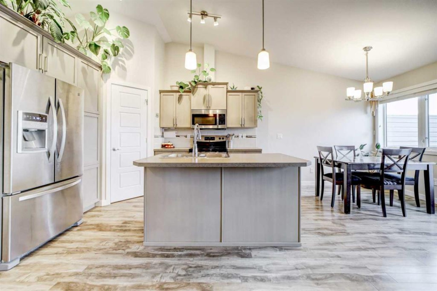 Inside, you’ll love the bright bi-level layout. The main living area features vaulted ceilings and an open-concept kitchen with an island and large pantry, seamlessly connected to the dining and living room. The main floor also offers one bedroom with generous closet space and a full four-piece bathroom. Downstairs, you’ll find a dedicated laundry/utility room, additional storage, and two bedrooms, including a spacious primary bedroom with a walk-in closet and direct access to the full bathroom, which also features a second entrance from the hallway. The thoughtful lower-level layout makes this home an excellent fit for first-time buyers, small families, or investors seeking a solid revenue property, and central air conditioning adds year-round comfort.
