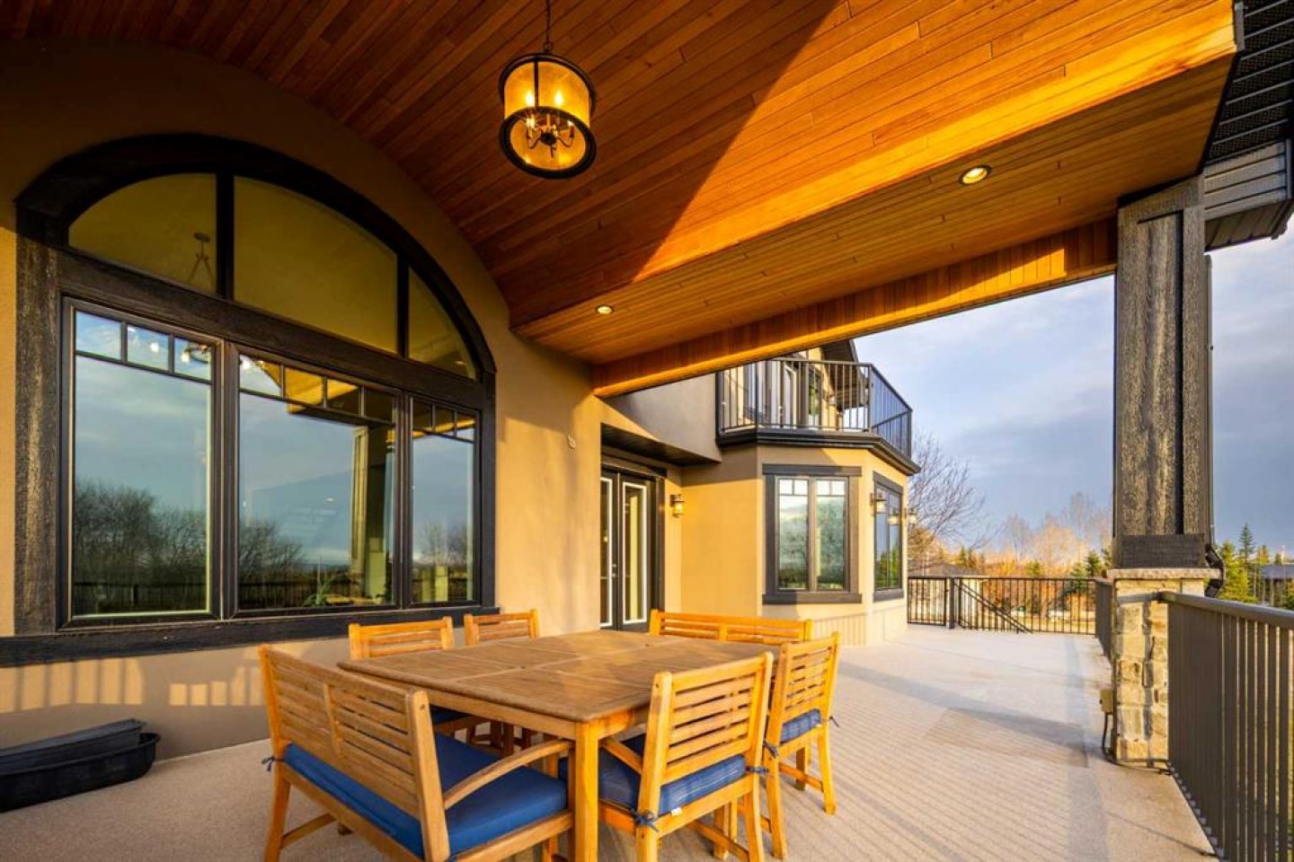 Located in prestigious Grandview Estates on a prime Southwest-facing lot with breathtaking Rocky Mountain views, this impressive custom-built estate offers over 8,500 square feet of exceptionally designed living space executed by renowned builder Maillot Homes. Recently refreshed with an updated color palette, the home feels modern, bright, and move-in ready. Featuring one of the largest residential solar installations in Canada, this property combines remarkable energy efficiency with luxurious family living. A grand barrel-vaulted ceiling feature welcomes you inside, where expansive living and dining areas are connected by a striking two-sided fireplace and framed by oversized windows that flood the space with natural light. The gourmet kitchen is truly the heart of the home, offering dual oversized islands, top-of-the-line Wolf & Sub-Zero appliances, abundant cabinetry, and a sun-drenched breakfast nook that opens onto the southwest deck — perfect for casual family meals or elegant entertaining. Designed for gathering and memory-making, the residence features an incredible indoor saltwater pool and hot tub oasis, an inviting media room for movie nights, and a wine room. A lower-level secondary kitchen, expansive rec room, and direct access to the pool area complete the walkout basement, where comfort meets entertainment at every turn. Thoughtful architectural details include an elevator providing access to all levels as well as the garage, ensuring long-term accessibility. A custom-built, handicap-accessible Jack and Jill bathroom on the lower level features a curb-less shower and a wheelchair-friendly sink, an oversized four-car garage with dog wash and RV bay, and an abundance of strategically placed skylights enhancing the natural light throughout the home. The upper level offers a bonus room suite with a private bedroom and full ensuite, perfect for guests or extended family. The primary retreat is a true sanctuary, featuring a private balcony with unobstructed Southwest views, a romantic two-sided fireplace, and a spa-like ensuite with in-floor heating and a large walk-in closet. A dedicated study loft with built-in desks provides a quiet workspace for students or remote work needs. The walkout level is equally impressive, offering two additional bedrooms, a change room with full bathroom for pool guests, a second laundry area, and expansive entertaining spaces that open seamlessly to the outdoors. The fully landscaped outdoor areas include an expansive Southwest deck, a lower walkout patio, a fenced dog run, invisible pet fencing, and a cozy firepit area, making this property as functional as it is beautiful. With Calgary’s top private schools and an abundance of retail shopping within a ten-minute drive, this property is ideally suited for families looking for privacy paired with convenience. This extraordinary residence is a true legacy property, offering an unparalleled lifestyle just minutes from city conveniences.
