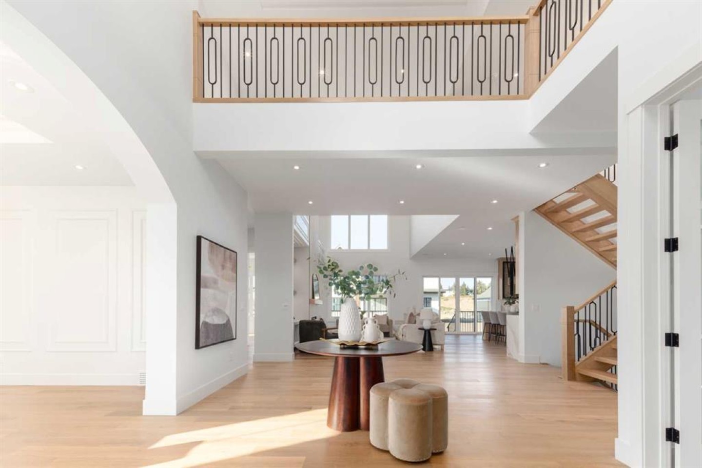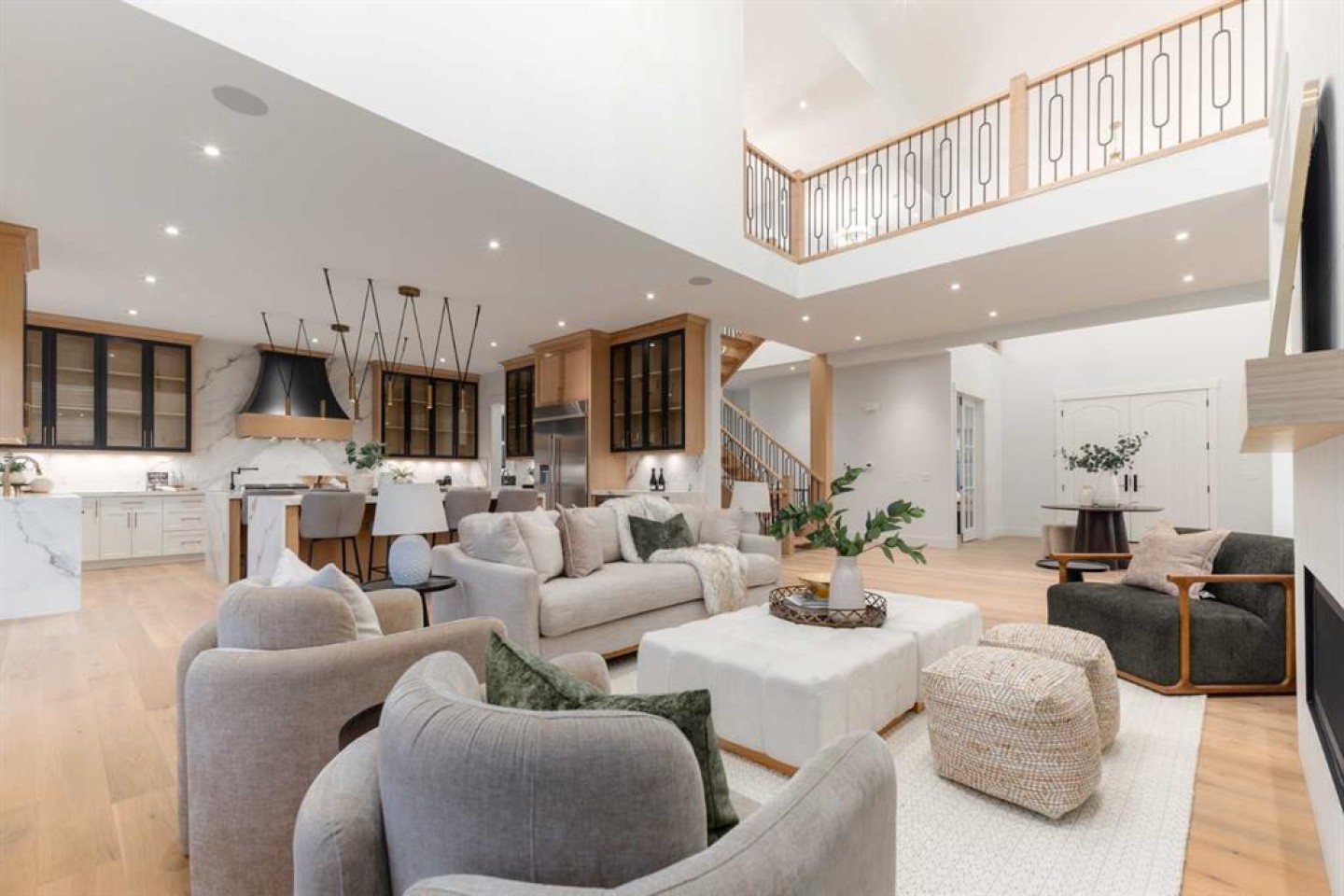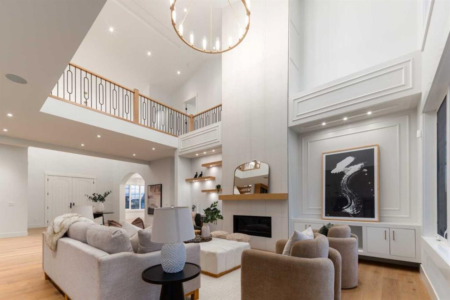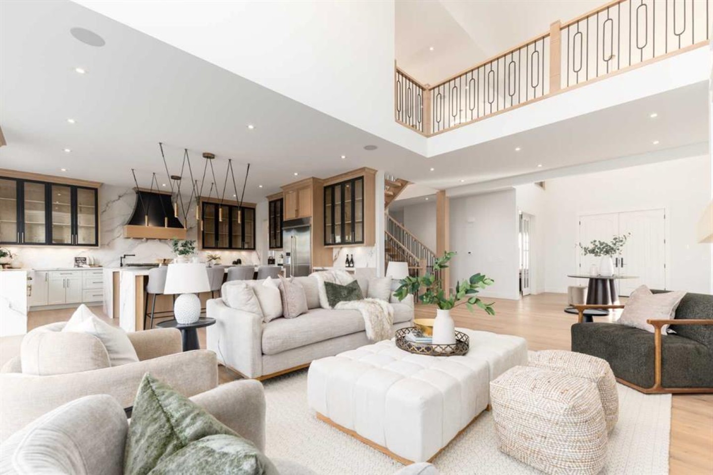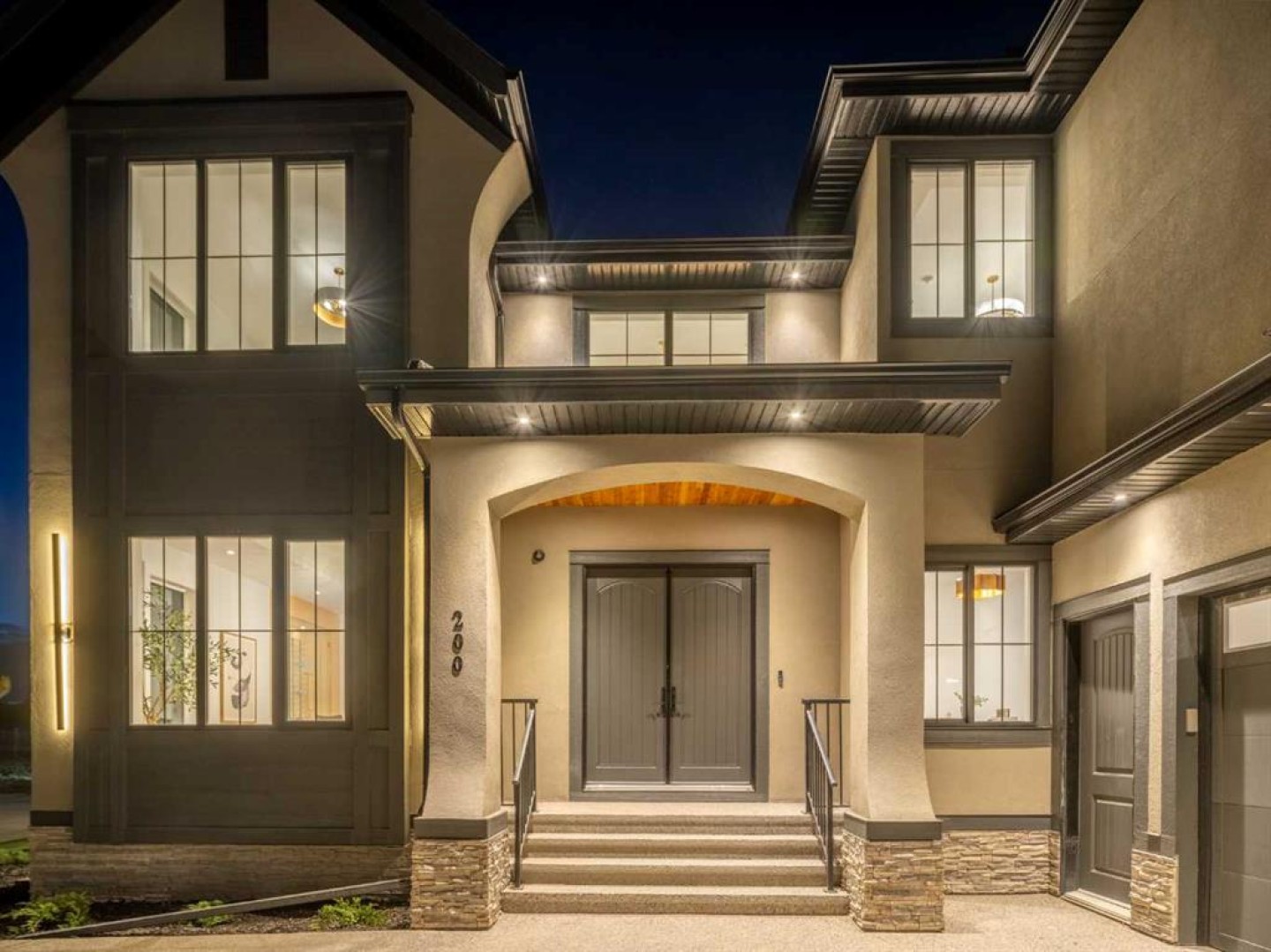 Discover the epitome of luxury living at 200 Pondside Place, an extraordinary 7-bedroom, 6.5-bath estate in the prestigious community of Watermark at Bearspaw. Designed with families in mind, this home combines architectural elegance with modern functionality across nearly 6,800 sq ft of developed space. A striking façade of smooth stucco, black wood accents, and stone detailing sets the tone, while a four-car garage and exposed aggregate driveway provide both practicality and curb appeal. Inside, soaring ceilings, wide-plank oak floors, and expansive windows create a light-filled atmosphere that is as welcoming as it is refined.