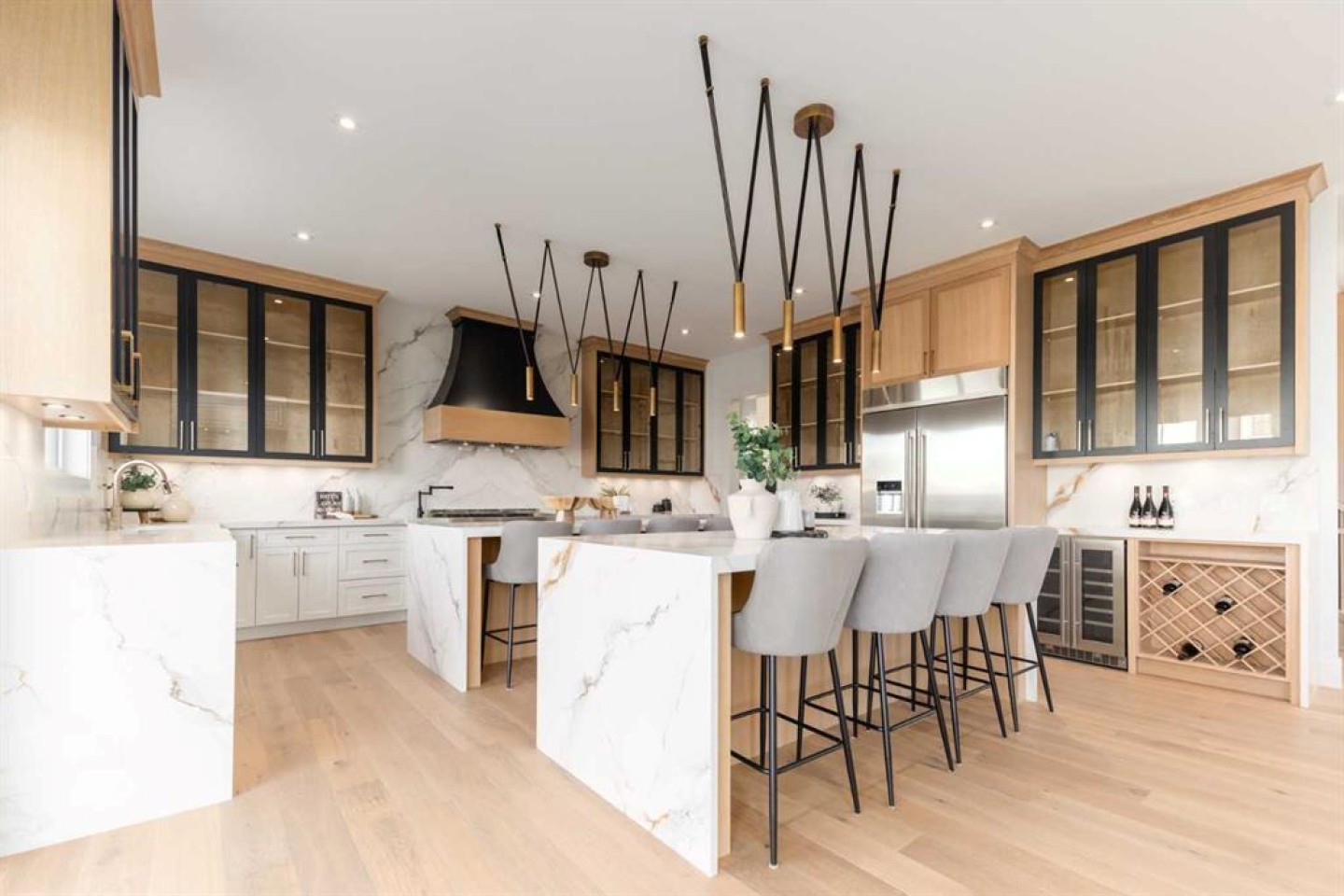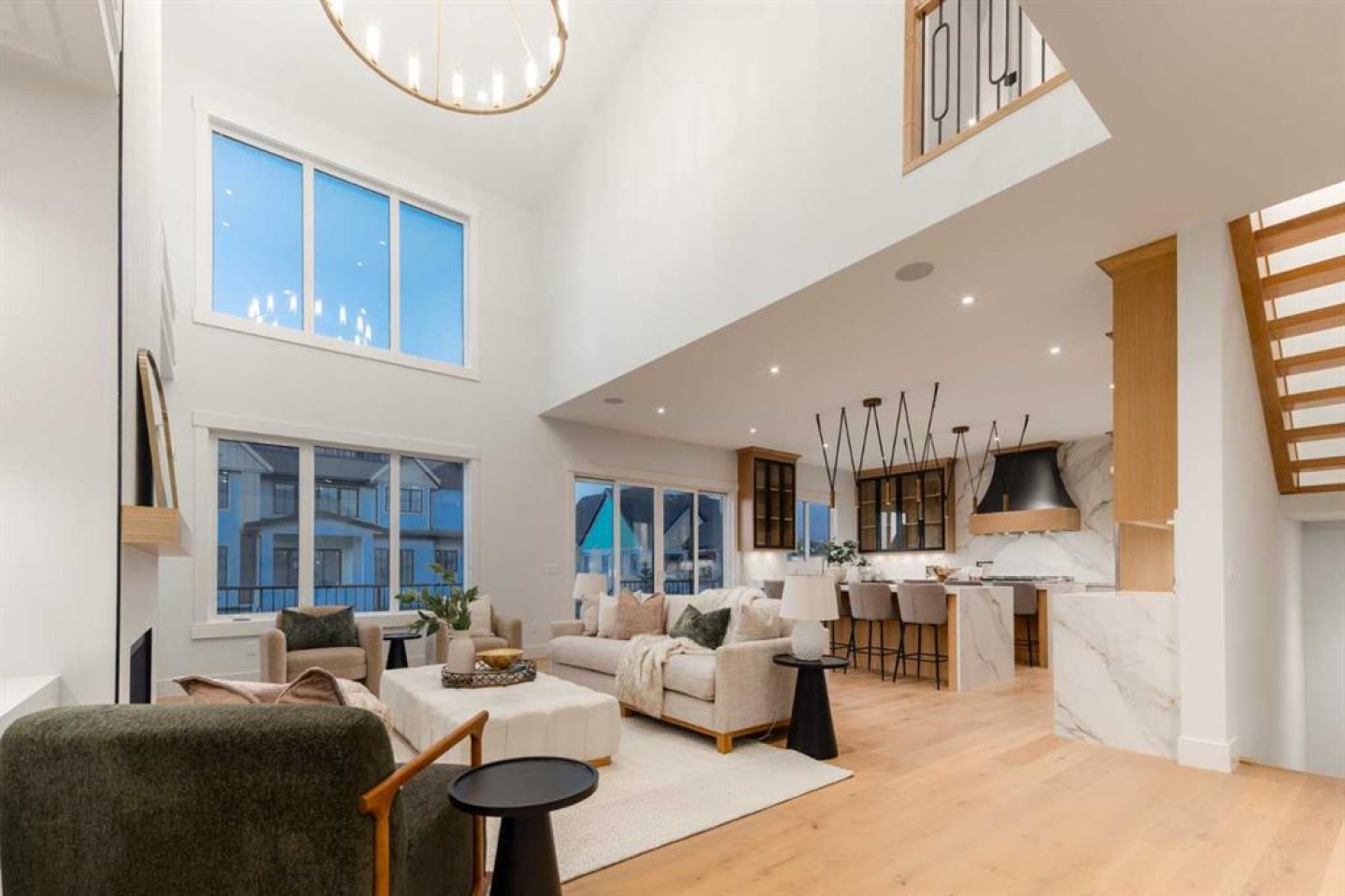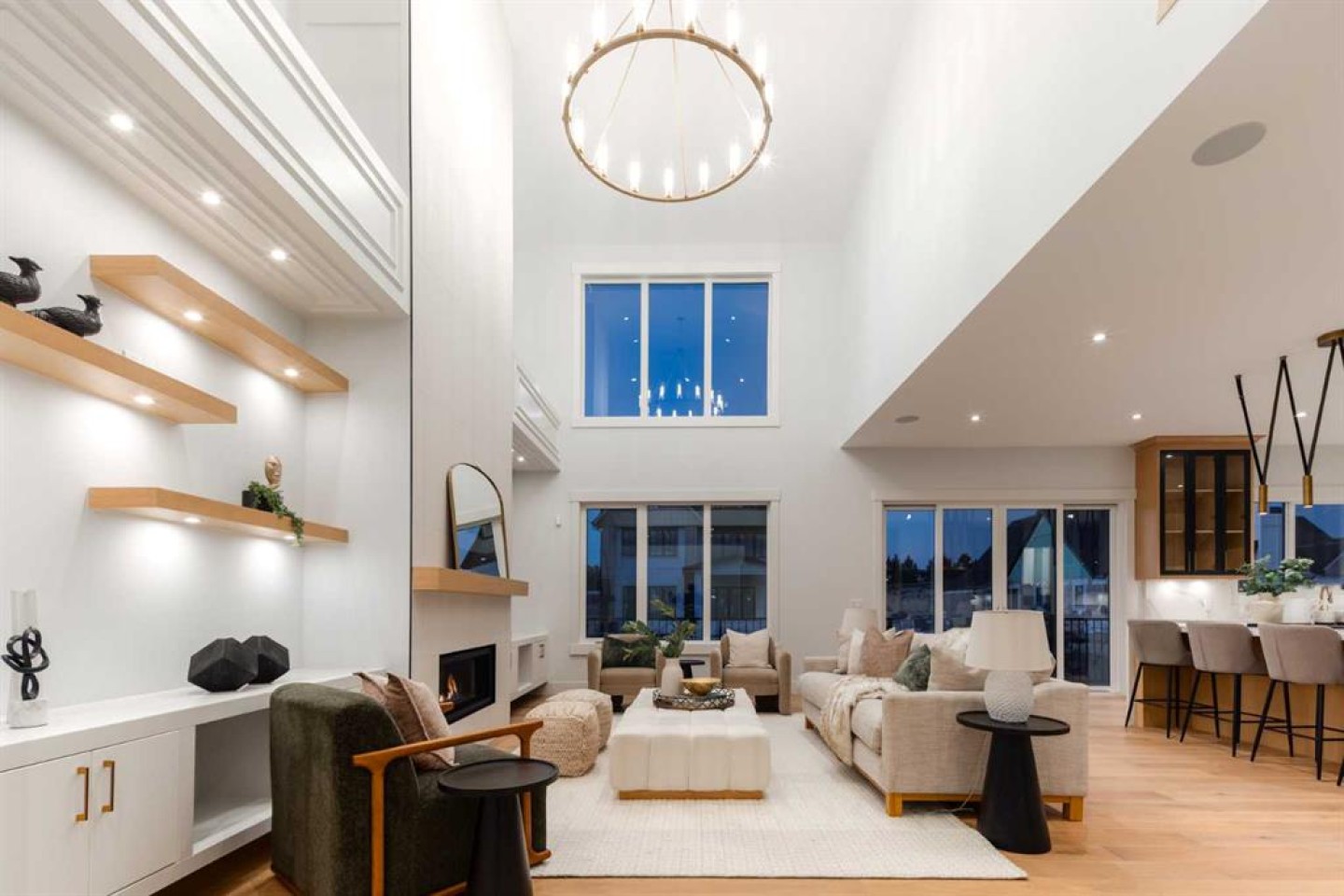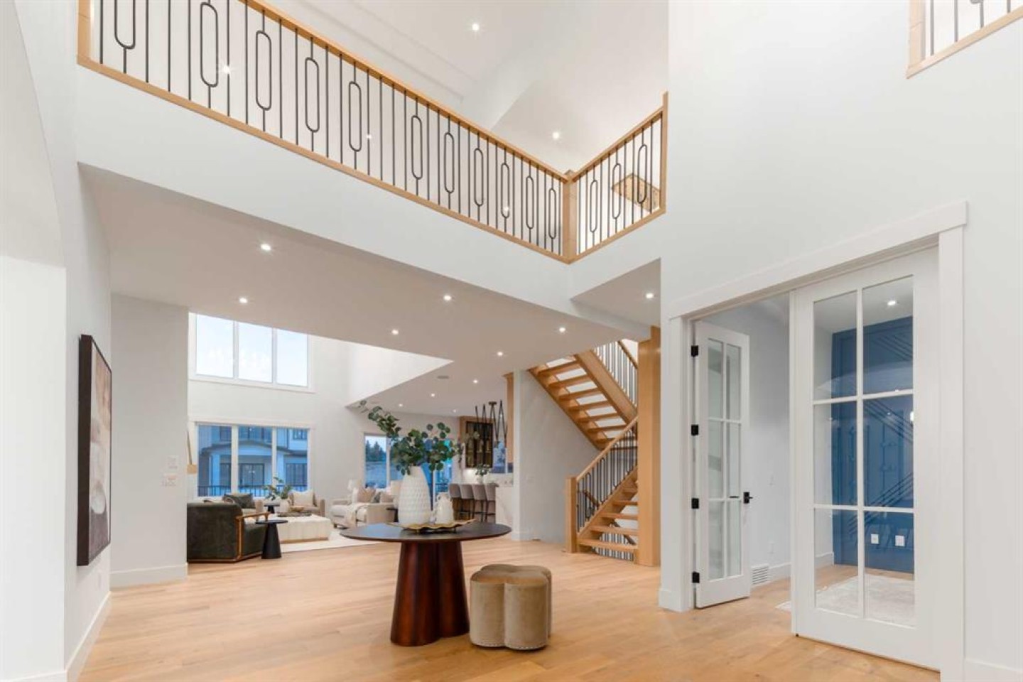 Discover the epitome of luxury living at 200 Pondside Place, an extraordinary 7-bedroom, 6.5-bath estate in the prestigious community of Watermark at Bearspaw. Designed with families in mind, this home combines architectural elegance with modern functionality across nearly 6,800 sq ft of developed space. A striking façade of smooth stucco, black wood accents, and stone detailing sets the tone, while a four-car garage and exposed aggregate driveway provide both practicality and curb appeal. Inside, soaring ceilings, wide-plank oak floors, and expansive windows create a light-filled atmosphere that is as welcoming as it is refined.