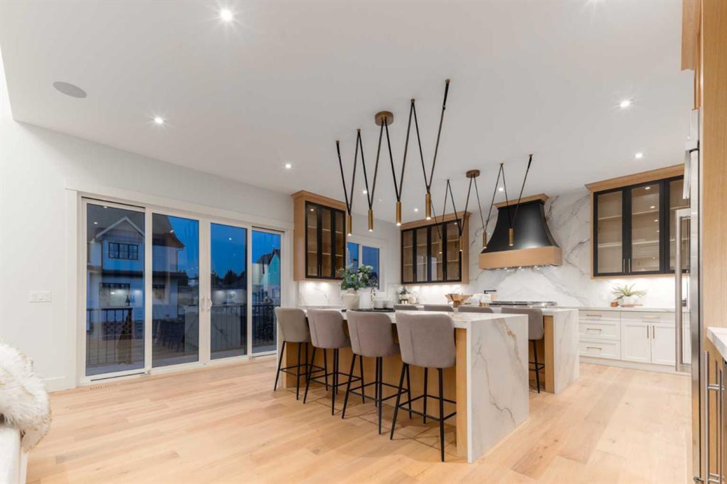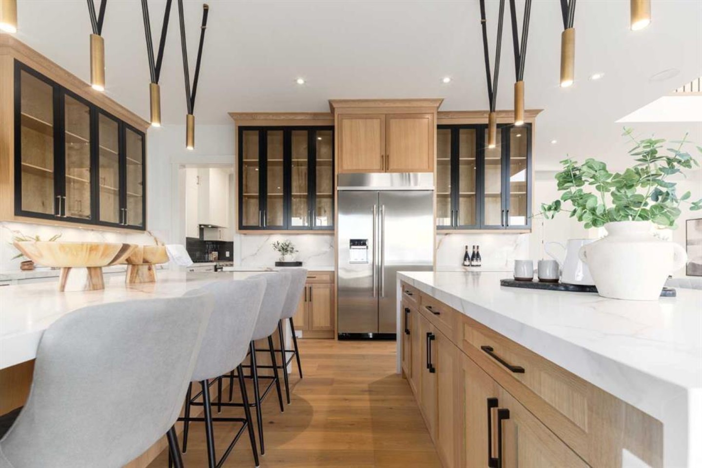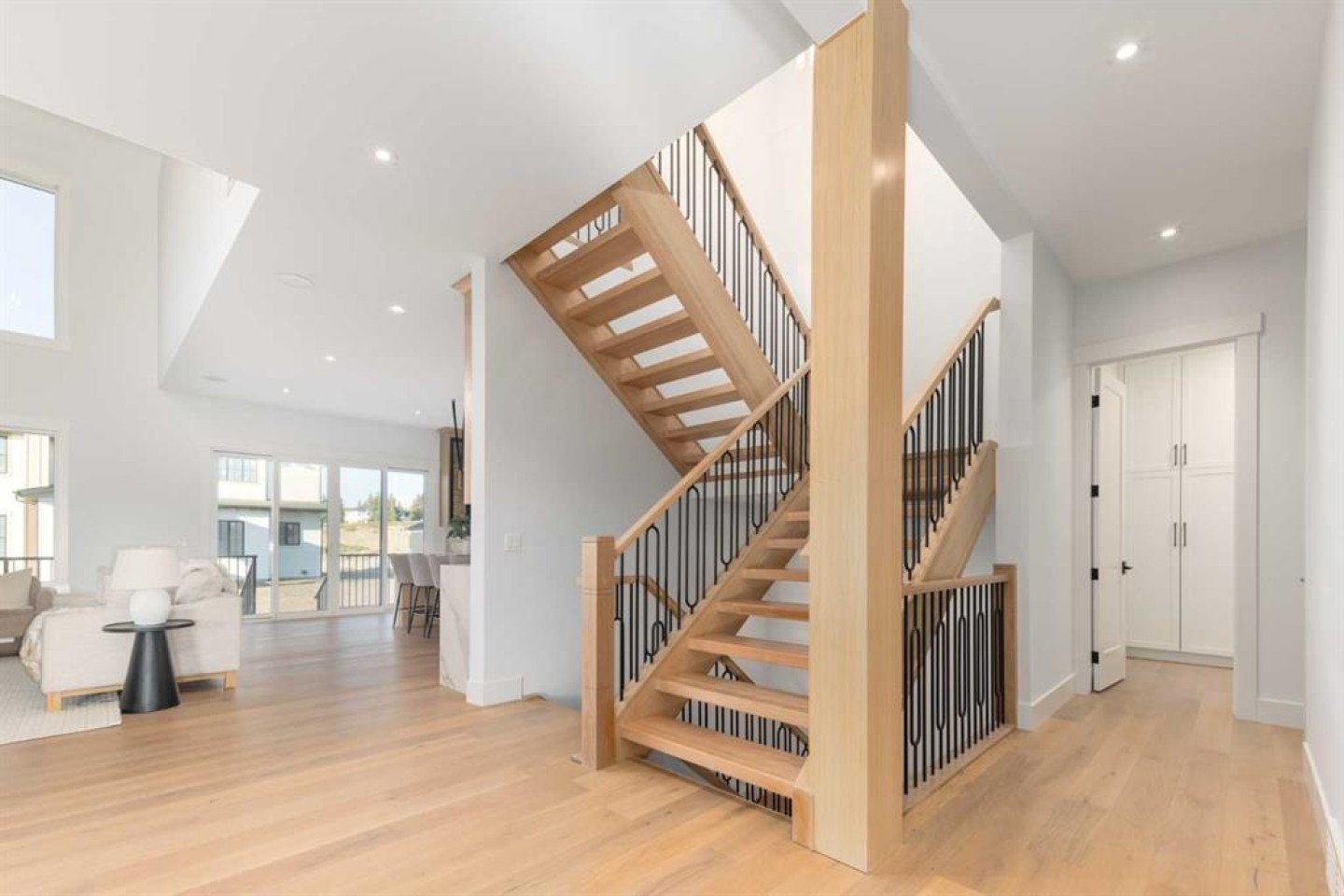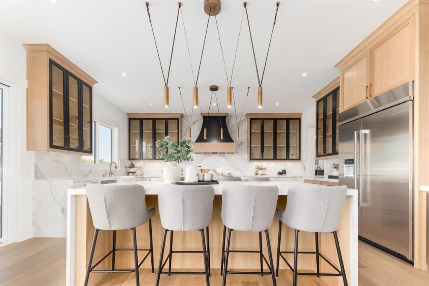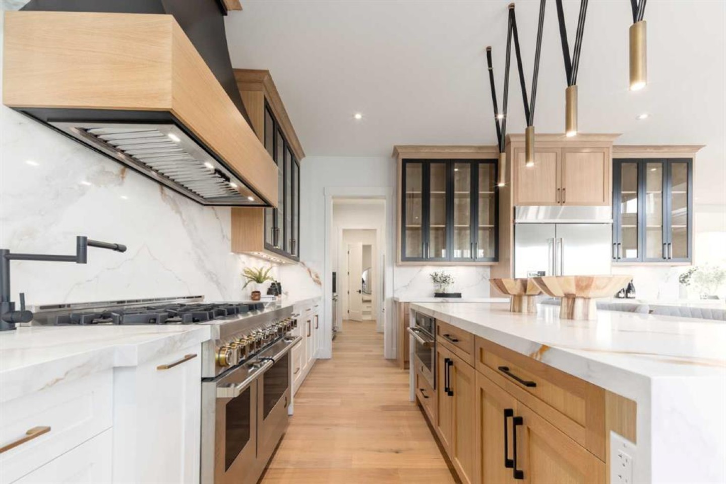 Discover the epitome of luxury living at 200 Pondside Place, an extraordinary 7-bedroom, 6.5-bath estate in the prestigious community of Watermark at Bearspaw. Designed with families in mind, this home combines architectural elegance with modern functionality across nearly 6,800 sq ft of developed space. A striking façade of smooth stucco, black wood accents, and stone detailing sets the tone, while a four-car garage and exposed aggregate driveway provide both practicality and curb appeal. Inside, soaring ceilings, wide-plank oak floors, and expansive windows create a light-filled atmosphere that is as welcoming as it is refined.