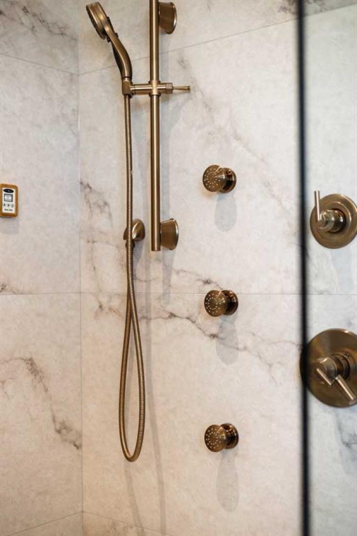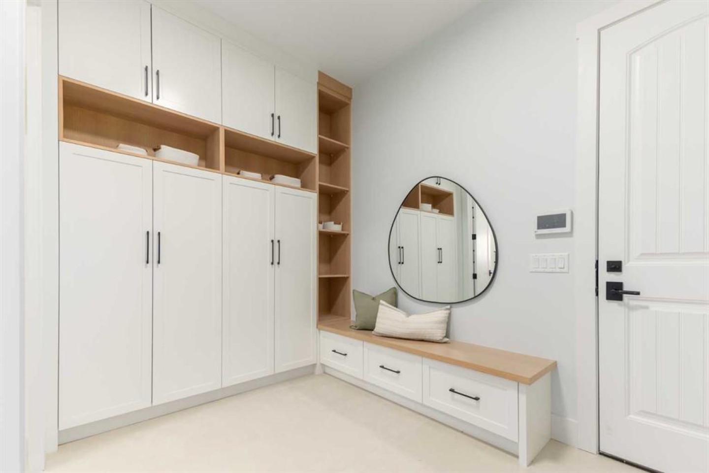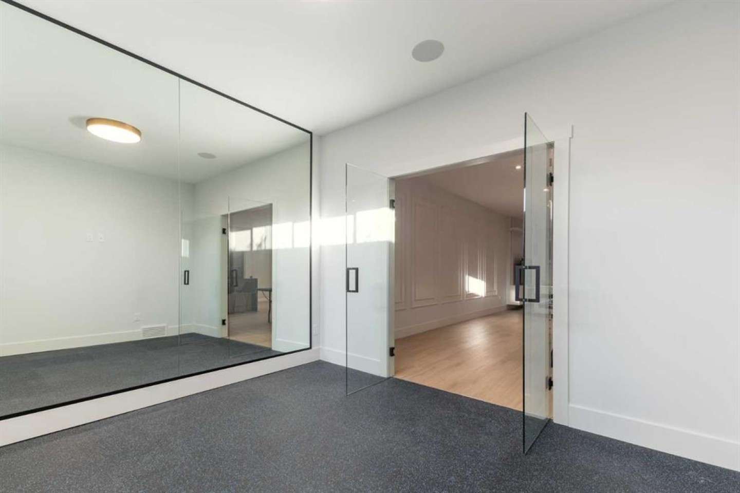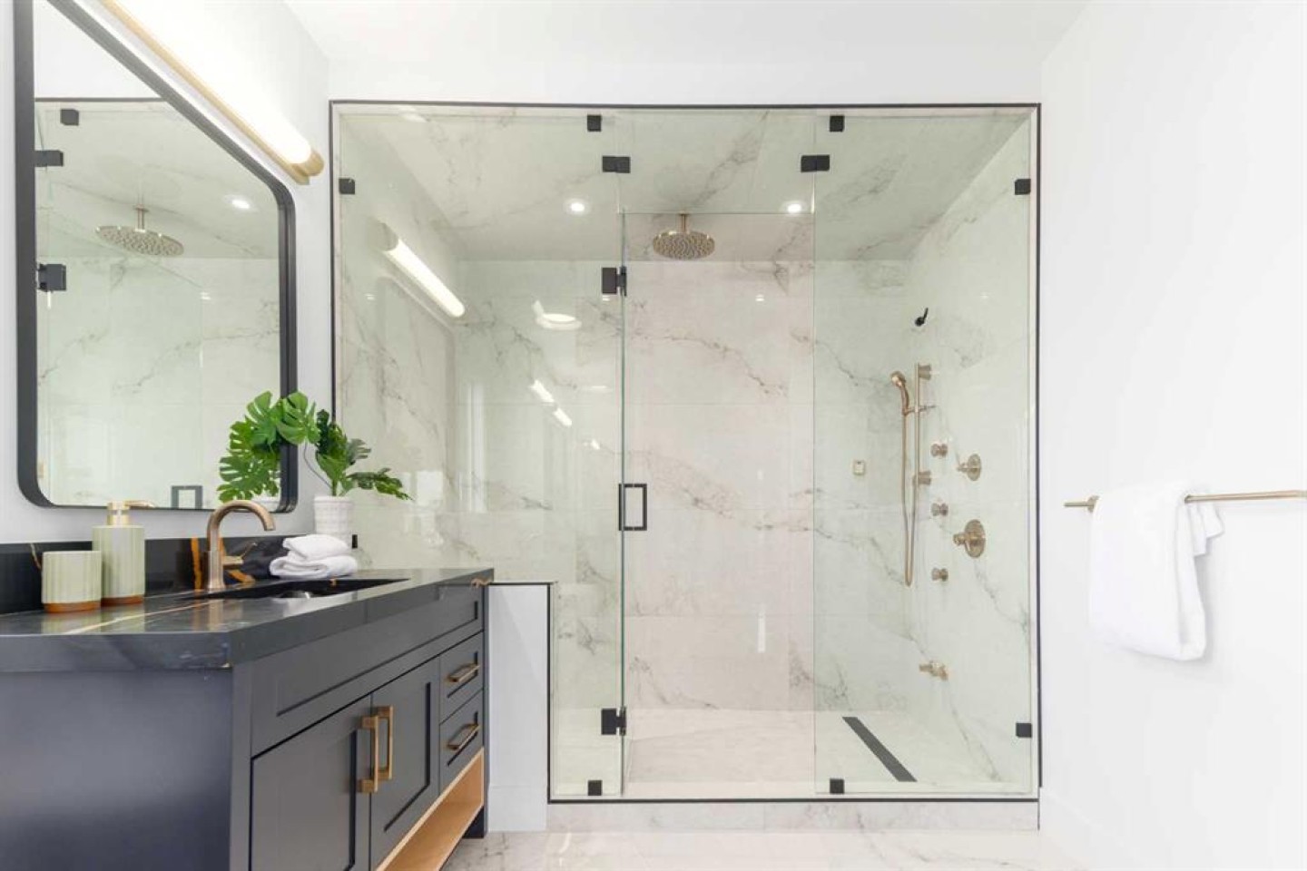 Upstairs, the primary suite is a serene retreat with a boutique-style walk-in closet, spa-inspired ensuite with soaking tub and rainfall shower, and space for private lounging. Three additional bedrooms each feature their own ensuite and walk-in closet, while a flex loft/media space and a fully outfitted laundry room complete the level. The lower level is designed for recreation and relaxation, offering a spacious rec room with wet bar, fitness studio, plush theater room, and two additional bedrooms. Radiant in-floor heating throughout the lower level ensures year-round comfort. Set on a beautifully landscaped 0.28-acre lot, this home includes speaker zones, central vac, gas BBQ hookup, gas garage heater and smart-home rough-ins for modern living. Beyond the property, Watermark is one of Calgary’s most sought-after family communities, renowned for its strong sense of community, scenic pathways, and access to top schools and amenities. With nearby shopping, dining, recreation centers, and a quick drive into the city, it is the perfect balance of tranquility and convenience.