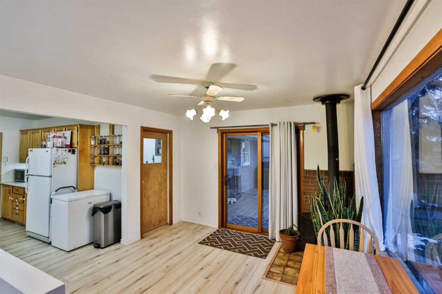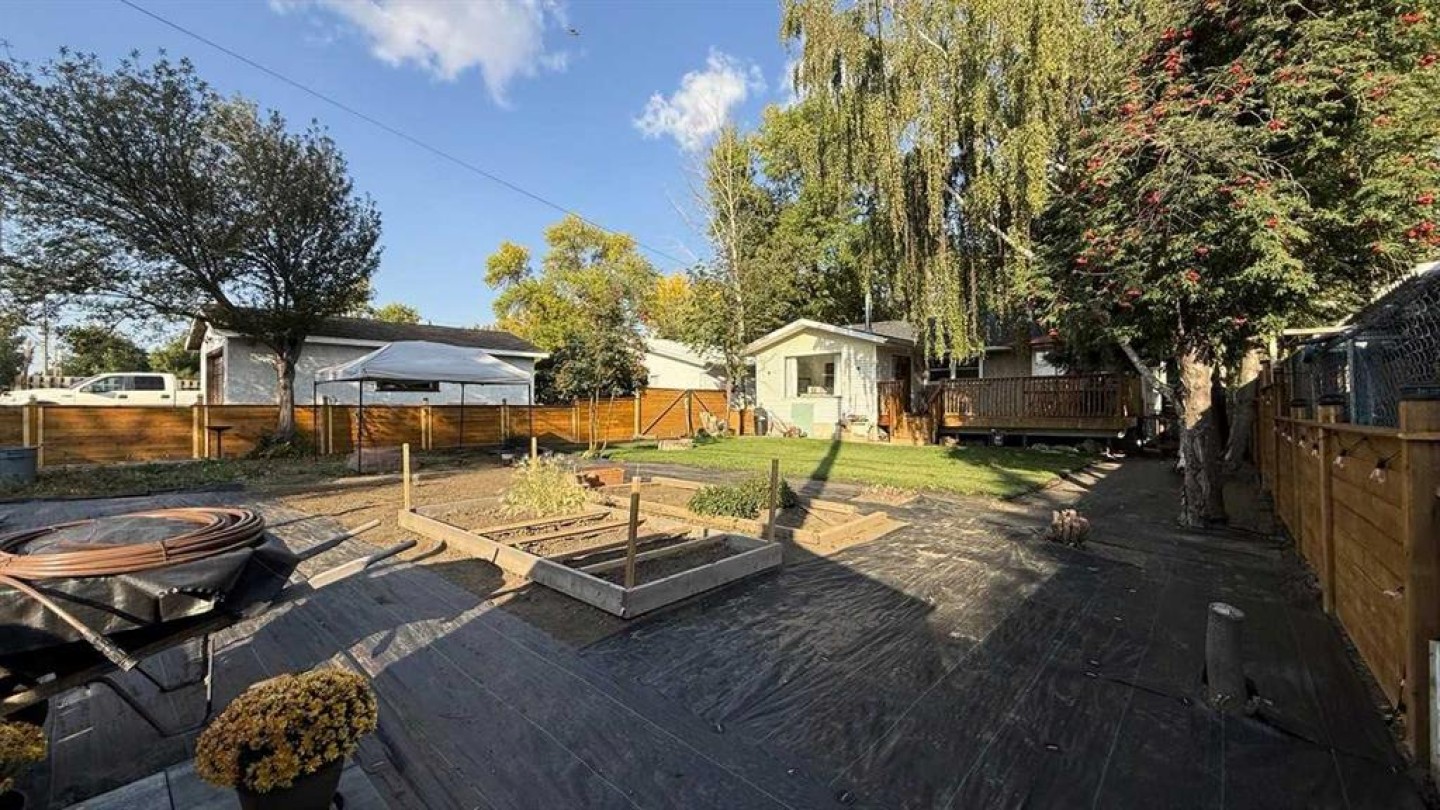 Welcome to this well-maintained bungalow situated on a generous 50’ x 120’ lot, surrounded by mature towering trees and featuring a large driveway. With over 1,100 sq. ft. of living space, this home offers four bedrooms and one full bathroom, all thoughtfully cared for over the years. As you enter the home, you’re welcomed by a spacious living room highlighted by a large front picture window overlooking the front yard. The living space flows seamlessly into the kitchen, which features cabinetry on both sides, updated laminate flooring, a new kitchen faucet, water filtration system, and a brand-new stainless steel dishwasher installed just weeks ago. Adjacent to the kitchen is the dining area, complete with a cozy wood-burning fireplace tucked into the corner. This bright space is filled with natural light and features a large picture window and sliding patio doors leading to a new expansive rear deck—perfect for entertaining or relaxing outdoors. The fully fenced backyard truly showcases the size of the lot and includes a shed (2022), fresh lawn and landscaping, edging, and weed barrier throughout the garden for easy maintenance. With rear alley access, there is excellent potential to build a future detached garage. Back inside, the main floor hosts three bedrooms and a full bathroom. Downstairs, you’ll find a fourth bedroom, laundry area, mechanical room, and future development potential in the remaining basement space. The basement walls have been newly insulated, and R-40 insulation has been added to the attic for improved efficiency. Additional updates include: New laminate floor/ baseboard in kitchen (2023), updated bathroom toilet, a new hot water tank (2025), new Samsung washing machine in 2024. The home was recently inspected in October of 2025, offering added peace of mind and potential savings for the next owner. If you’re seeking affordability and comfort in a charming small-town setting, Vulcan offers excellent amenities including an 18-hole golf course, newly renovated hospital, and a variety of restaurants and shopping options. Conveniently located just over an hour from both Calgary and Lethbridge, this welcoming community is one you’ll be proud to call home. Give your favourite REALTOR® a call to book a showing on this home.