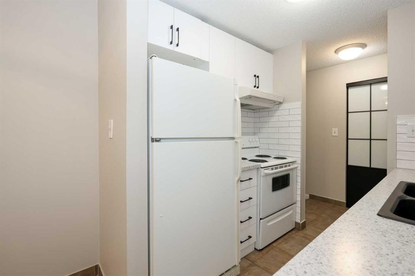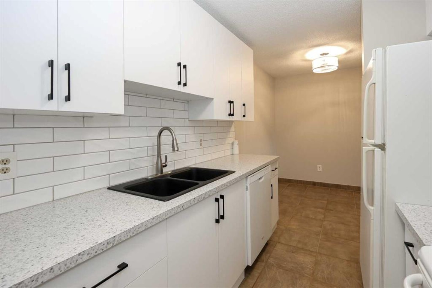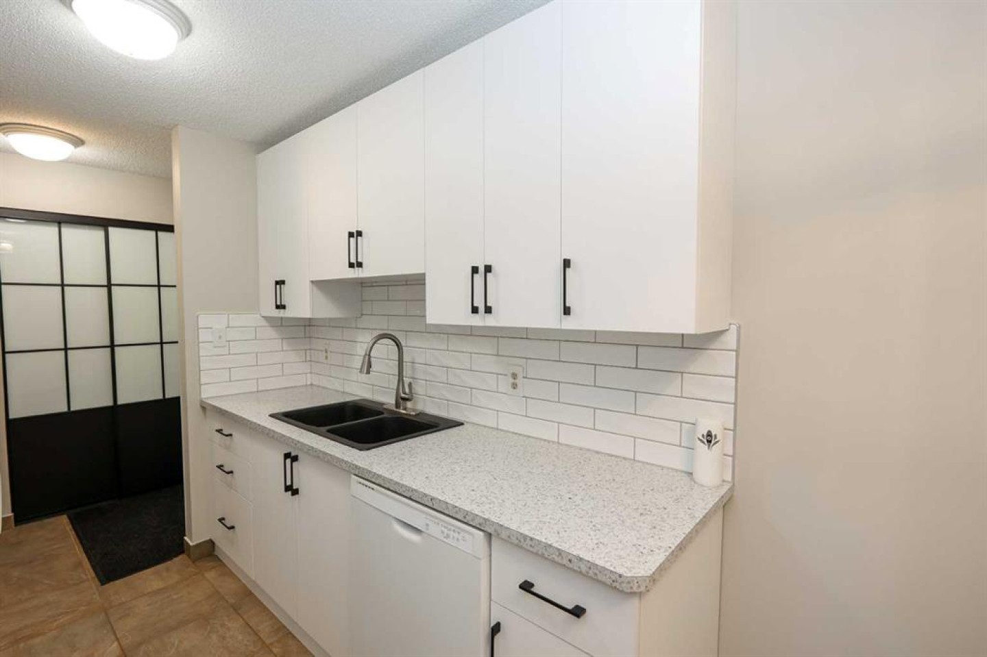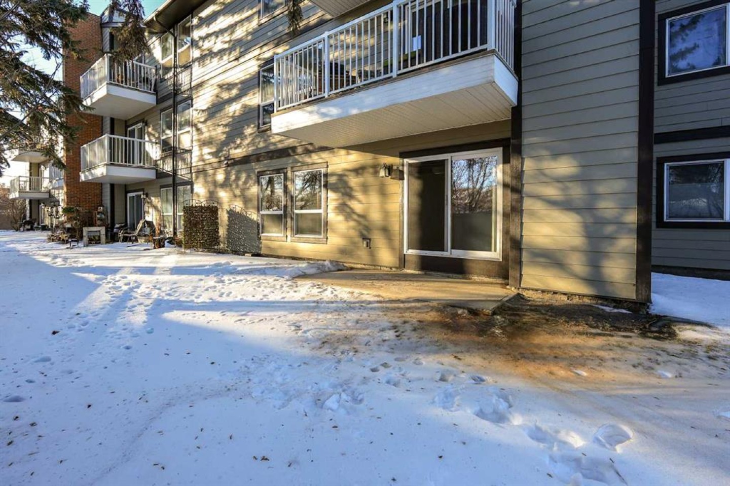 IMMEDIATE POSSESSION AVAILABLE ~ RENOVATED THROUGHOUT & MOVE IN READY ~ 2 BEDROOM, 1 BATHROOM MAIN FLOOR UNIT ~ LOW MAINTENANCE, ADULT LIVING (18+) ~ Recent updates include; new vinyl plank flooring throughout , neutral paint throughout, updated lighting, closet doors, hardware, kitchen cabinets, countertops, and backsplash ~ The living room features a corner fireplace with floor to ceiling stone, a raised hearth, and mantel, plus sliding patio doors to the covered patio ~ Outside the patio has plenty of space for outdoor furniture and overlooks mature trees with no neighbours behind ~ The dining space opens to the galley style kitchen with white shaker style cabinets, textured tile backsplash, granite composite sink with an updated faucet, and ample counter space ~ Two bedrooms are both a generous size and offer plenty of closet space ~ In unit stackable laundry is conveniently located next to the 4 piece bathroom that has tile floors and a soaker tub ~ Monthly condo fees are $492.62/month and include; Common area maintenance, heat, insurance, maintenance grounds, parking, professional management, reserve fund contributions, sewer, snow removal, trash, and water offering a low maintenance lifestyle ~ 1 assigned powered parking stall with ample visitor parking available ~ This well managed, quiet adult condo is located steps to wetlands and walking trails that connect to Red Deer's extensive Mackenzie trail system, with multiple schools, parks, playgrounds, transit and shopping all close by.