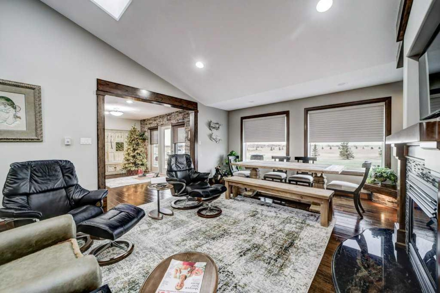 Elegantly updated and immaculately maintained, this beautifully designed bungalow offers refined acreage living on over 14 acres, just minutes south of Taber. From the moment you step inside, it’s clear this home has been thoughtfully curated by a seller with a true eye for design. Skylights flood the space with natural light, highlighting vaulted ceilings, rich hardwood and tile flooring, and striking architectural details including brick feature walls and a cozy gas fireplace. The heart of the home is both functional and inviting. The kitchen features ample cabinets, a walk in pantry and a space for a smaller, intimate dining table, perfect for everyday meals, while just around the corner, a dedicated dining area flows seamlessly into the main living room, ideal for hosting family and friends. A second sitting room provides an additional space to relax, visit, or unwind, creating a layout that feels open yet intentionally defined. Down the hall, you’ll find two comfortable bedrooms, a beautifully finished 4pc main bathroom, and a generous primary suite complete with a 4pc en-suite that includes a soaker tub. Main floor laundry add to the home’s everyday convenience. The basement is currently undeveloped, offering a blank canvas with excellent potential for future development. Outside, the property continues to impress. The yard is exceptionally well landscaped with exposed and stamped aggregate concrete, split rock accents, and a cedar deck—ideal for enjoying the peaceful surroundings. The attached oversized garage is heated with radiant heat, and multiple outbuildings, previously used for horses, offer versatility for hobbyists, storage, or future use. Adding significant value, the acreage includes services for a second dwelling or mother in law suite, complete with its own cistern and septic system, as well as extra acres for potential leasing and irrigation for the yard, enhancing both the functionality and long term potential of this exceptional rural property. There is also potential to subdivide if you desire fewer acres.