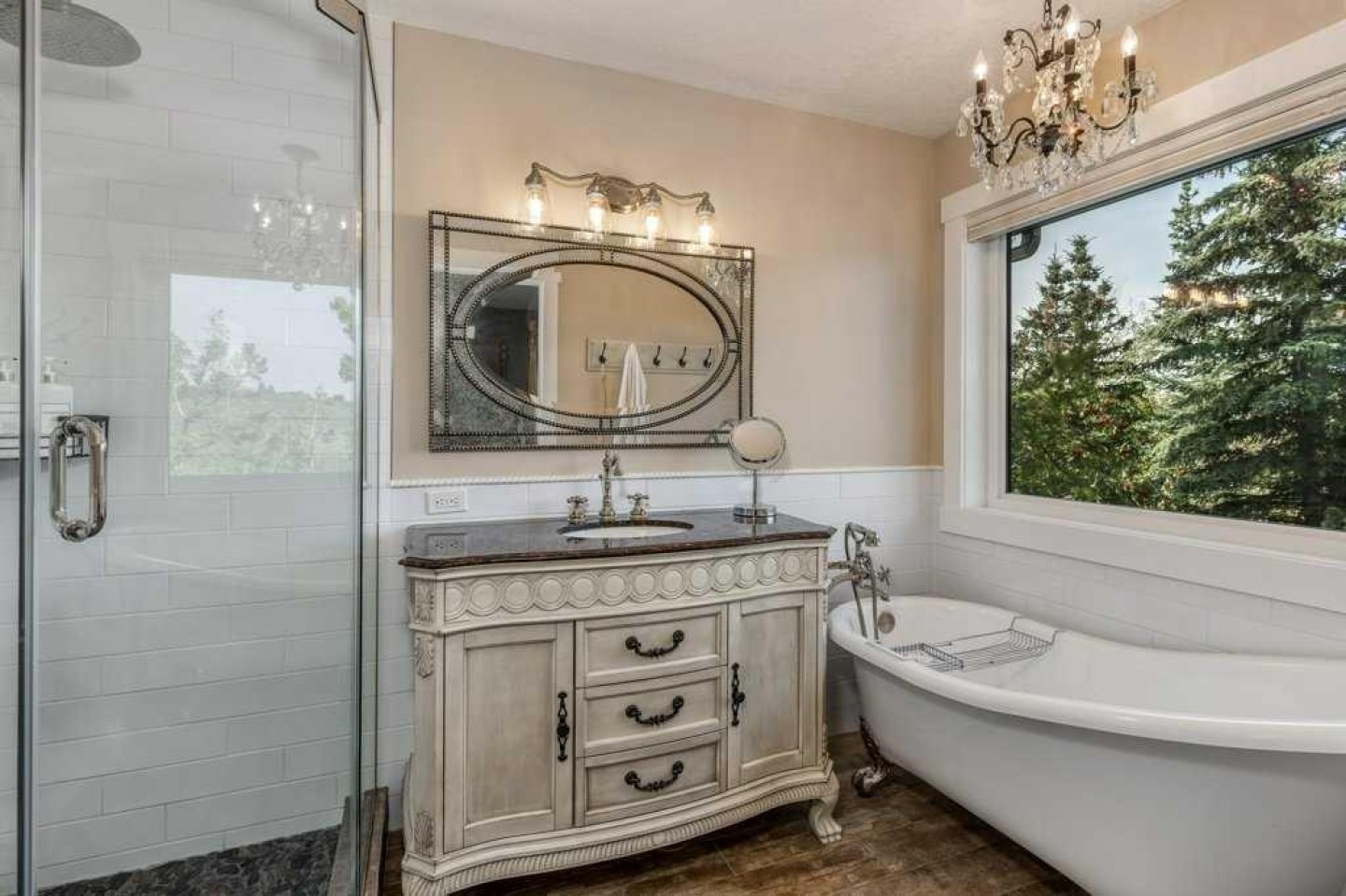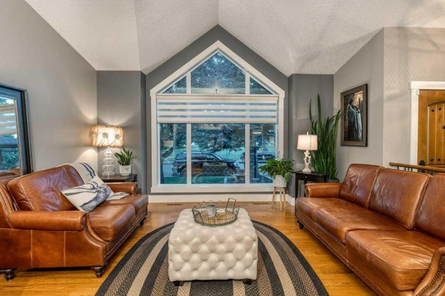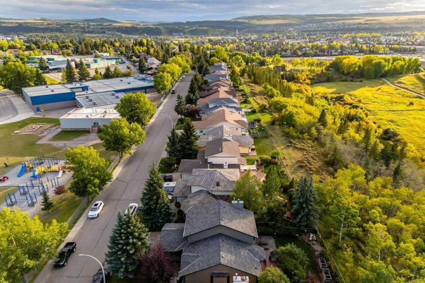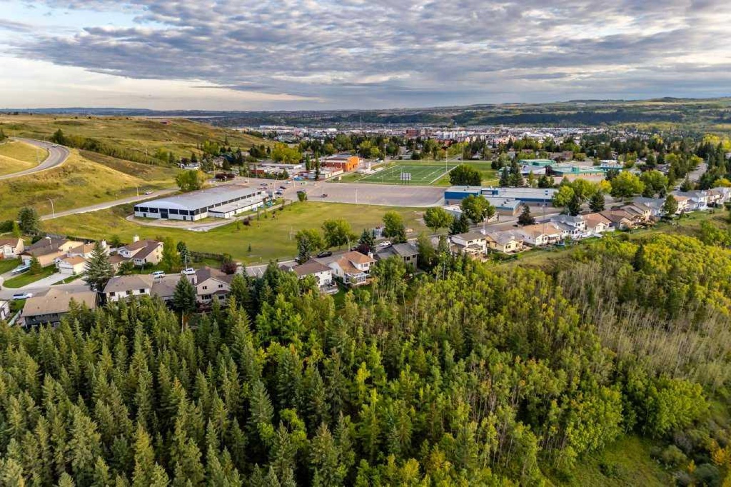 Discover a luxury lifestyle where quality, convenience and nature collide. This fully renovated family home is located directly across from the tri-schools and backs onto the historic Cochrane Ranche in the town's most sought-after community, Cochrane Heights. Exquisitely appointed, this home was completely transformed in 2014 and new shingles were just done in 2025. Its tasteful selections and high end finishes include a solid wood front door, oak hardwood and ceramic tile flooring throughout the main level. A vaulted ceiling spans the living room and formal dining area for a dramatic first impression. The kitchen boasts an upscale farmhouse esthetic with beaded panel shaker cabinets, a lit panel valence, granite perimeter counters, butcher block island with a vintage tin detail and a gorgeous apron front farm sink. There is a top of the line stainless appliance package including an induction stove and ample storage. A sunken family room is the perfect place to unwind in front of the wood burning fireplace (with gas assist) while taking in the beautiful views behind. Also on the main level is a cozy office with an elegant privacy window, while down the hall a practical powder room and laundry combo is appointed with tile wainscotting. Upstairs you will find three bedrooms, including the primary suite with its stunning mountain views, a walk-in closet and luxurious ensuite bathroom featuring a vintage inspired vanity, free standing shower, heated floors and incredible Victoria + Albert soaking tub. The main bathroom that serves the kids bedrooms includes granite counter top, subway tile around the bath/shower and heated tile floors. The basement is fully developed and includes fabulous built-ins and millwork including a pull down murphy bed. A generously sized 4th bedroom is ideal for guests who will love the exquisite bathroom with heated tile floors, a spacious steam shower with rain shower head and a bench seat. The outside of this home is equally as impressive with acrylic stucco and cedar accents, defining this home's presence and mountain inspired appeal. There is a fantastic exposed aggregate driveway with a poured concrete walkway that surrounds the house, providing both front and back patio areas to enjoy the birds singing and the rustling of the leaves in your yard. The heated garage has Swisstrax flooring and a man door to the side yard. This property is truly a gem offering an unparalleled level of privacy, access to recreation, schools and is walking distance to downtown. The extensive trail system behind the house connects all of Cochrane, through to the Big Hill Springs and a remarkable bird preserve area where nature lovers study this ecologically rich landscape. Don't miss your opportunity to own a move-in-ready home on one of Cochrane's most sought-after streets, thoughtfully designed for your family's enjoyment for years to come.