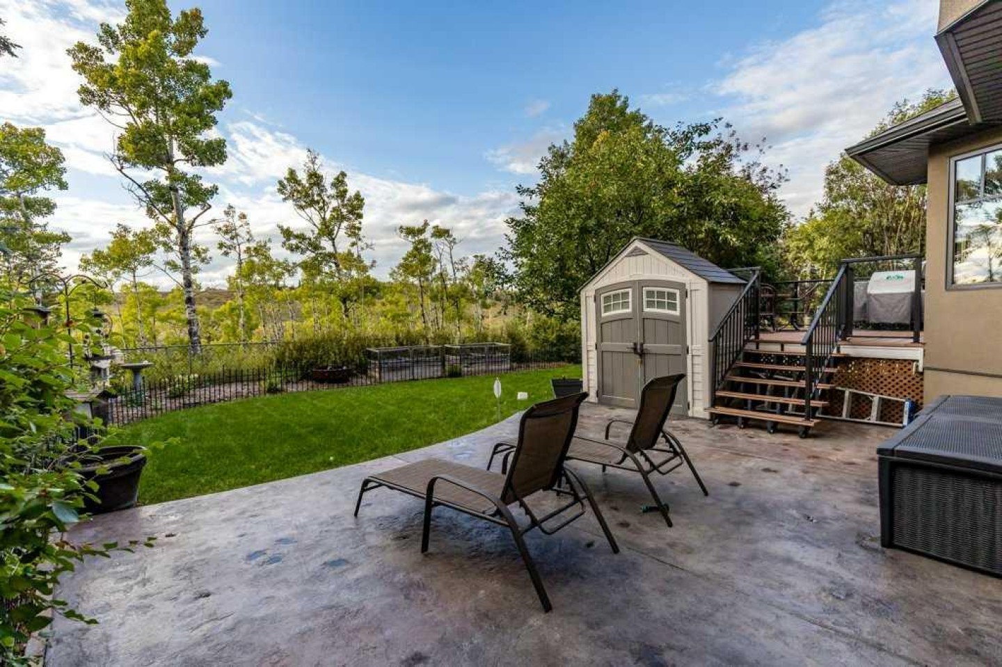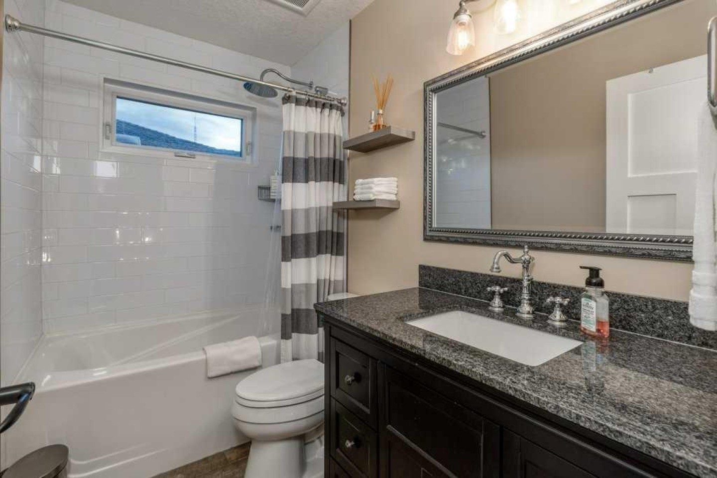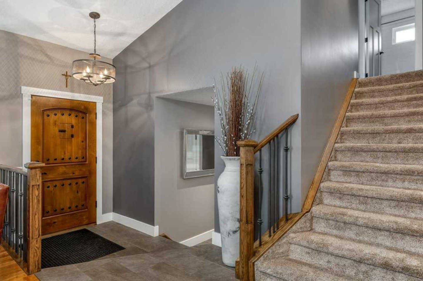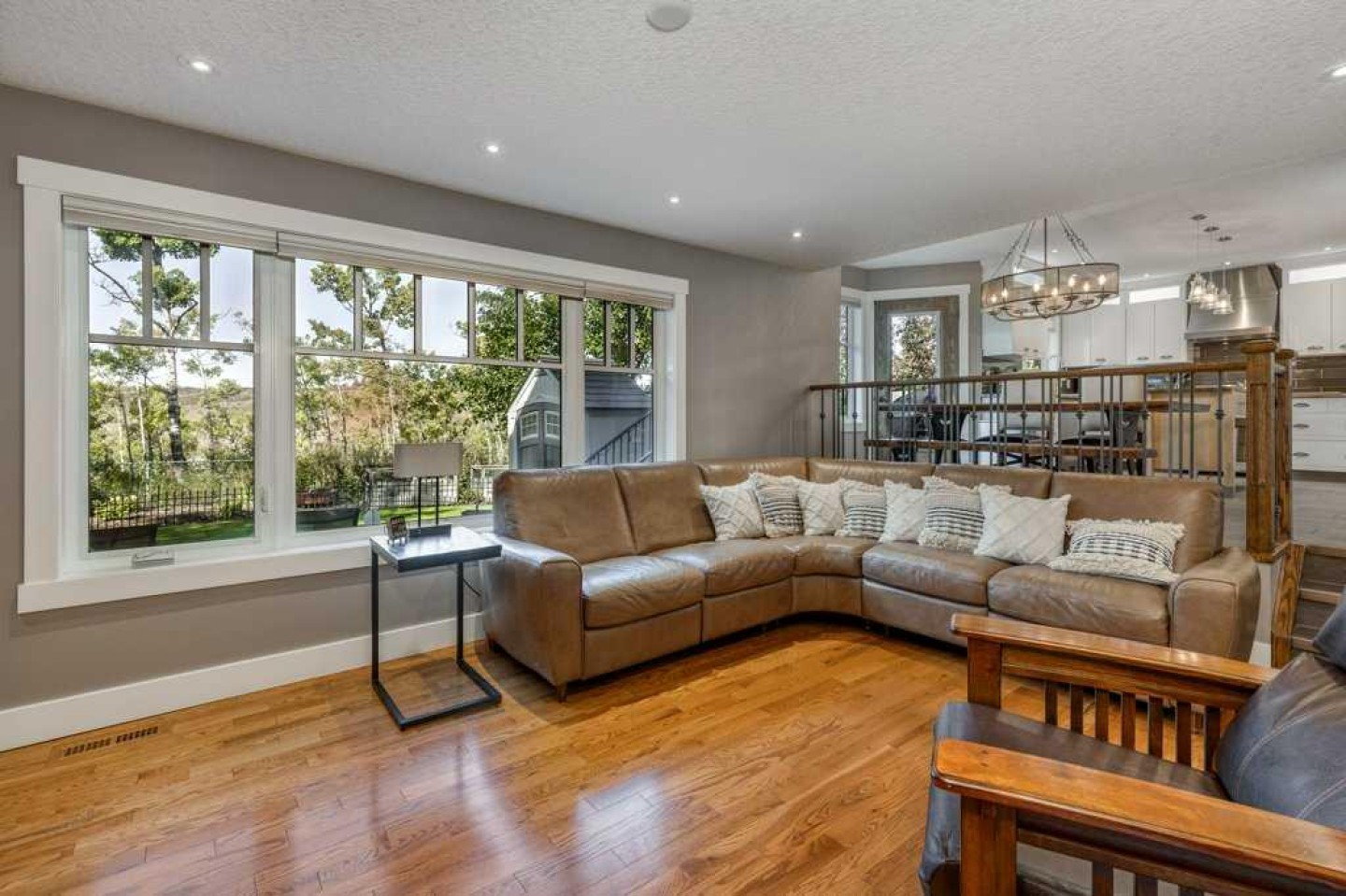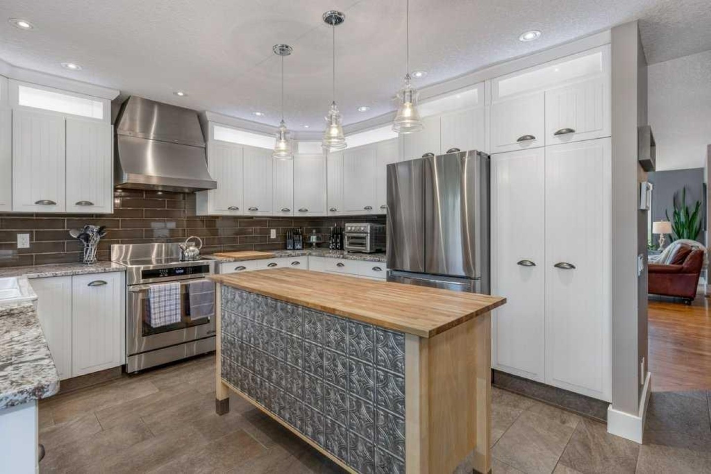 Discover a luxury lifestyle where quality, convenience and nature collide. This fully renovated family home is located directly across from the tri-schools and backs onto the historic Cochrane Ranche in the town's most sought-after community, Cochrane Heights. Exquisitely appointed, this home was completely transformed in 2014 and new shingles were just done in 2025. Its tasteful selections and high end finishes include a solid wood front door, oak hardwood and ceramic tile flooring throughout the main level. A vaulted ceiling spans the living room and formal dining area for a dramatic first impression. The kitchen boasts an upscale farmhouse esthetic with beaded panel shaker cabinets, a lit panel valence, granite perimeter counters, butcher block island with a vintage tin detail and a gorgeous apron front farm sink. There is a top of the line stainless appliance package including an induction stove and ample storage. A sunken family room is the perfect place to unwind in front of the wood burning fireplace (with gas assist) while taking in the beautiful views behind. Also on the main level is a cozy office with an elegant privacy window, while down the hall a practical powder room and laundry combo is appointed with tile wainscotting. Upstairs you will find three bedrooms, including the primary suite with its stunning mountain views, a walk-in closet and luxurious ensuite bathroom featuring a vintage inspired vanity, free standing shower, heated floors and incredible Victoria + Albert soaking tub. The main bathroom that serves the kids bedrooms includes granite counter top, subway tile around the bath/shower and heated tile floors. The basement is fully developed and includes fabulous built-ins and millwork including a pull down murphy bed. A generously sized 4th bedroom is ideal for guests who will love the exquisite bathroom with heated tile floors, a spacious steam shower with rain shower head and a bench seat. The outside of this home is equally as impressive with acrylic stucco and cedar accents, defining this home's presence and mountain inspired appeal. There is a fantastic exposed aggregate driveway with a poured concrete walkway that surrounds the house, providing both front and back patio areas to enjoy the birds singing and the rustling of the leaves in your yard. The heated garage has Swisstrax flooring and a man door to the side yard. This property is truly a gem offering an unparalleled level of privacy, access to recreation, schools and is walking distance to downtown. The extensive trail system behind the house connects all of Cochrane, through to the Big Hill Springs and a remarkable bird preserve area where nature lovers study this ecologically rich landscape. Don't miss your opportunity to own a move-in-ready home on one of Cochrane's most sought-after streets, thoughtfully designed for your family's enjoyment for years to come.