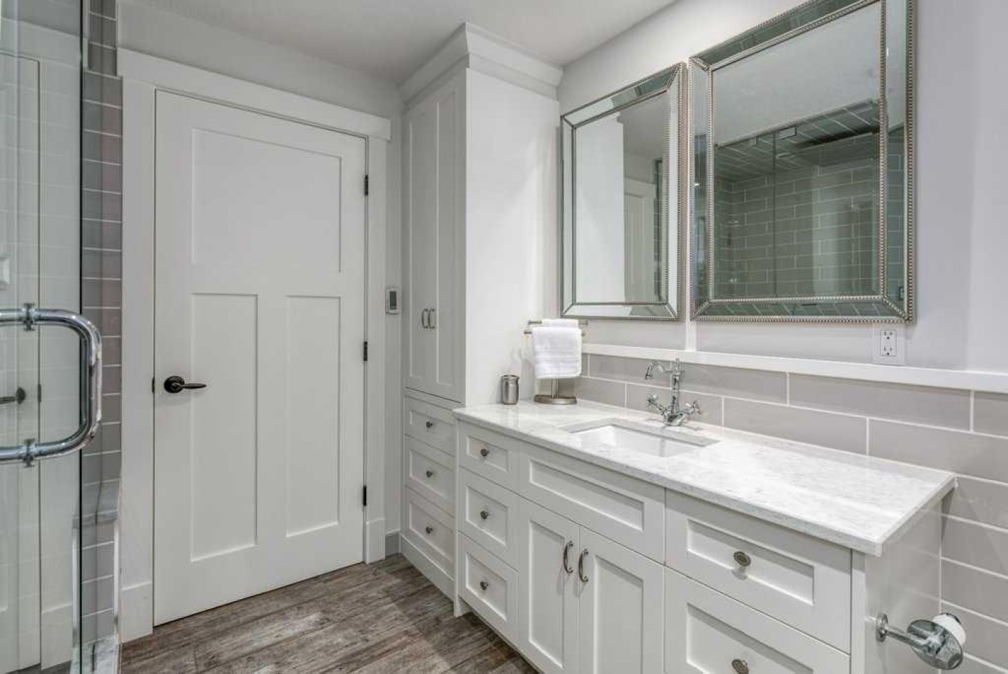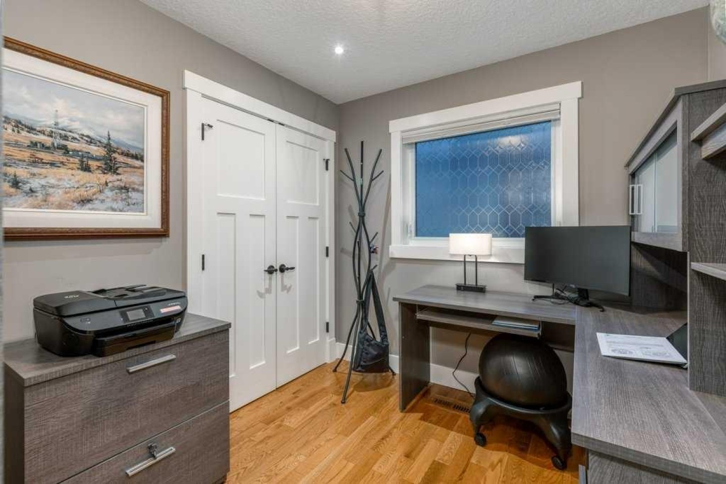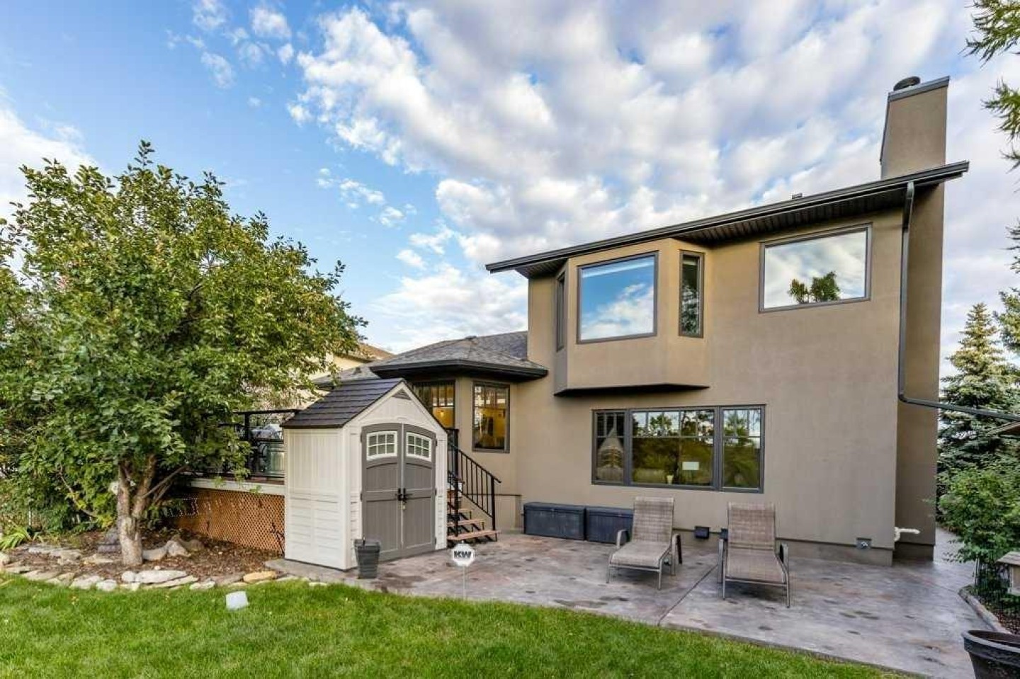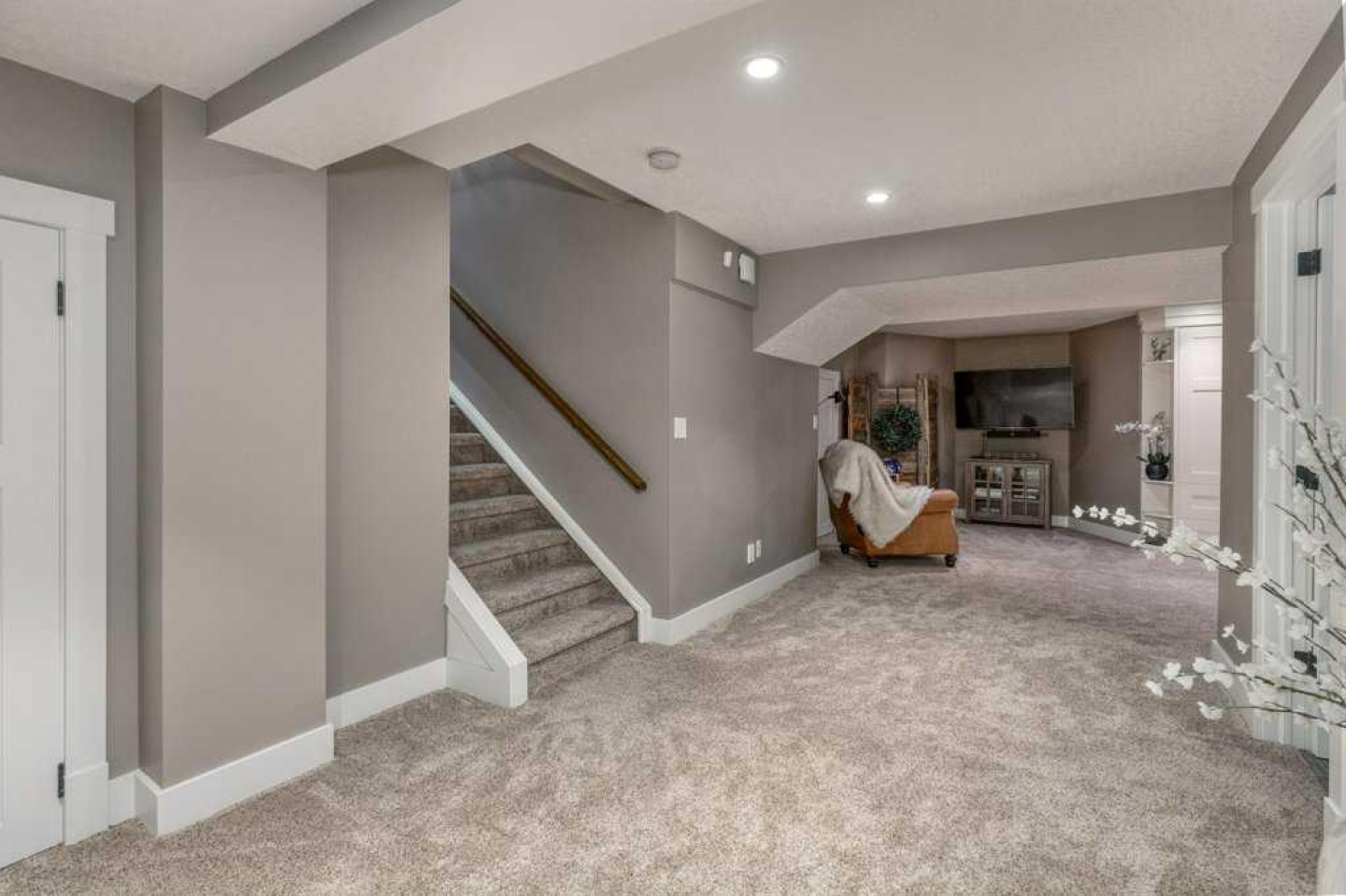 Discover a luxury lifestyle where quality, convenience and nature collide. This fully renovated family home is located directly across from the tri-schools and backs onto the historic Cochrane Ranche in the town's most sought-after community, Cochrane Heights. Exquisitely appointed, this home was completely transformed in 2014 and new shingles were just done in 2025. Its tasteful selections and high end finishes include a solid wood front door, oak hardwood and ceramic tile flooring throughout the main level. A vaulted ceiling spans the living room and formal dining area for a dramatic first impression. The kitchen boasts an upscale farmhouse esthetic with beaded panel shaker cabinets, a lit panel valence, granite perimeter counters, butcher block island with a vintage tin detail and a gorgeous apron front farm sink. There is a top of the line stainless appliance package including an induction stove and ample storage. A sunken family room is the perfect place to unwind in front of the wood burning fireplace (with gas assist) while taking in the beautiful views behind. Also on the main level is a cozy office with an elegant privacy window, while down the hall a practical powder room and laundry combo is appointed with tile wainscotting. Upstairs you will find three bedrooms, including the primary suite with its stunning mountain views, a walk-in closet and luxurious ensuite bathroom featuring a vintage inspired vanity, free standing shower, heated floors and incredible Victoria + Albert soaking tub. The main bathroom that serves the kids bedrooms includes granite counter top, subway tile around the bath/shower and heated tile floors. The basement is fully developed and includes fabulous built-ins and millwork including a pull down murphy bed. A generously sized 4th bedroom is ideal for guests who will love the exquisite bathroom with heated tile floors, a spacious steam shower with rain shower head and a bench seat. The outside of this home is equally as impressive with acrylic stucco and cedar accents, defining this home's presence and mountain inspired appeal. There is a fantastic exposed aggregate driveway with a poured concrete walkway that surrounds the house, providing both front and back patio areas to enjoy the birds singing and the rustling of the leaves in your yard. The heated garage has Swisstrax flooring and a man door to the side yard. This property is truly a gem offering an unparalleled level of privacy, access to recreation, schools and is walking distance to downtown. The extensive trail system behind the house connects all of Cochrane, through to the Big Hill Springs and a remarkable bird preserve area where nature lovers study this ecologically rich landscape. Don't miss your opportunity to own a move-in-ready home on one of Cochrane's most sought-after streets, thoughtfully designed for your family's enjoyment for years to come.