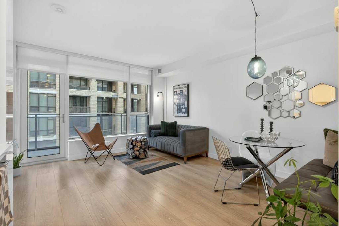 Location, location, location! Welcome to Waterfront, a premier riverfront community, in an exquisite complex perfectly positioned along the Bow River. Views, nature, accessibility, convenience, this location has it all. One of the best downtown locations there is! This well-designed residence offers just under 500 sq ft of stylish living space, featuring one bedroom and one full bathroom in a bright, contemporary layout. The moment you step inside, you’ll appreciate the natural light pouring through the west-facing windows, creating a warm and inviting atmosphere throughout the home. Durable laminate flooring flows seamlessly through the open-concept living space. The modern kitchen is finished with a clean blend of white and wood cabinetry, quartz countertops, and stainless steel appliances, offering both function and timeless appeal. The living room extends out to a private balcony—an ideal spot to relax and enjoy sunny summer evenings.