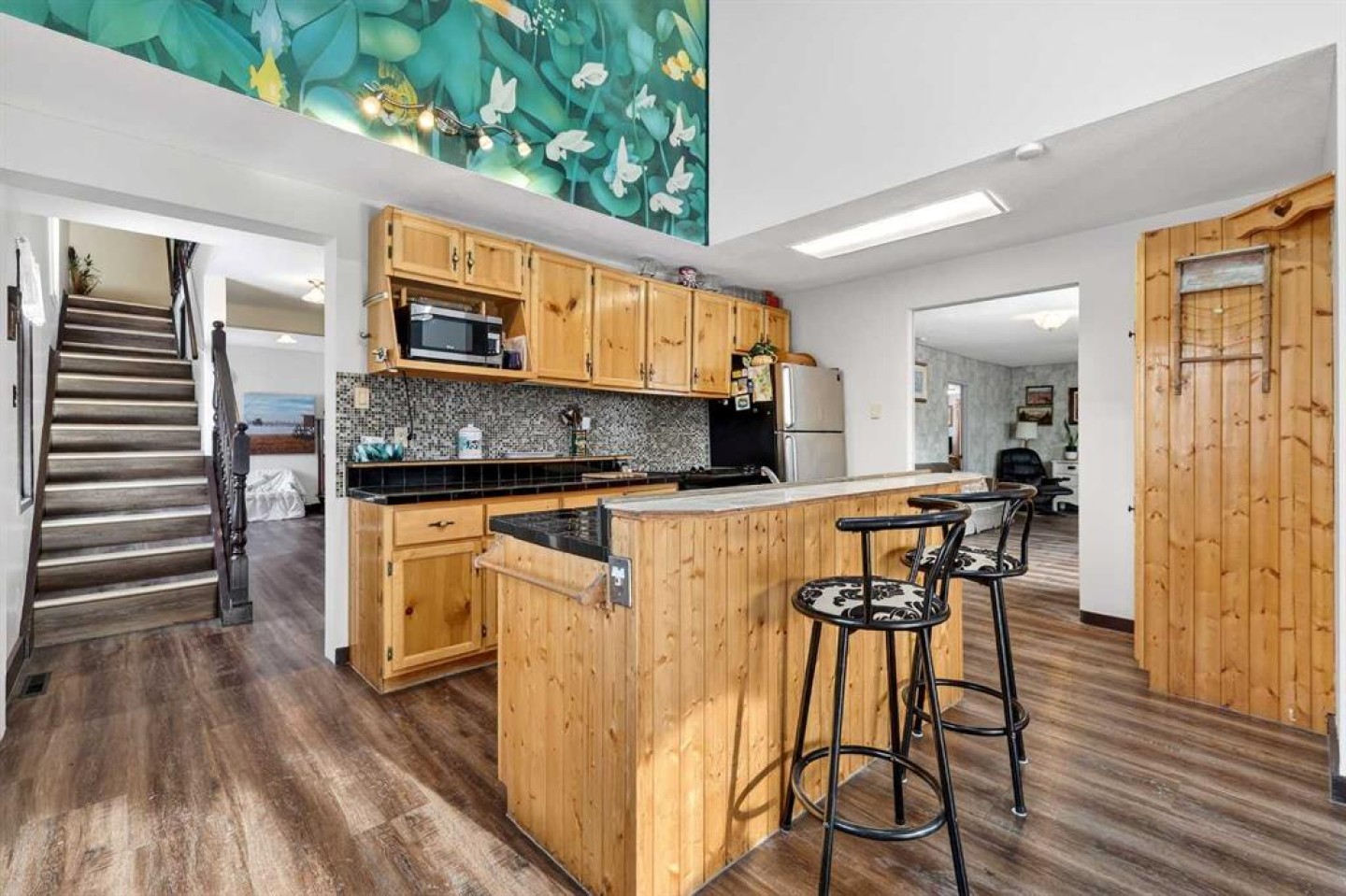 Downstairs, a LARGE 4th potential bedroom has a WALK IN CLOSET, a REC ROOM for MOVIE Nights w/the family, + a large utility room w/2 sets of washers + dryers. Now let’s talk about the OUTDOORS because THIS is where the VALUE SHINES: The Detached QUAD GARAGE/SHOP comes w/a Car Hoist, 4 Overhead doors + is roughed-in for In-floor Heating. FUEL PUMP w/fuel tanks, Chicken Coop, Goat Shed, Former Greenhouse + SEVERAL STORAGE BUILDINGS throughout. Endless OPTIONS for MECHANICS, HOBBY FARMING, EQUIPMENT STORAGE, or HOME-BASED BUSINESS USE. EVERYTHING you need is ALREADY HERE + READY TO GO!! With a surface lease GENERATING $4,450 annually, the property EARNS income while you make the most of it.