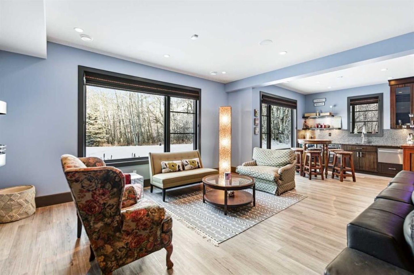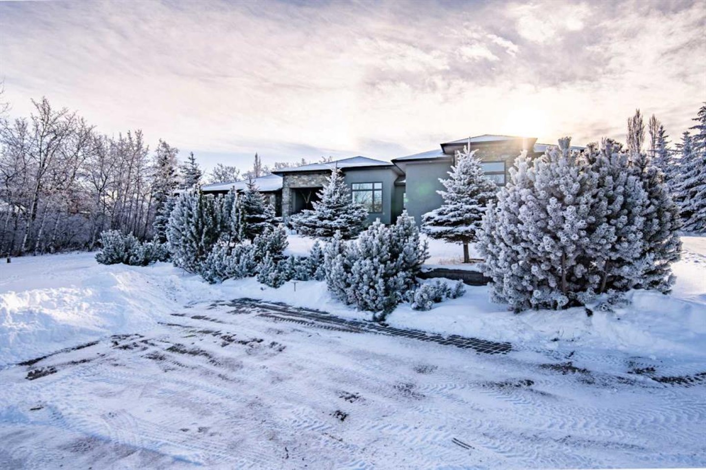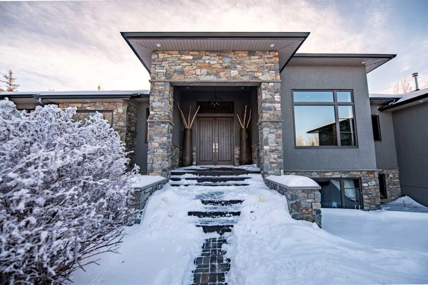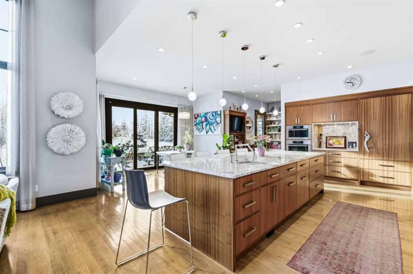 A sophisticated contemporary estate nestled on 1.93 acres, just minutes from the City. Built by Bowood, this exceptional bungalow offers approximately 6,000 sq. ft. of refined luxury living, thoughtfully designed with extraordinary attention to detail throughout. A grand entrance welcomes you into the stunning great room, highlighted by a floor-to-ceiling gas fireplace framed by expansive corner windows, creating a bright and inviting space that sets the tone for this four-bedroom, five-bathroom residence. The open-concept layout seamlessly connects to a chef’s kitchen designed for the most discerning culinary enthusiast. Anchored by an impressive 11-foot granite island with prep sink and built-in dishwasher, the kitchen also features custom cherry wood cabinetry, a built-in refrigerator with designer hardware, induction cooktop, wall oven, steam oven, and a striking glass tile feature wall complemented by a sleek stainless-steel hood fan. A spacious butler’s pantry with a second dishwasher provides abundant storage and functionality. Off the great room, a walk-through coffee and tea bar leads into the elegant dining room, complete with floor-to-ceiling built-in cabinetry and a large picture window that floods the space with natural light. This bright and airy ambiance extends into the expansive three-season room featuring vaulted wood-clad ceilings, west-facing windows, a wood-burning fireplace, and a built-in BBQ with hood fan—perfect for entertaining while overlooking the fully landscaped grounds. The luxurious primary suite is conveniently located on the main level and offers a spa-inspired ensuite with a deep soaker tub, fully tiled shower, double vanity, and a generous walk-in dressing room with built-in features. Completing the main floor is a private office or additional bedroom, an oversized mudroom and laundry area, and a rare three-car attached garage with additional space for motorcycles or yard equipment. The lower level is designed for entertainment and relaxation, featuring a large TV and games room, wet bar, wine cellar, and dedicated home gym. This level also includes a bedroom with private ensuite, two additional spacious bedrooms, and a full bathroom. Additional highlights include a multi-zone Sonos sound system, whole-home water filtration, main-floor air conditioning, multi-zone in-floor heating, outdoor water feature, pizza oven, and RV parking. This architectural masterpiece is designed to impress, offering an exceptional lifestyle that will captivate guests and inspire everyday living.