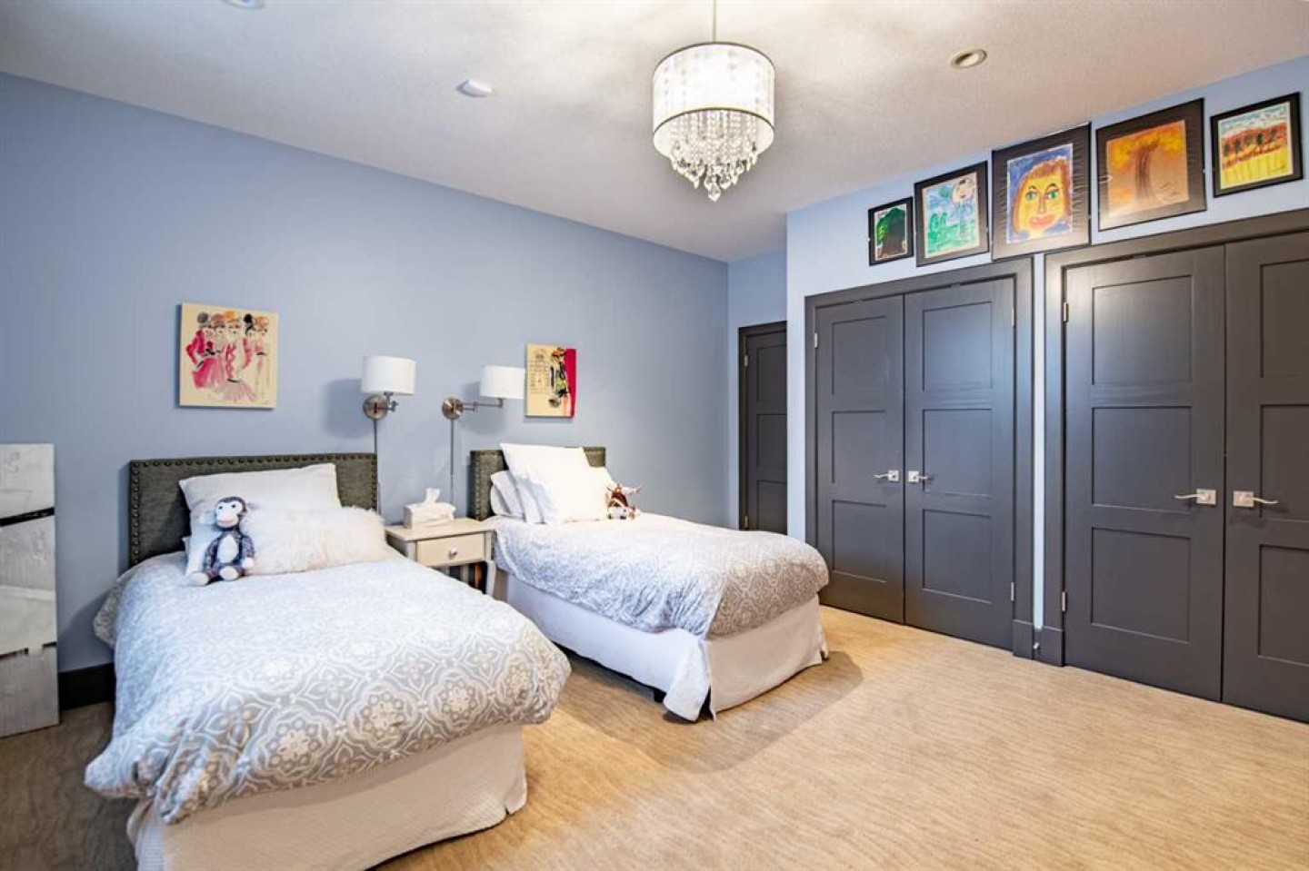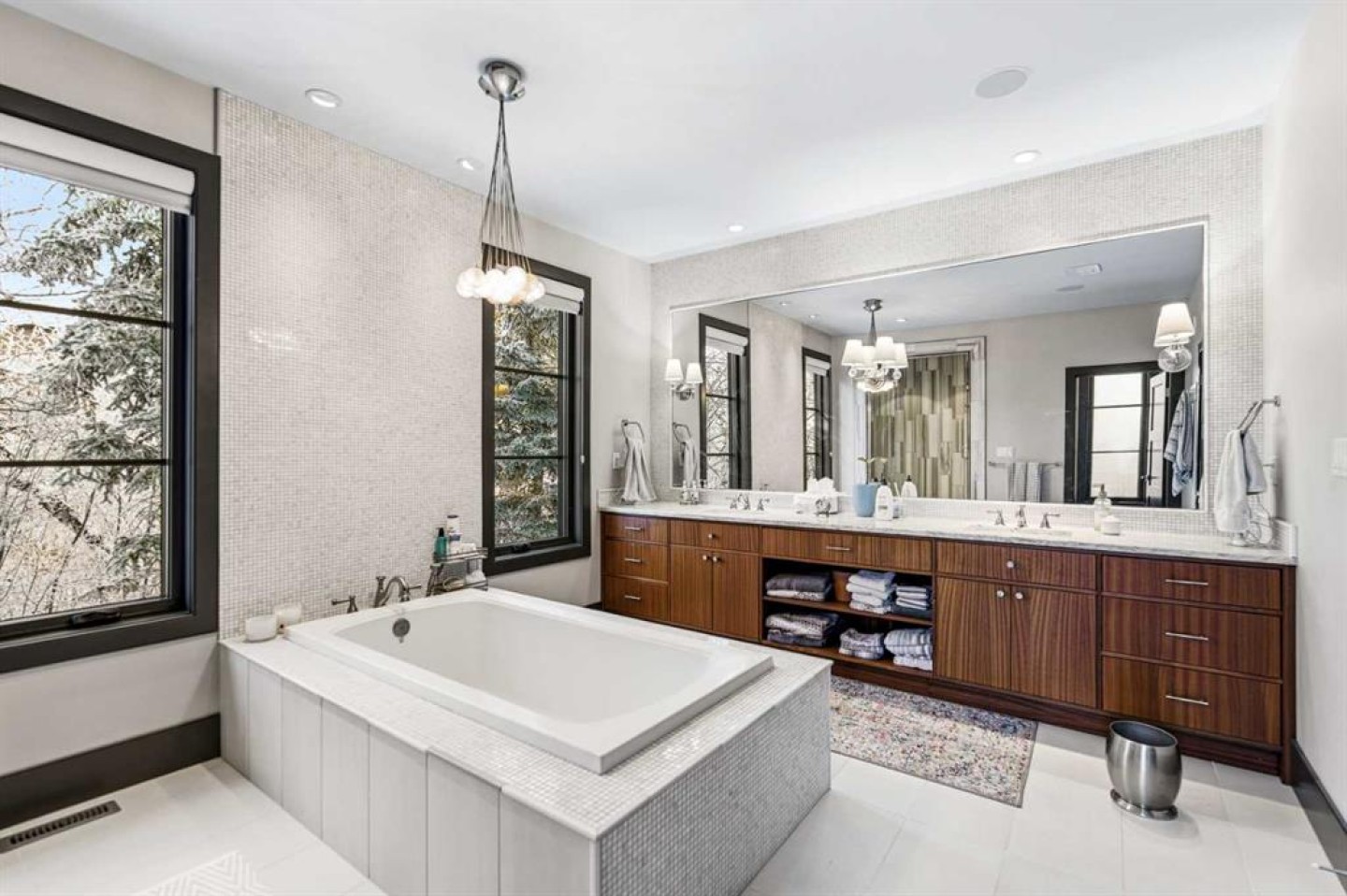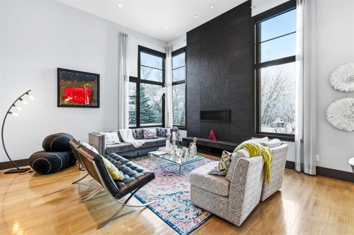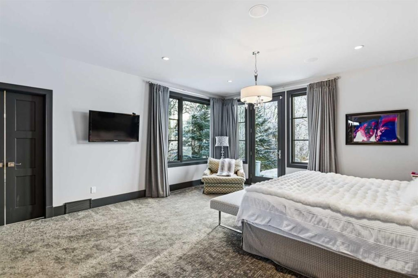 A sophisticated contemporary estate nestled on 1.93 acres, just minutes from the City. Built by Bowood, this exceptional bungalow offers approximately 6,000 sq. ft. of refined luxury living, thoughtfully designed with extraordinary attention to detail throughout. A grand entrance welcomes you into the stunning great room, highlighted by a floor-to-ceiling gas fireplace framed by expansive corner windows, creating a bright and inviting space that sets the tone for this four-bedroom, five-bathroom residence. The open-concept layout seamlessly connects to a chef’s kitchen designed for the most discerning culinary enthusiast. Anchored by an impressive 11-foot granite island with prep sink and built-in dishwasher, the kitchen also features custom cherry wood cabinetry, a built-in refrigerator with designer hardware, induction cooktop, wall oven, steam oven, and a striking glass tile feature wall complemented by a sleek stainless-steel hood fan. A spacious butler’s pantry with a second dishwasher provides abundant storage and functionality. Off the great room, a walk-through coffee and tea bar leads into the elegant dining room, complete with floor-to-ceiling built-in cabinetry and a large picture window that floods the space with natural light. This bright and airy ambiance extends into the expansive three-season room featuring vaulted wood-clad ceilings, west-facing windows, a wood-burning fireplace, and a built-in BBQ with hood fan—perfect for entertaining while overlooking the fully landscaped grounds. The luxurious primary suite is conveniently located on the main level and offers a spa-inspired ensuite with a deep soaker tub, fully tiled shower, double vanity, and a generous walk-in dressing room with built-in features. Completing the main floor is a private office or additional bedroom, an oversized mudroom and laundry area, and a rare three-car attached garage with additional space for motorcycles or yard equipment. The lower level is designed for entertainment and relaxation, featuring a large TV and games room, wet bar, wine cellar, and dedicated home gym. This level also includes a bedroom with private ensuite, two additional spacious bedrooms, and a full bathroom. Additional highlights include a multi-zone Sonos sound system, whole-home water filtration, main-floor air conditioning, multi-zone in-floor heating, outdoor water feature, pizza oven, and RV parking. This architectural masterpiece is designed to impress, offering an exceptional lifestyle that will captivate guests and inspire everyday living.