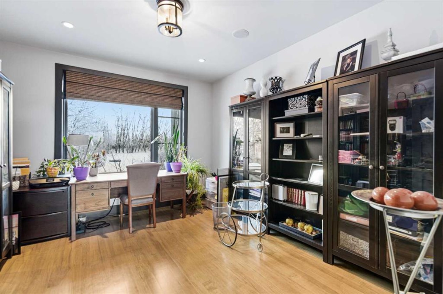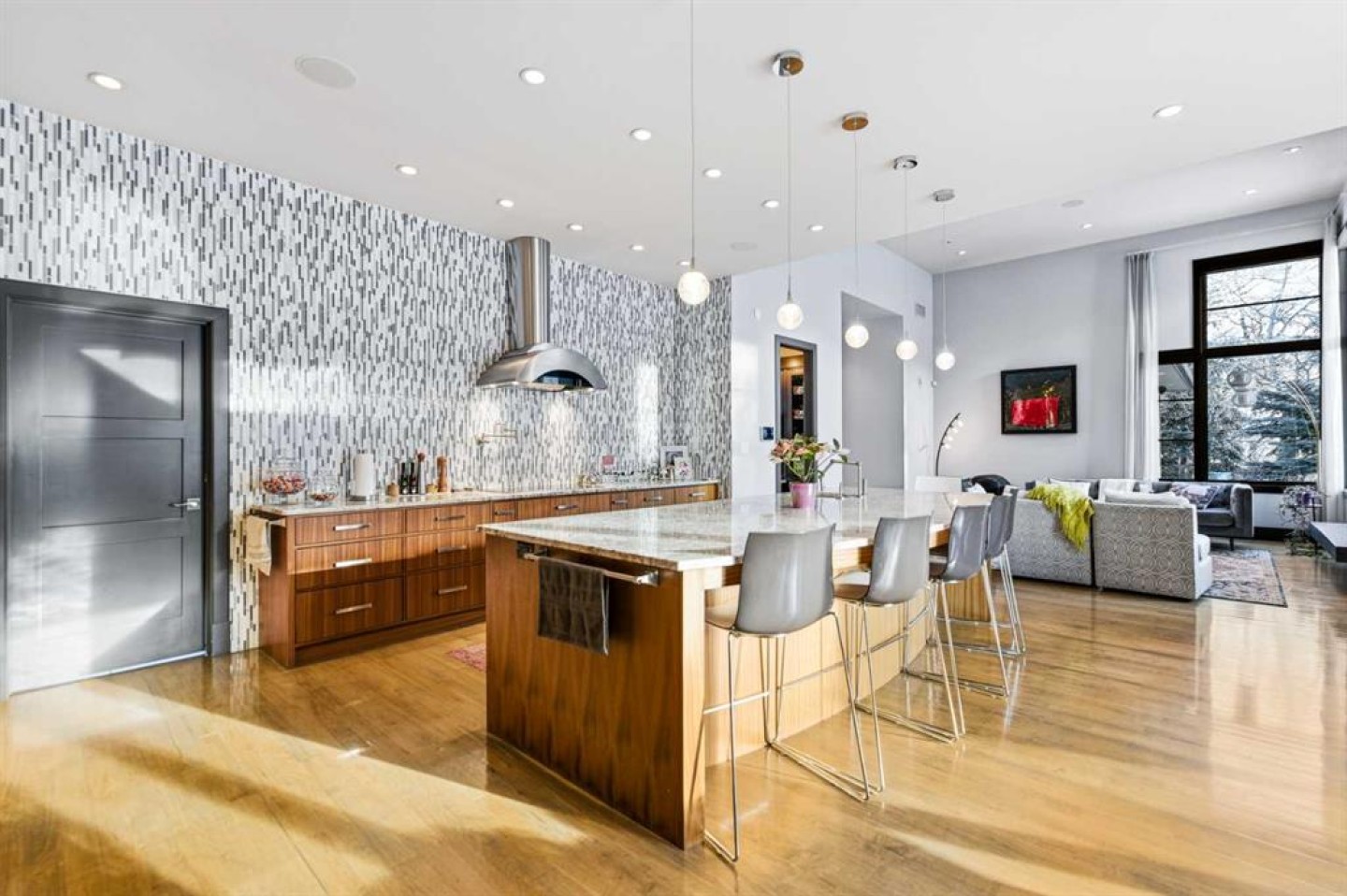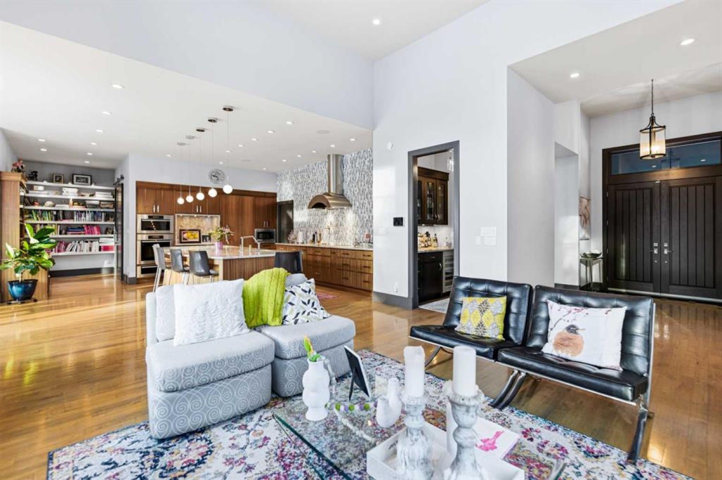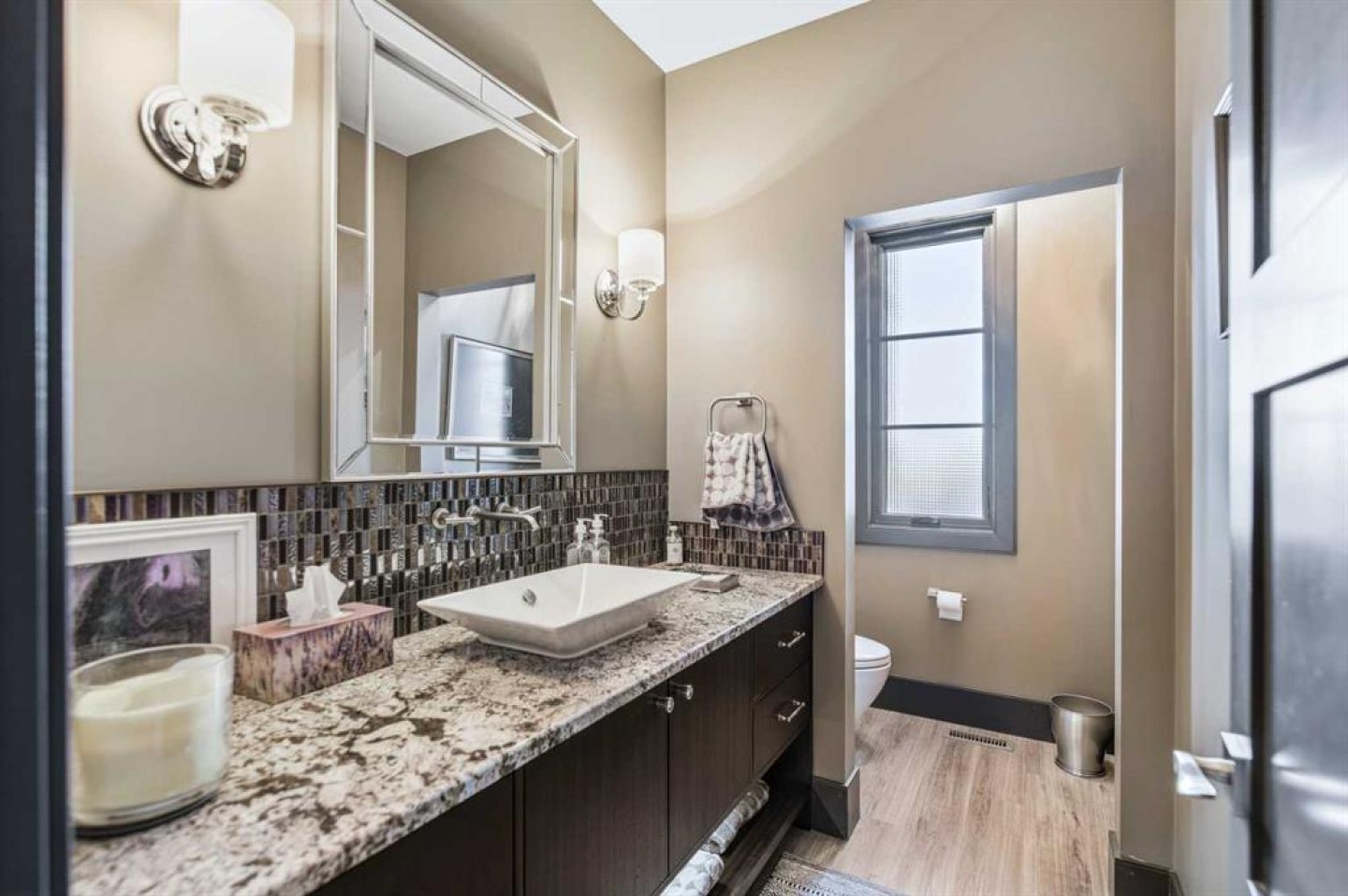 A sophisticated contemporary estate nestled on 1.93 acres, just minutes from the City. Built by Bowood, this exceptional bungalow offers approximately 6,000 sq. ft. of refined luxury living, thoughtfully designed with extraordinary attention to detail throughout. A grand entrance welcomes you into the stunning great room, highlighted by a floor-to-ceiling gas fireplace framed by expansive corner windows, creating a bright and inviting space that sets the tone for this four-bedroom, five-bathroom residence. The open-concept layout seamlessly connects to a chef’s kitchen designed for the most discerning culinary enthusiast. Anchored by an impressive 11-foot granite island with prep sink and built-in dishwasher, the kitchen also features custom cherry wood cabinetry, a built-in refrigerator with designer hardware, induction cooktop, wall oven, steam oven, and a striking glass tile feature wall complemented by a sleek stainless-steel hood fan. A spacious butler’s pantry with a second dishwasher provides abundant storage and functionality. Off the great room, a walk-through coffee and tea bar leads into the elegant dining room, complete with floor-to-ceiling built-in cabinetry and a large picture window that floods the space with natural light. This bright and airy ambiance extends into the expansive three-season room featuring vaulted wood-clad ceilings, west-facing windows, a wood-burning fireplace, and a built-in BBQ with hood fan—perfect for entertaining while overlooking the fully landscaped grounds. The luxurious primary suite is conveniently located on the main level and offers a spa-inspired ensuite with a deep soaker tub, fully tiled shower, double vanity, and a generous walk-in dressing room with built-in features. Completing the main floor is a private office or additional bedroom, an oversized mudroom and laundry area, and a rare three-car attached garage with additional space for motorcycles or yard equipment. The lower level is designed for entertainment and relaxation, featuring a large TV and games room, wet bar, wine cellar, and dedicated home gym. This level also includes a bedroom with private ensuite, two additional spacious bedrooms, and a full bathroom. Additional highlights include a multi-zone Sonos sound system, whole-home water filtration, main-floor air conditioning, multi-zone in-floor heating, outdoor water feature, pizza oven, and RV parking. This architectural masterpiece is designed to impress, offering an exceptional lifestyle that will captivate guests and inspire everyday living.