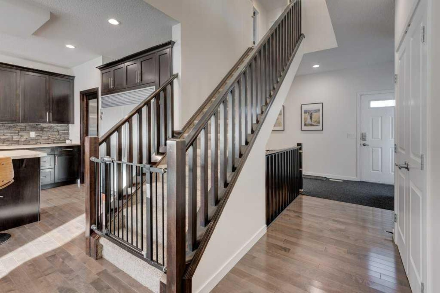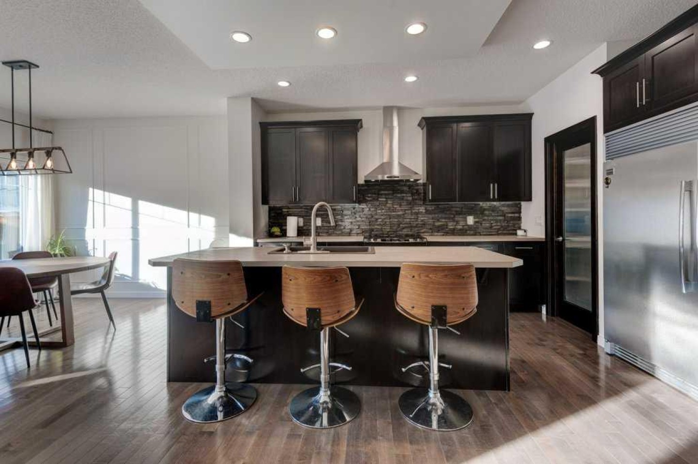 Welcome to this stunning 2,140 sq. ft. detached two-storey home located on a quiet street in the desirable community of Cimarron Vista in Okotoks. Boasting exceptional curb appeal, the exterior features elegant stone accents paired with contemporary colours and design details that immediately impress.
