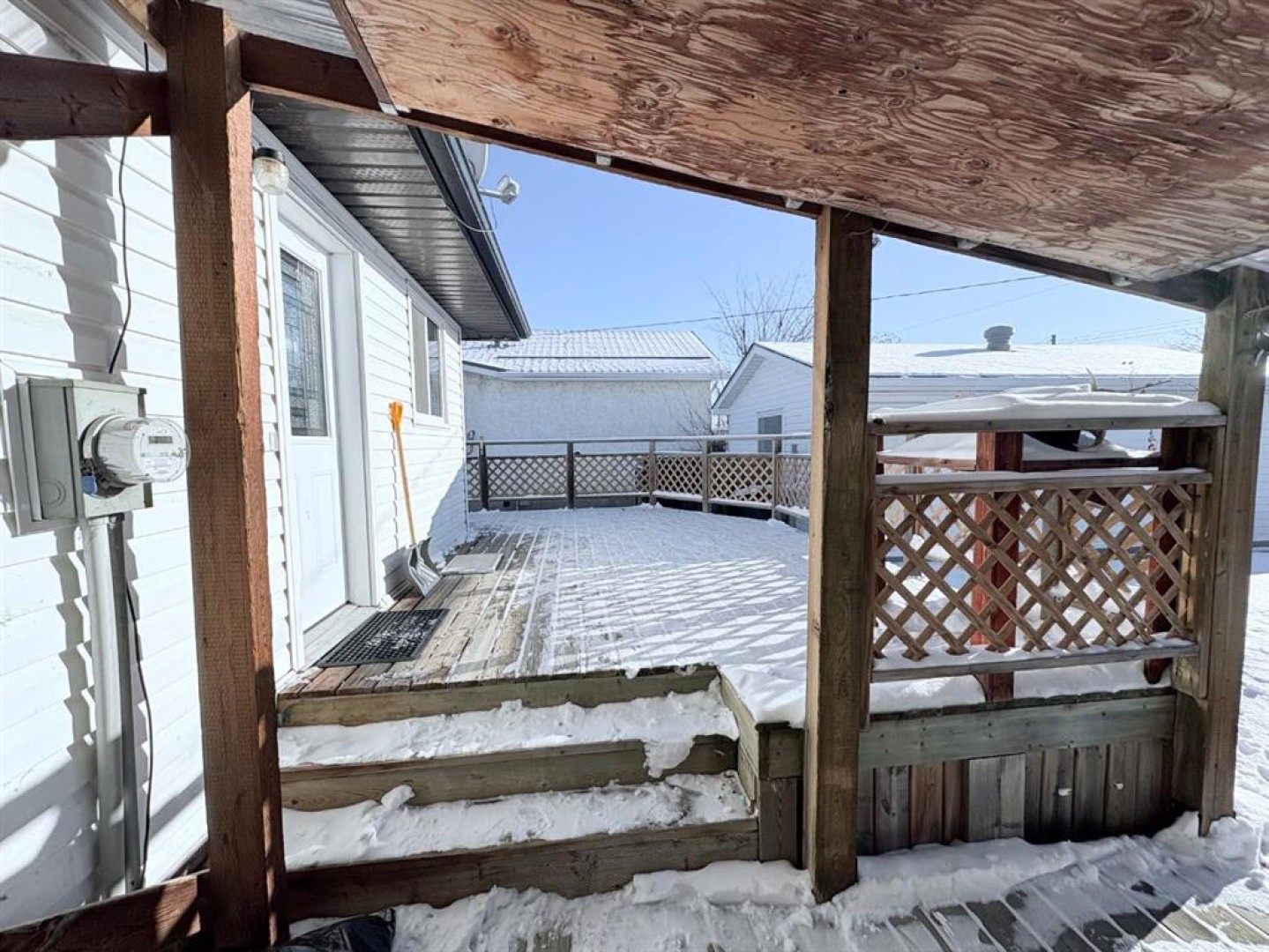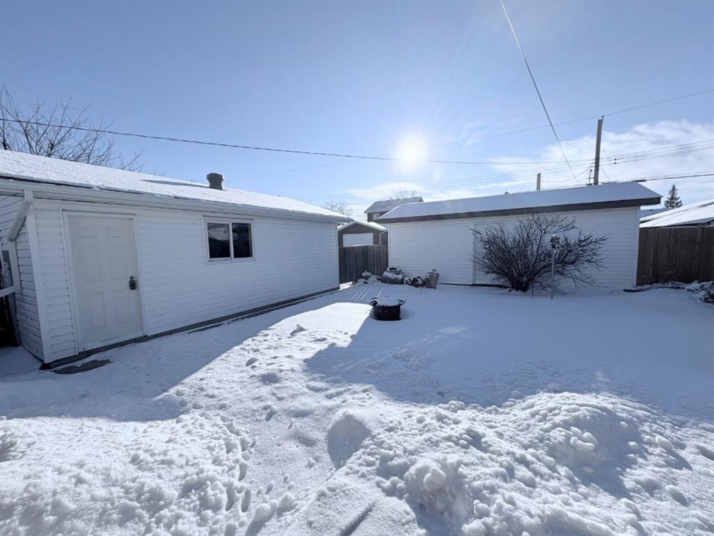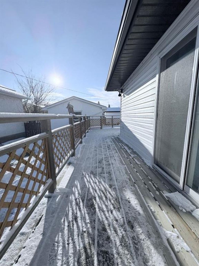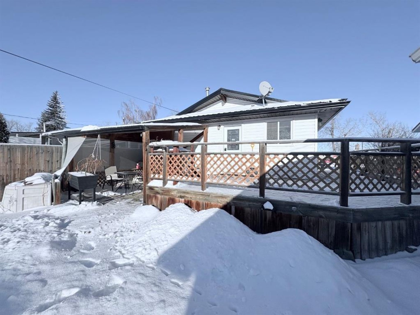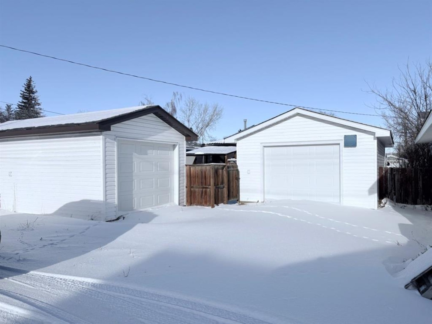 Outside, the fully fenced yard offers a wraparound deck with new railing, covered patio, low-maintenance rock landscaping in the front, and a rear lawn with flower beds. Parking and storage are exceptional with a single detached garage featuring an insulated, heated interior and automatic door opener, plus an additional single garage space with a manual door, ideal for storage.