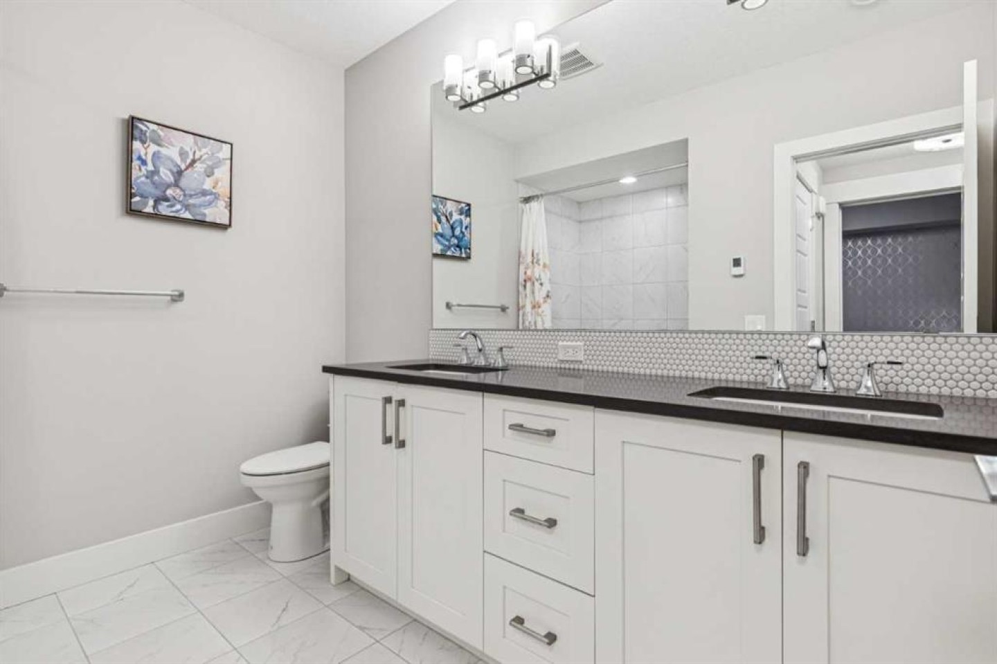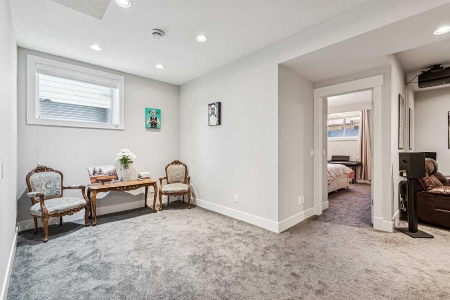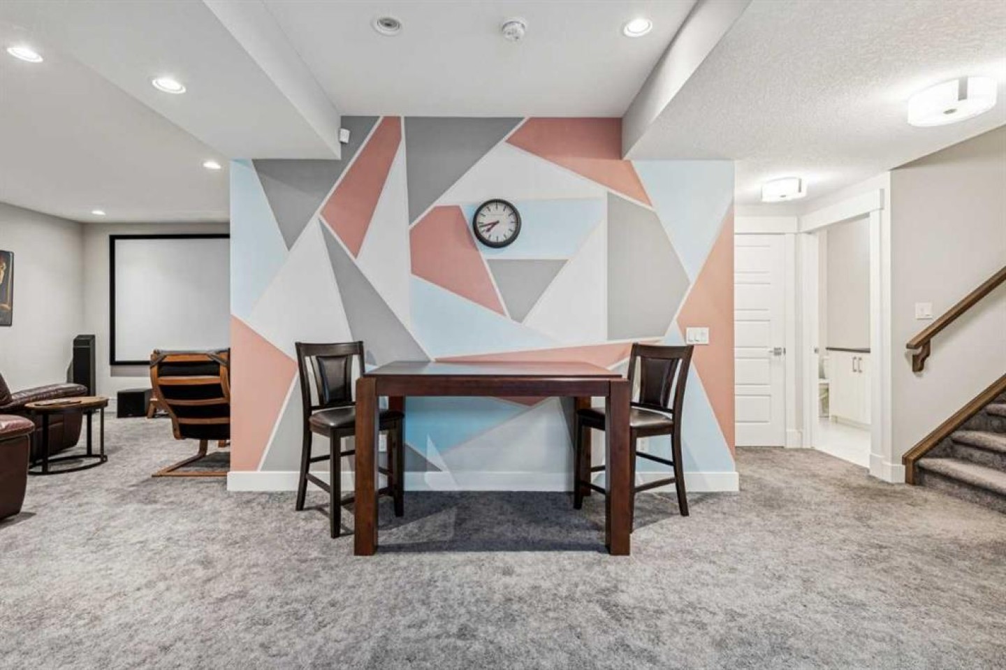 The finished basement offers a recreation/media room, two bedrooms, a full bathroom with heated floors, and a second laundry area.