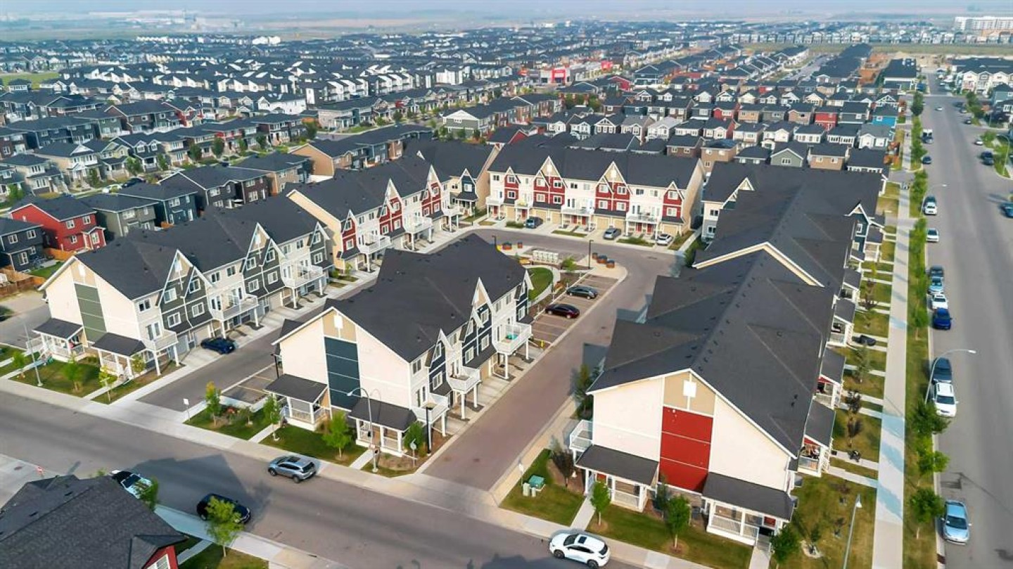SELLER IS WILLING TO PUT UP TO $2,000 towards the buyer's LEGAL FEES (that's a direct SAVINGS)! Welcome to 104, 32 Red Embers Parade NE — a stylish and well-maintained three-storey townhome in the vibrant community of Redstone. With nearly 1,279 sq ft (RMS) of above-grade living space, this home offers a bright and functional layout perfect for modern living. The entry level provides a spacious foyer, storage/utility room, and access to the single attached garage. On the main living floor, natural light fills the open-concept kitchen, dining, and living areas. The kitchen showcases stainless steel appliances, full-height cabinetry, a pantry, and ample counter space. The living room flows seamlessly to a private balcony — ideal for morning coffee or evening BBQs. A convenient 2-pc powder room completes this level. Upstairs, find two bedrooms, each with its own full bathroom. The primary suite features a walk-in closet and 4-pc ensuite, while the second bedroom is served by its own 4-pc bath. Upper-floor laundry adds everyday convenience. Additional features include washer & dryer, garage door opener with remote, and low condo fees that cover essentials such as reserve fund contributions, insurance, exterior snow removal and landscaping including tree pruning and grass cutting. The Redstone community is designed for connection and convenience, offering residents parks, playgrounds, and pathways, with quick access to Stoney Trail, Deerfoot Trail, and Metis Trail. The location places you just minutes from Calgary International Airport, CrossIron Mills, Costco, and a wide variety of shops and restaurants. Whether you are a first-time buyer, investor, or seeking a low-maintenance lifestyle, this property checks all the boxes. Book your private showing today and discover the value this Redstone townhome has to offer!