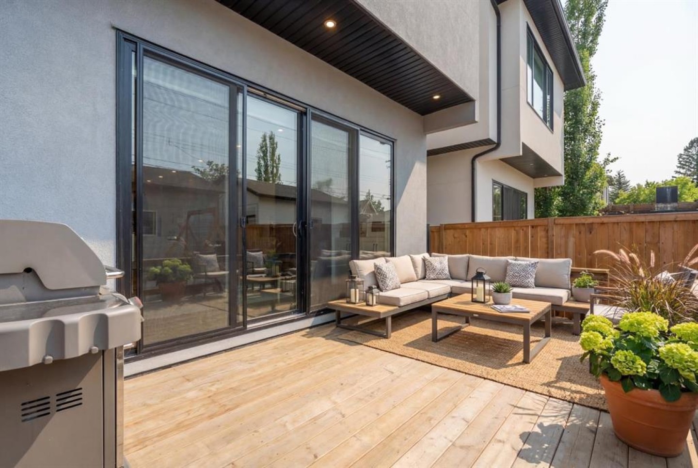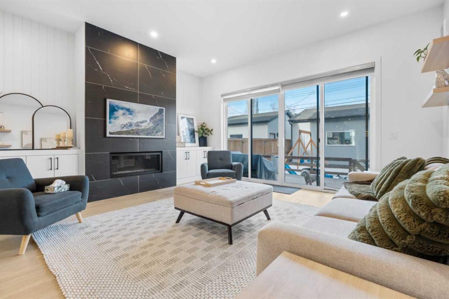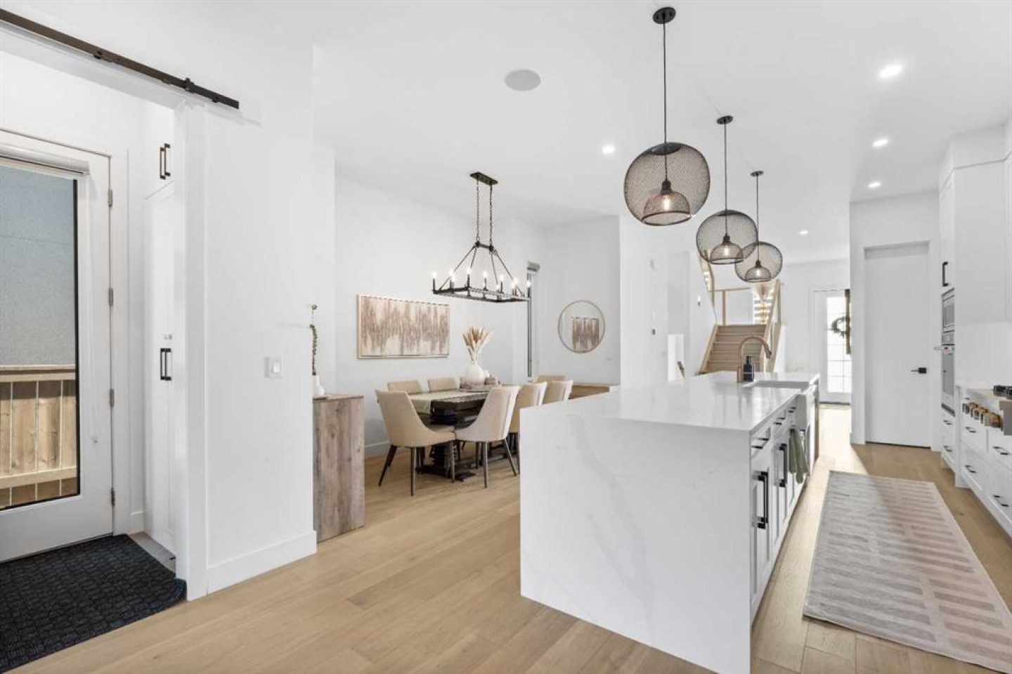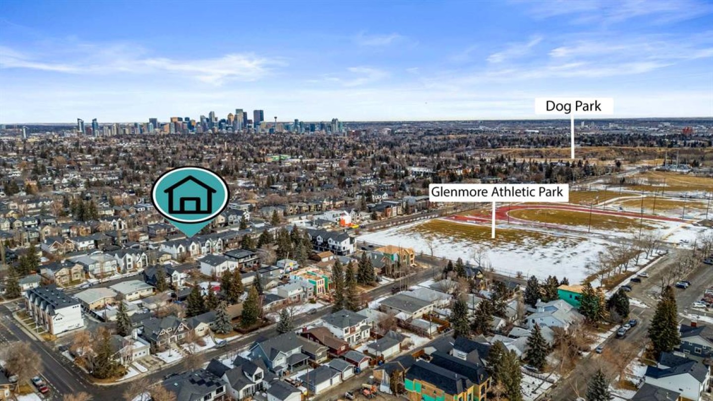 Welcome to modern farmhouse luxury living in the highly sought-after community of Altadore! This open-concept home showcases exceptional design and craftsmanship throughout, featuring 10’ ceilings, wide-plank flooring, and a layout ideal for both everyday living and entertaining. The heart of the home is a beautifully appointed chef’s kitchen with high-end stainless steel appliances, expansive quartz countertops, a large island perfect for family meals and hosting, and ample pantry storage, flowing seamlessly into the dining area and a stylish living room highlighted by a modern gas fireplace and feature wall. A spacious mudroom with built-in storage adds everyday functionality, while the striking front entry staircase emphasizes the impressive width of the home and creates a welcoming first impression. Upstairs offers 3 generously sized bedrooms, including a showpiece primary retreat with his-and-hers walk-in closets and a spa-like ensuite featuring a freestanding tub, dual vanities, glass shower, and private water closet, while the additional bedrooms each include spacious closet space and a full bathroom to share, complemented by a thoughtfully designed upper-level laundry room. The fully developed lower level features a large media and recreation room and a dedicated basement office, offering excellent flexibility. Designed for effortless indoor–outdoor living, oversized sliding doors lead to a large backyard deck with added railing, complemented by low-maintenance turf, creating the perfect space for entertaining and relaxing. Recent upgrades include a central air conditioning unit, a garage-installed EV charger, and a water conditioning system, adding comfort and efficiency throughout the home. Finished with premium materials, custom cabinetry, floor-to-ceiling windows, quality appliances and fixtures, and truly impressive attention to detail, this move-in-ready Altadore home offers an unbeatable lifestyle just steps from shopping, dining, parks, Marda Loop, the dog park, and minutes to downtown.