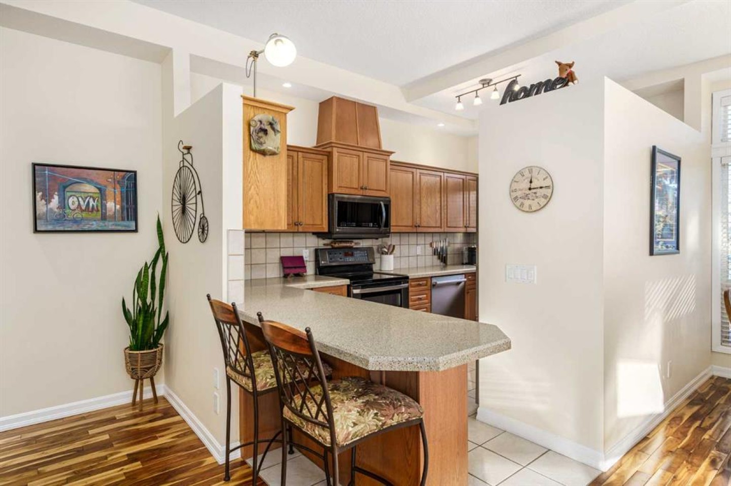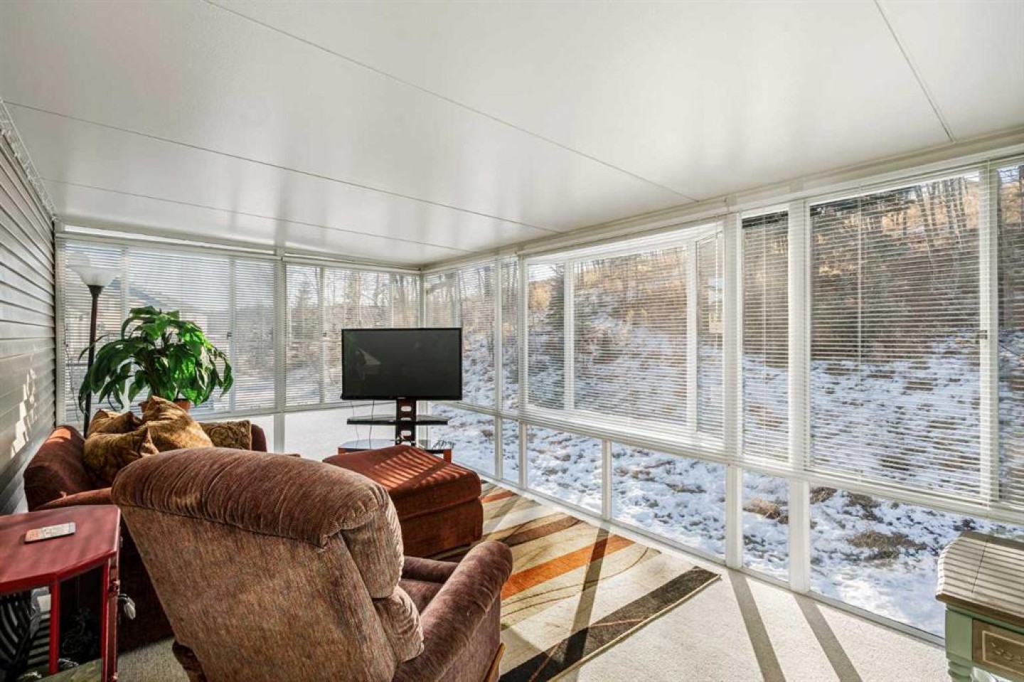 QUIET LOCATION, OVERSIZED DOUBLE ATTACHED GARAGE, COVERED SCREENED DECK! Welcome to exceptional living in Crawford Ranch, one of Cochrane’s quietest and most scenic communities. Downsize in style in one of the town’s most exclusive condo offerings. This rare home gives you everything you love about a single-family property including an oversized heated double car garage (29X25) and an impressive (10x15) three-season sunroom overlooking mature trees and wild life.