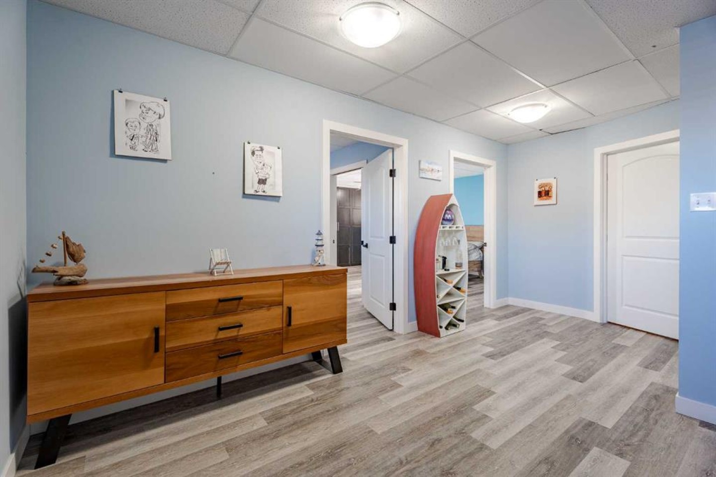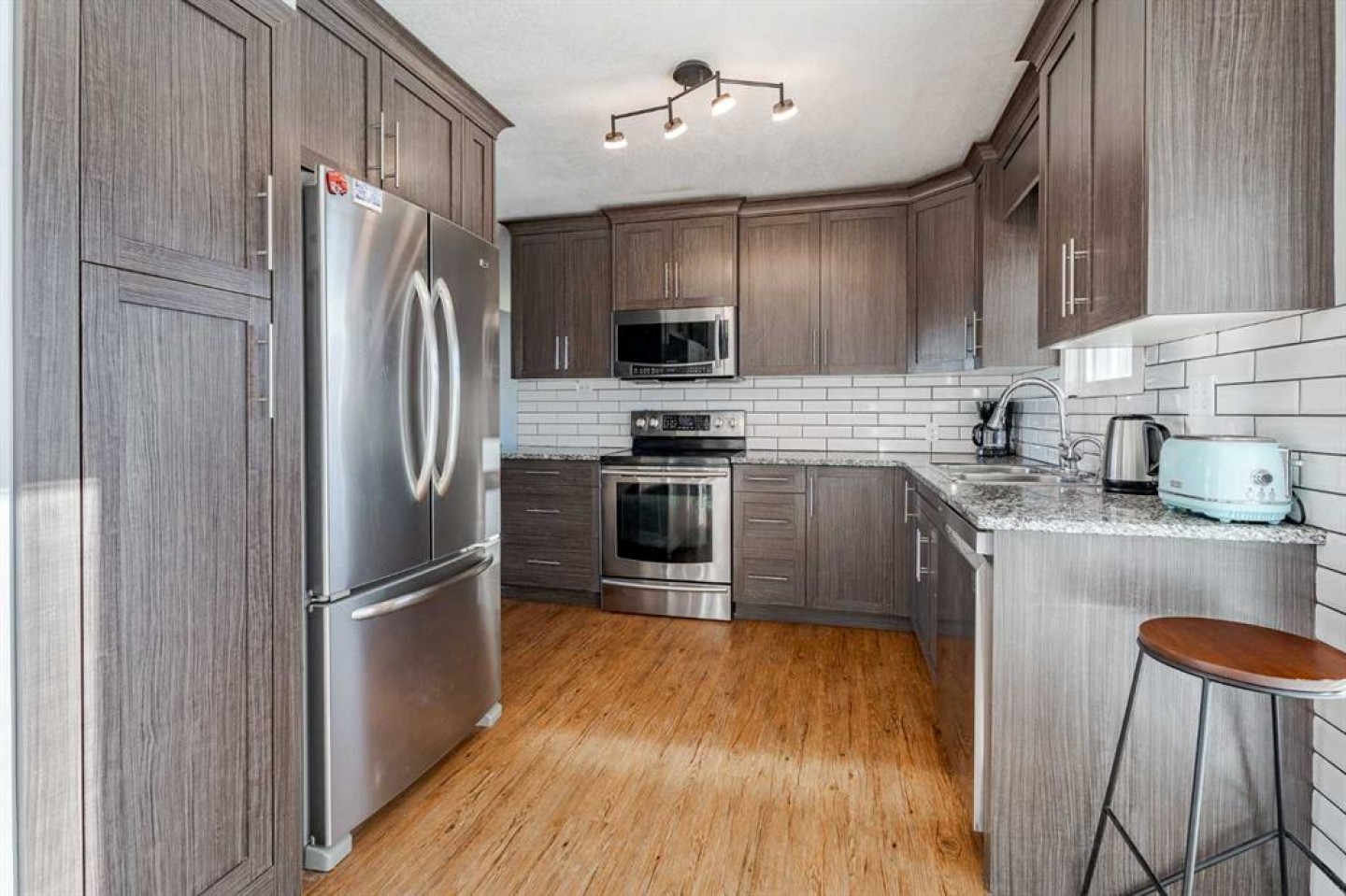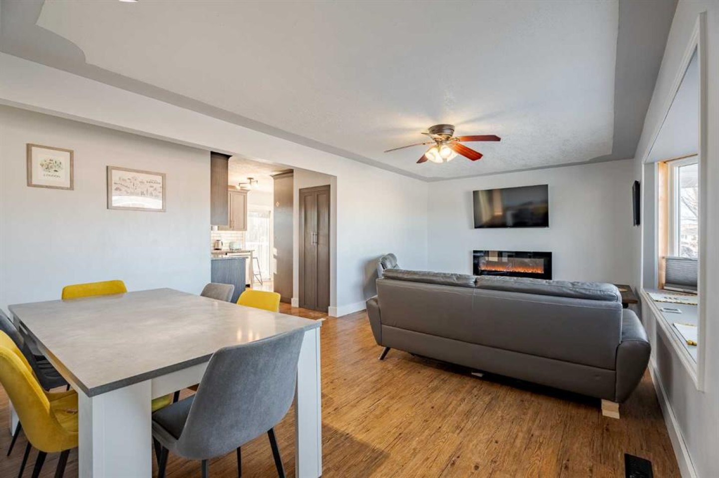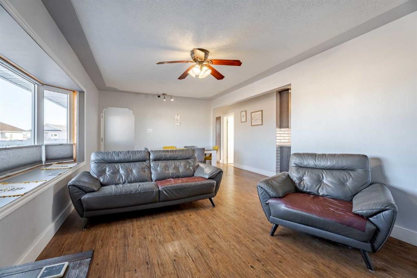 Welcome to this beautifully maintained detached bungalow located on a quiet, picturesque street in the charming town of Stavely, Alberta. Offering over 2,000 square feet of fully developed living space, this home combines thoughtful updates, durable construction, and small-town tranquility. The main level features over 1,000 square feet above grade with three well-sized bedrooms and a recently renovated 4-piece bathroom. Modern vinyl flooring, upgraded appliances, and elegant granite countertops add a fresh, contemporary feel throughout the home. The fully developed basement provides an additional 1,000+ square feet of living space, perfect for extended family or guests. It includes a large recreational area, two bedrooms, and a spacious 5-piece ensuite complete with luxurious in-floor heating, creating a warm and comfortable retreat year-round. Built for long-term reliability, the home is equipped with a durable ICF block foundation, a metal roof, and a newly installed sump pump—ideal for buyers seeking quality construction and peace of mind. Step outside to the expansive backyard, where you’ll find an oversized composite deck designed to withstand the elements with minimal maintenance. The generous yard offers ample space to relax, garden, or entertain, and is complemented by a massive shed measuring 21 feet 9 inches by 16 feet—perfect for storage, hobbies, or keeping everything neatly organized. Set on a quiet street surrounded by well-kept homes and manicured front yards, this property reflects pride of ownership throughout the neighborhood. Living in Stavely means enjoying a family-friendly community known for its peaceful atmosphere, large lot sizes, and welcoming small-town charm—all while being within easy reach of nearby amenities and surrounding communities. This is a fantastic opportunity to own a solid, thoughtfully updated home in a serene and close-knit Alberta town.